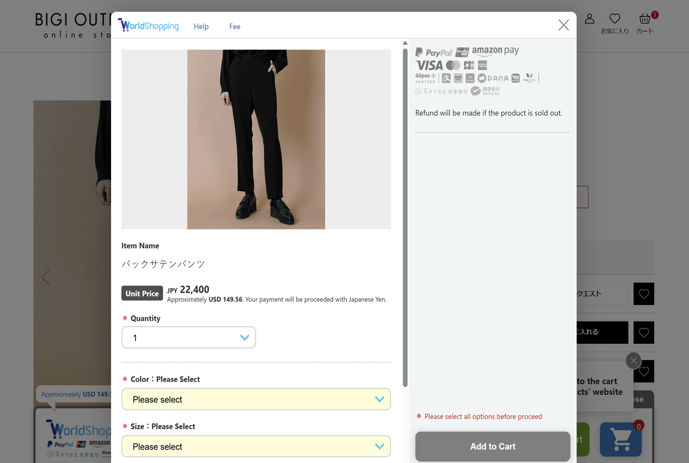 2. Add your favorite items to the WorldShopping cart. Click “Add to Cart” of the WorldShoppinng banner to proceed to buy your favorite items. The cart will only appear for items that can be purchased from your country. Explore WorldShopping Guide for More details.