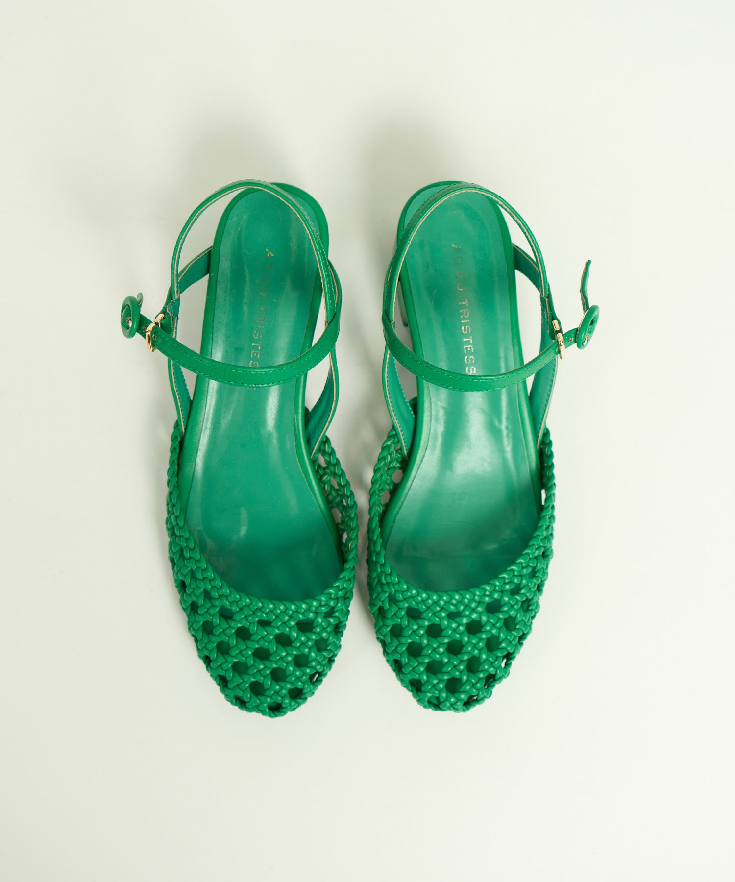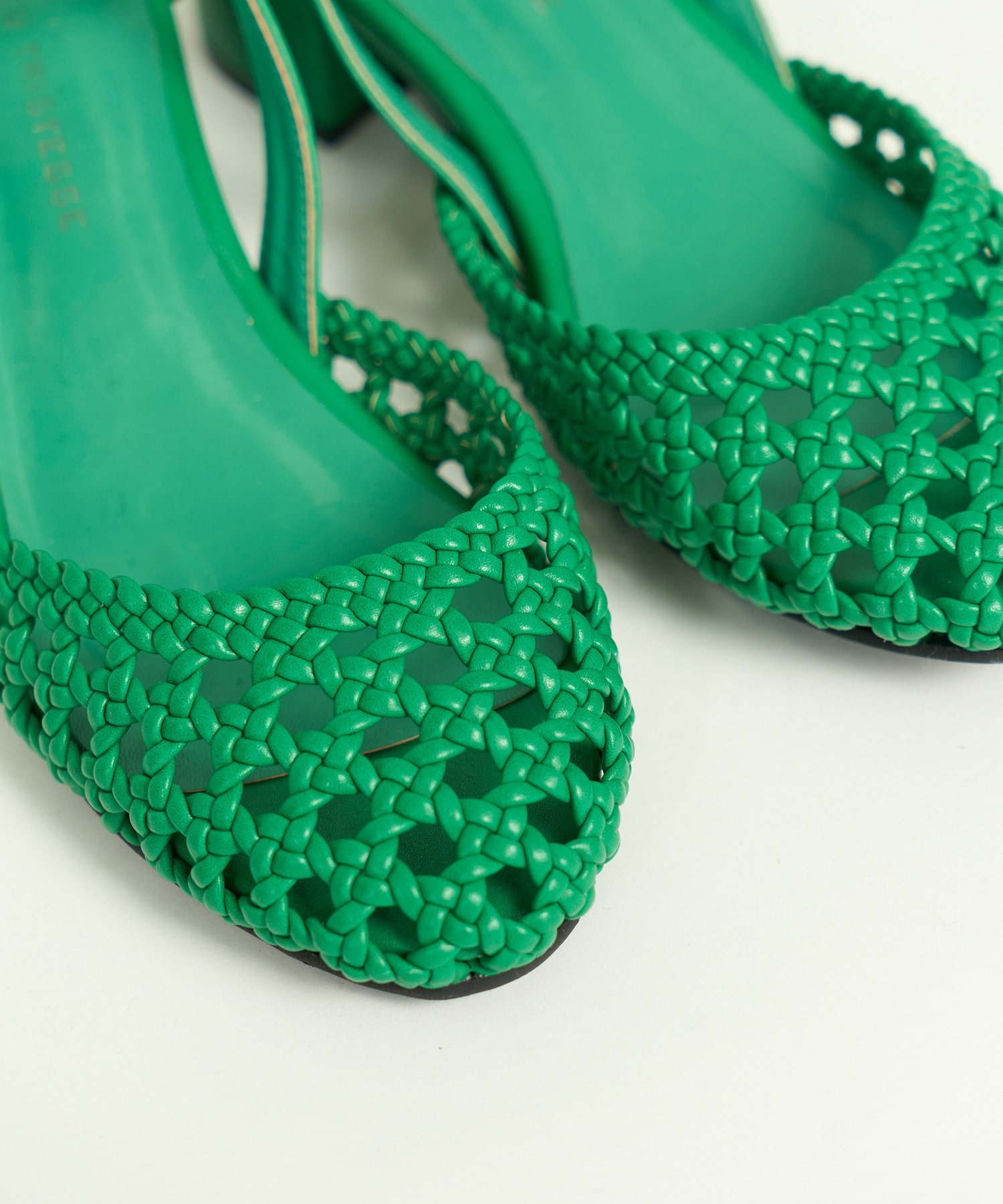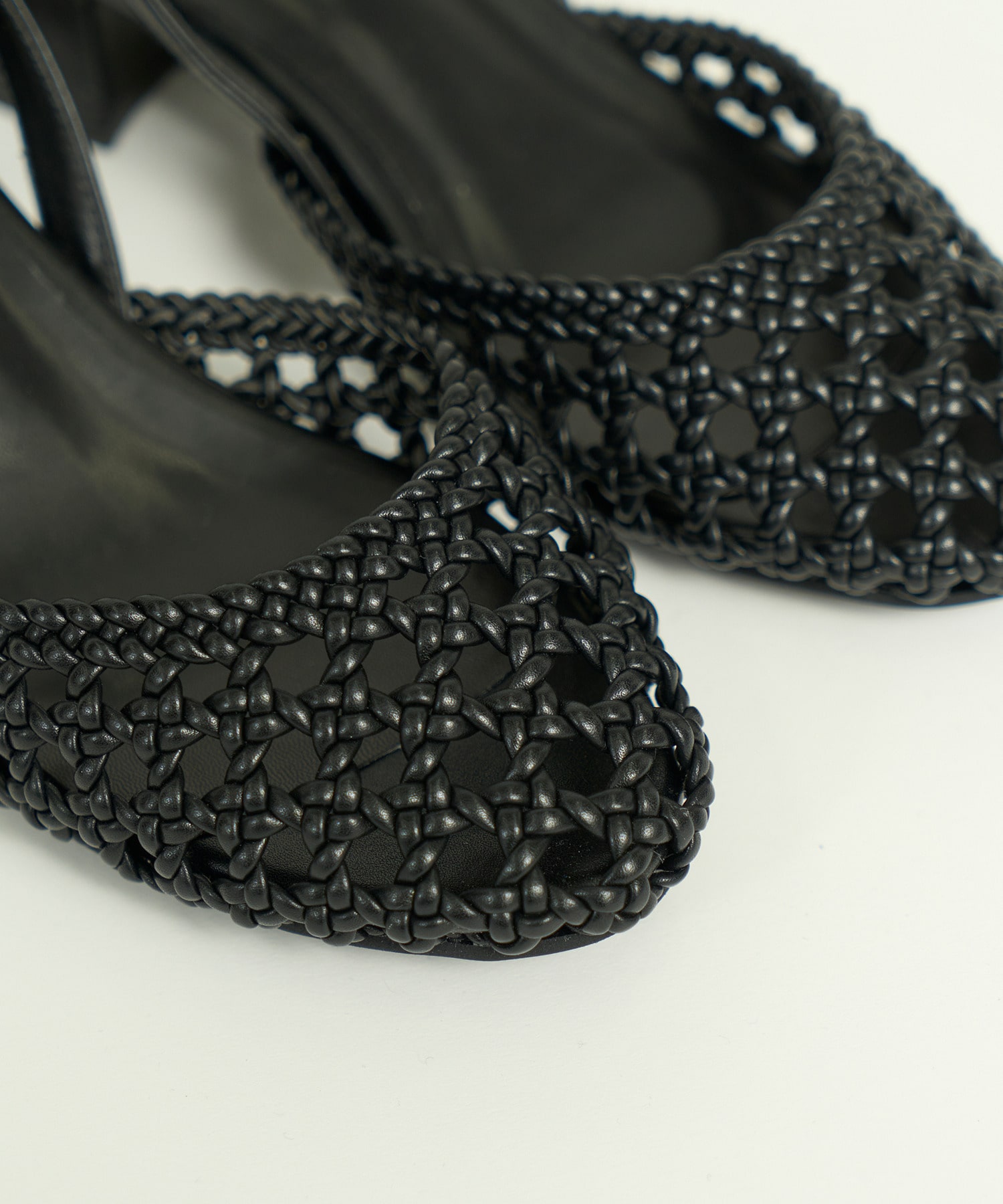 甲を浅めにして食い込みを防止し、メッシュで涼し気な雰囲気にしています。