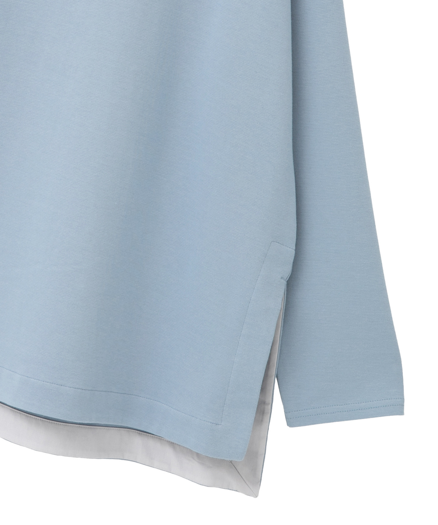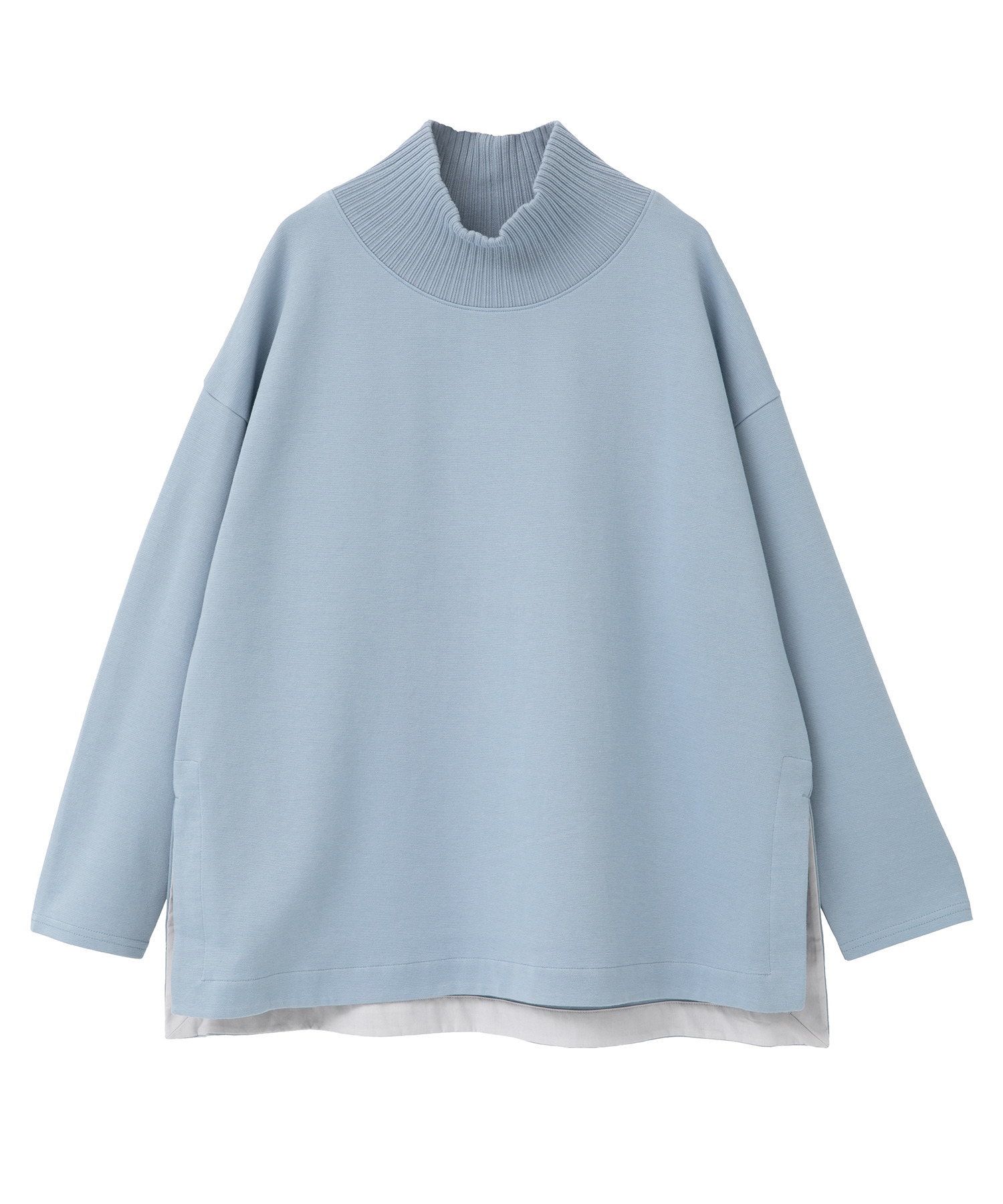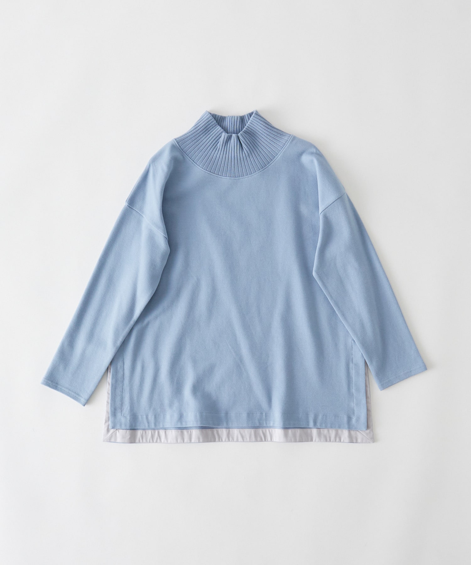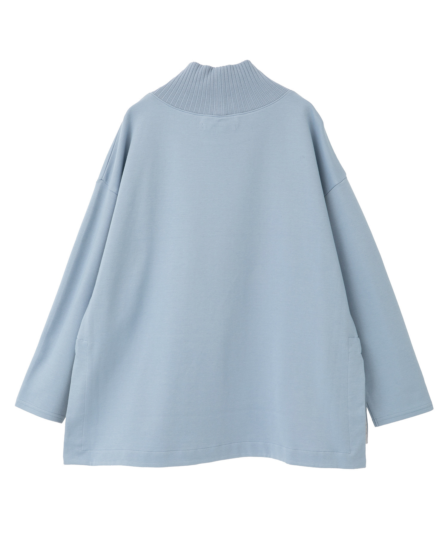 襟リブのプルオーバーはワイドシルエットのデザインで少し調整しています。