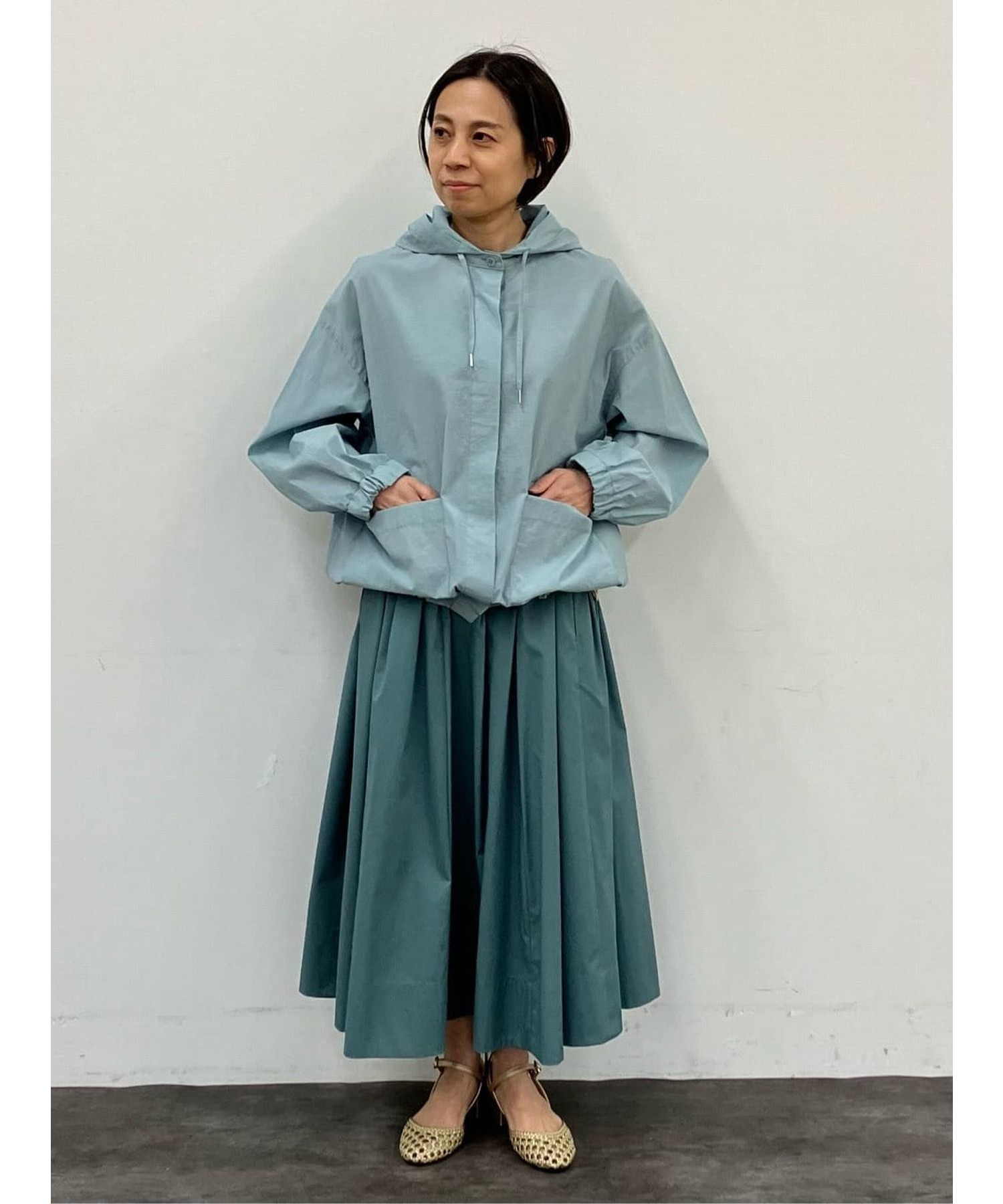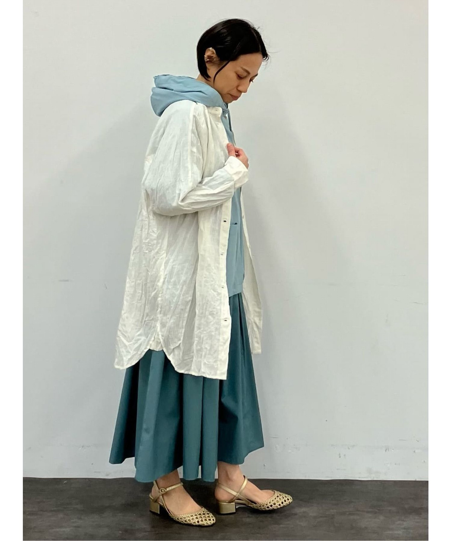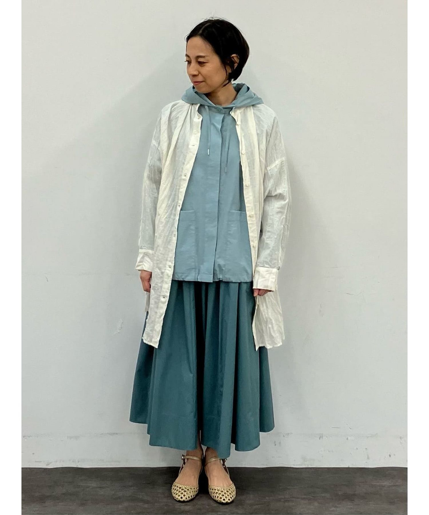 ミドル丈でスカートとの相性も良いです。軽い生地感なのでシャツ感覚で着られるライトアウターです。