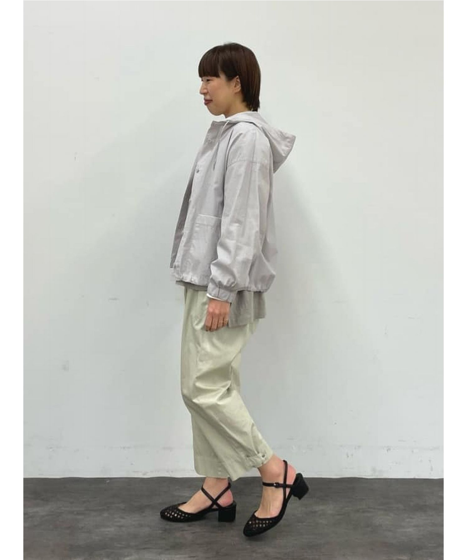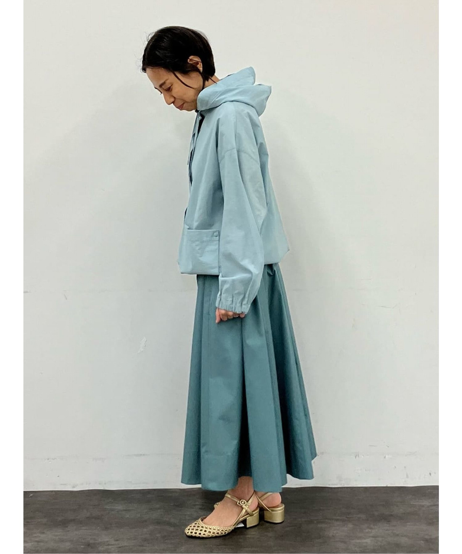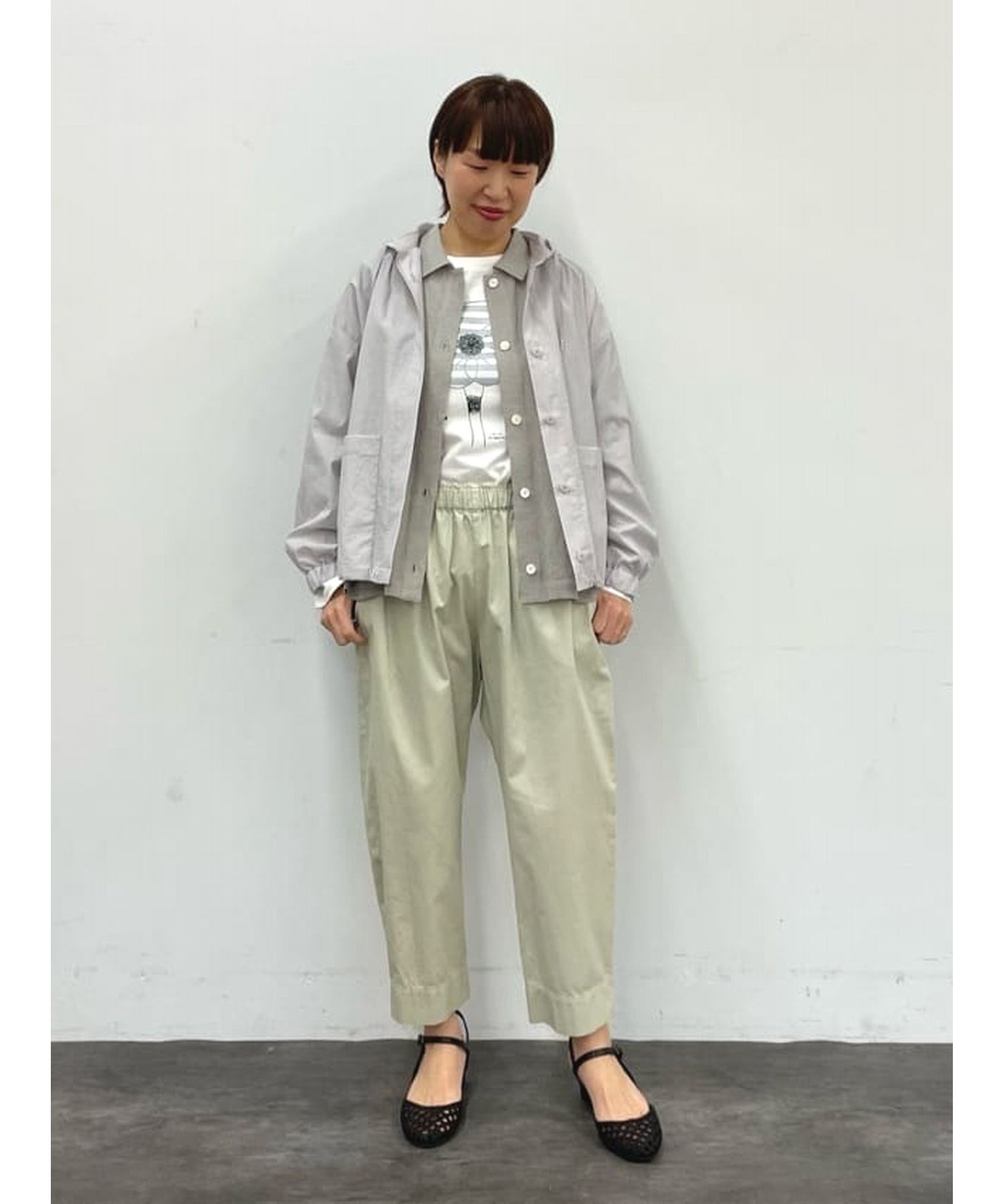 ミドル丈でスカートとの相性も良いです。軽い生地感なのでシャツ感覚で着られるライトアウターです。
