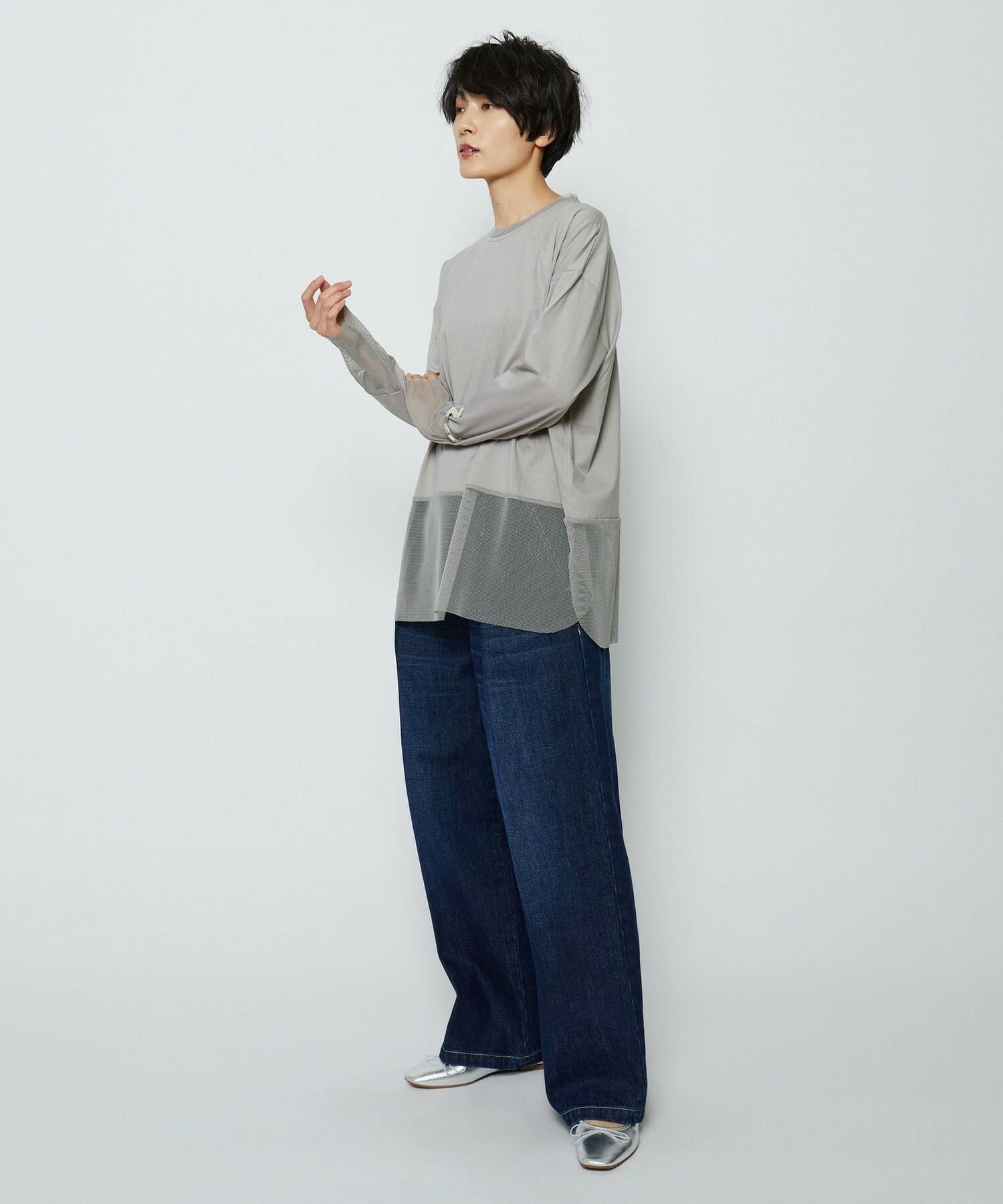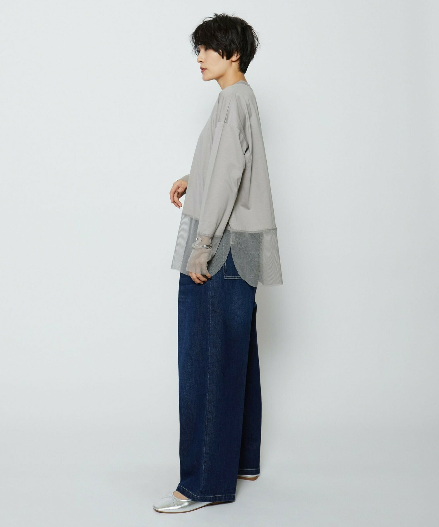 【Lサイズ】トリアセハイテンションショート丈ブラウス