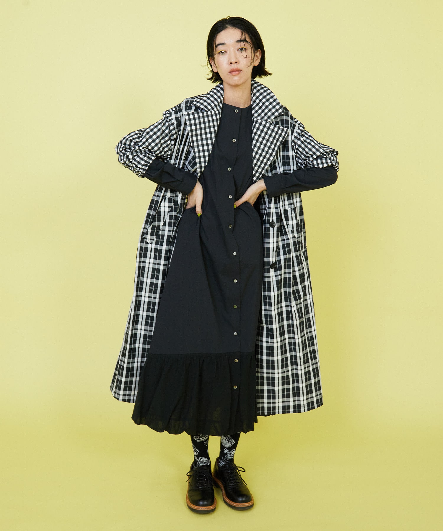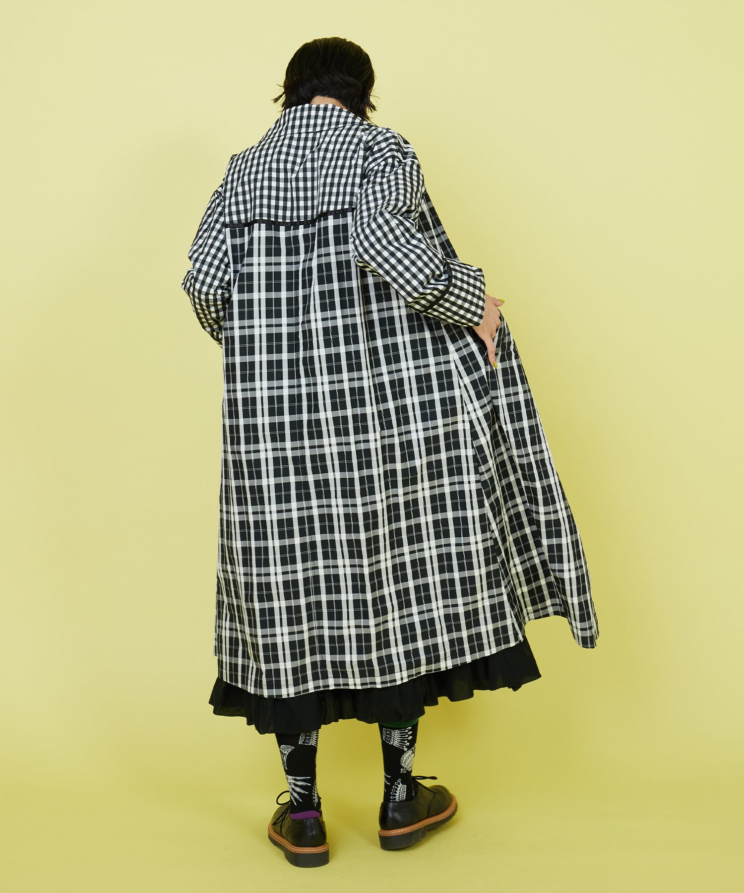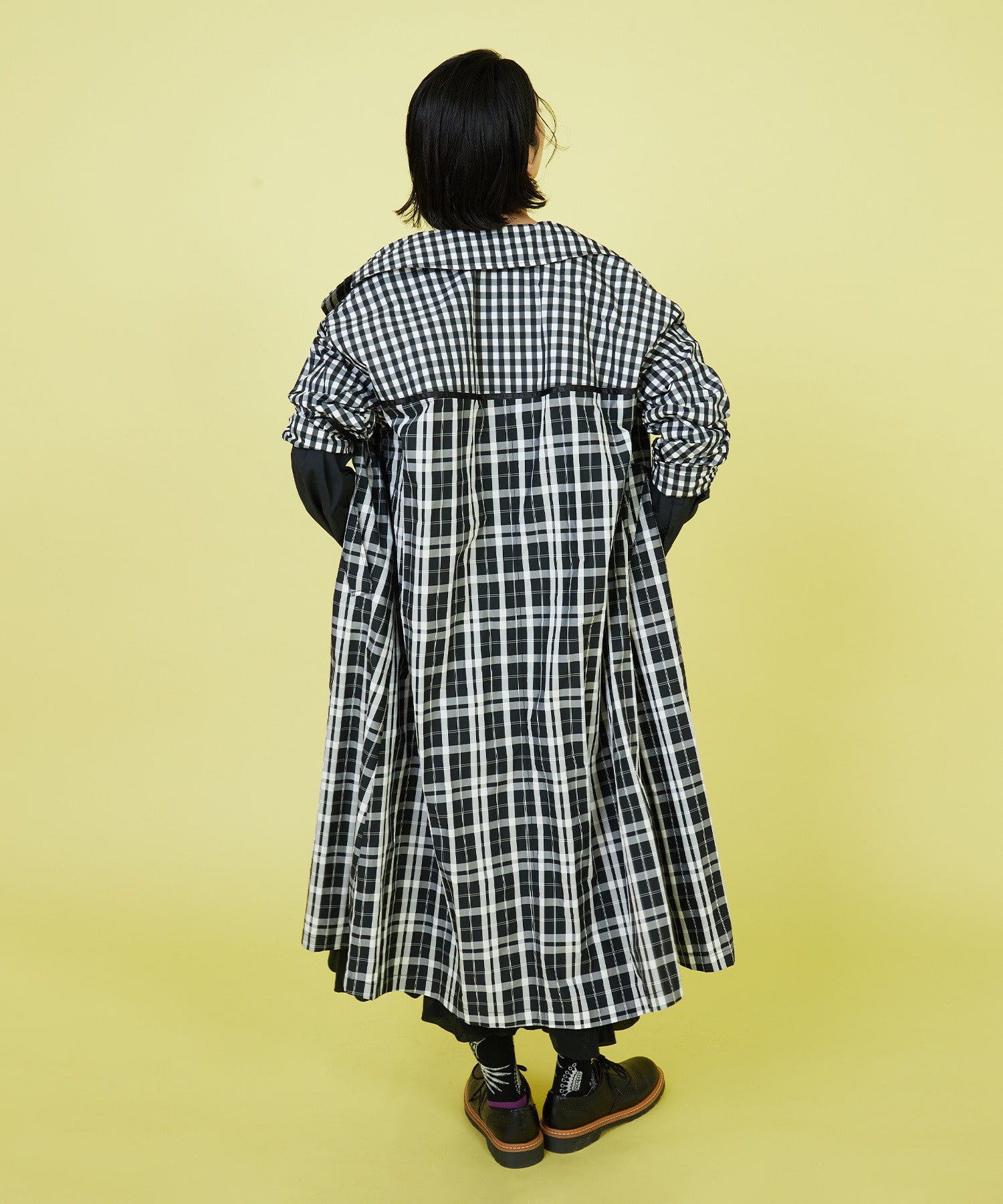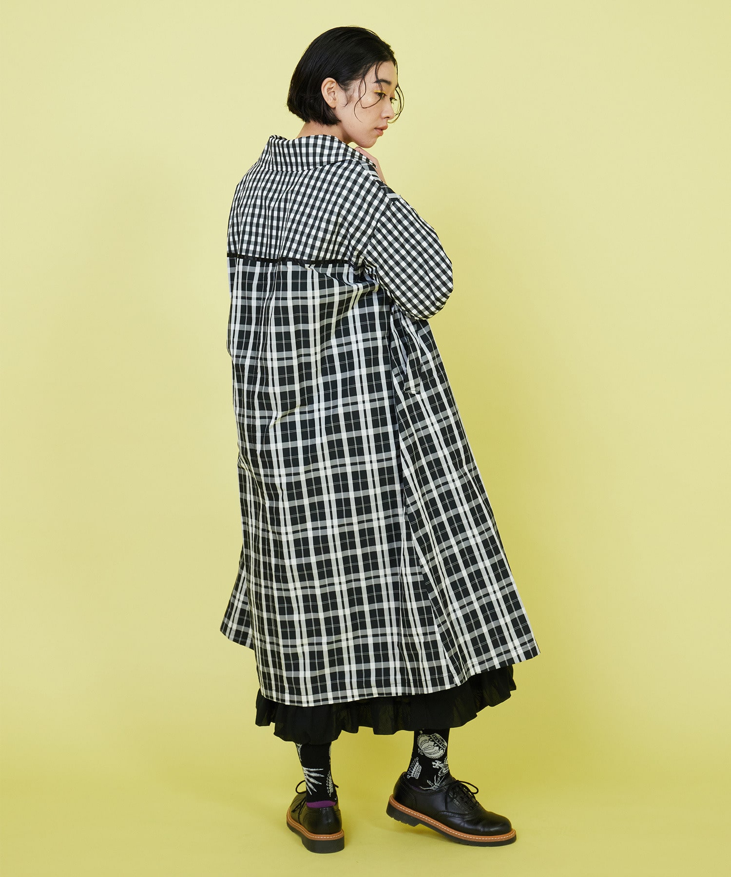 タータン調のチェックとギンガムチェックの2柄を組み合わせています。