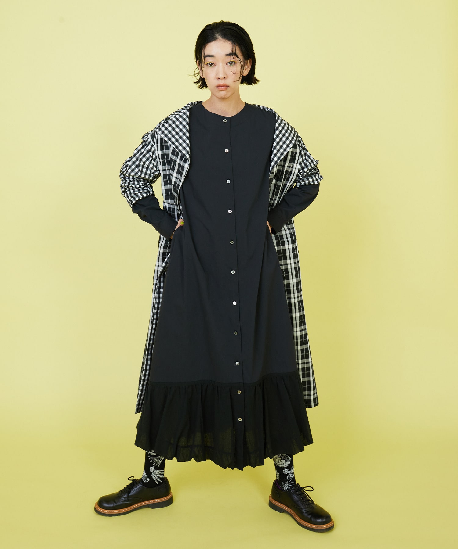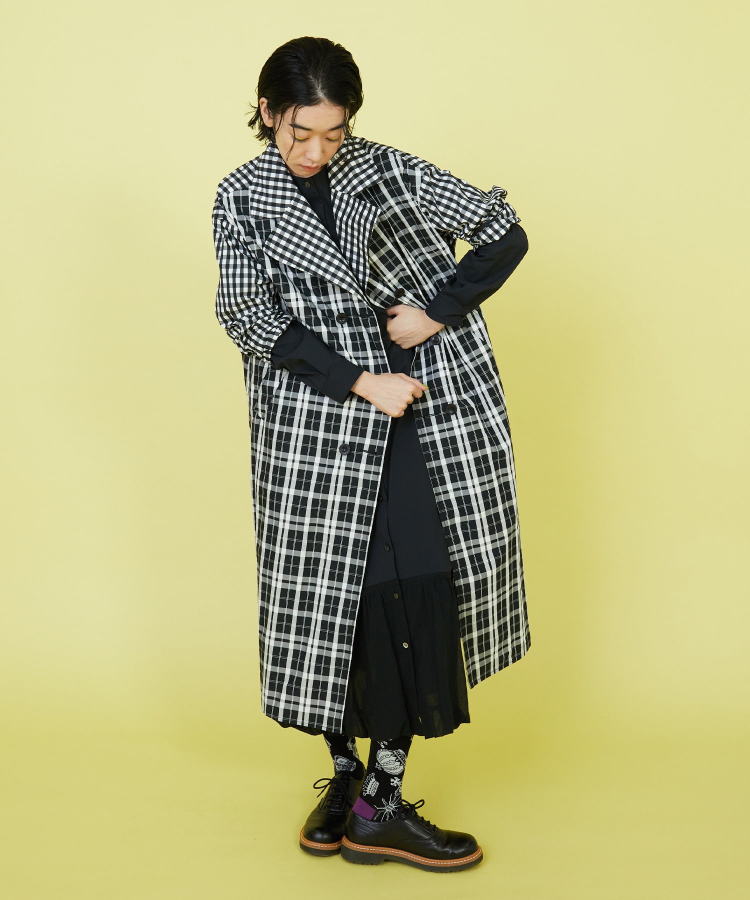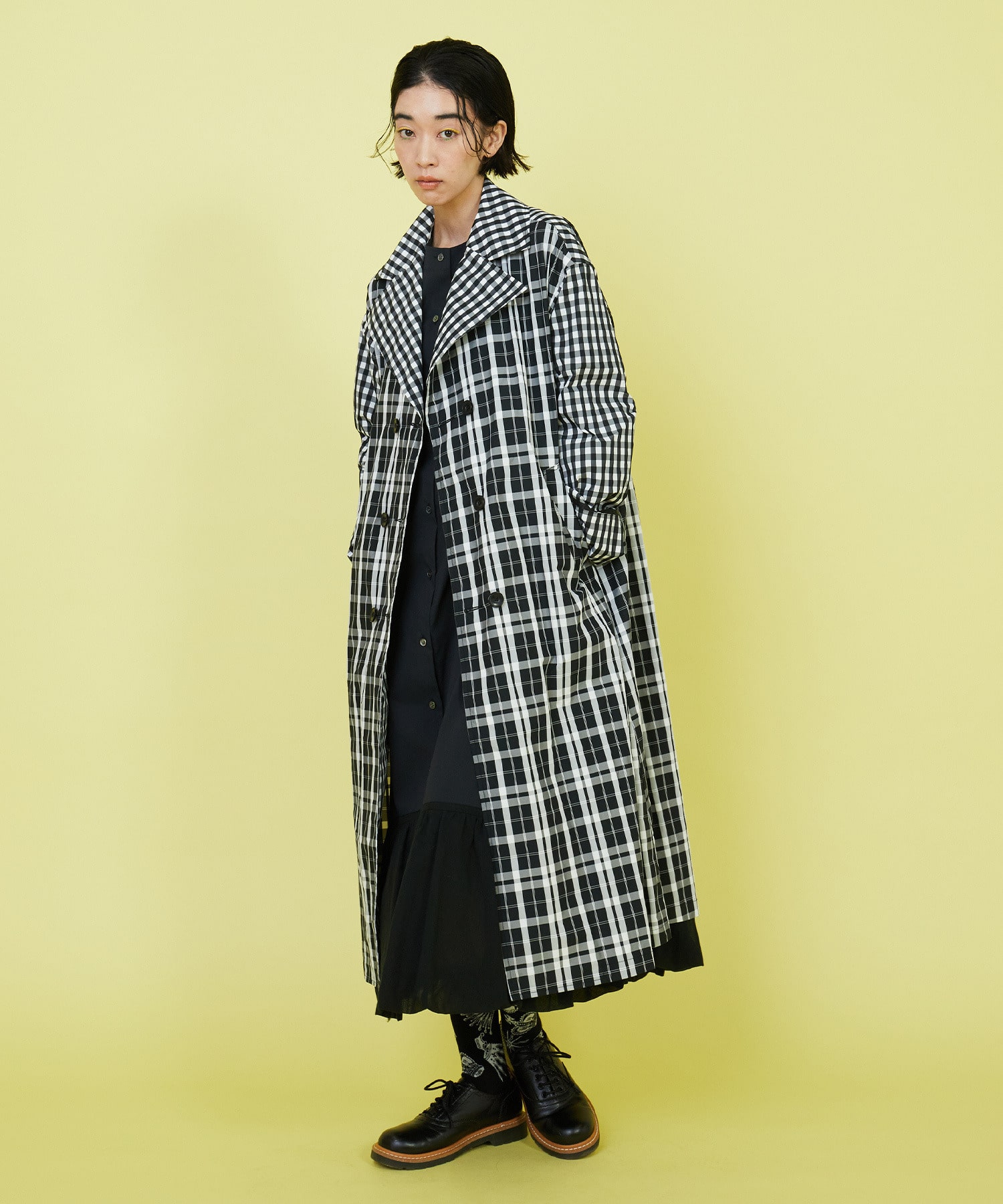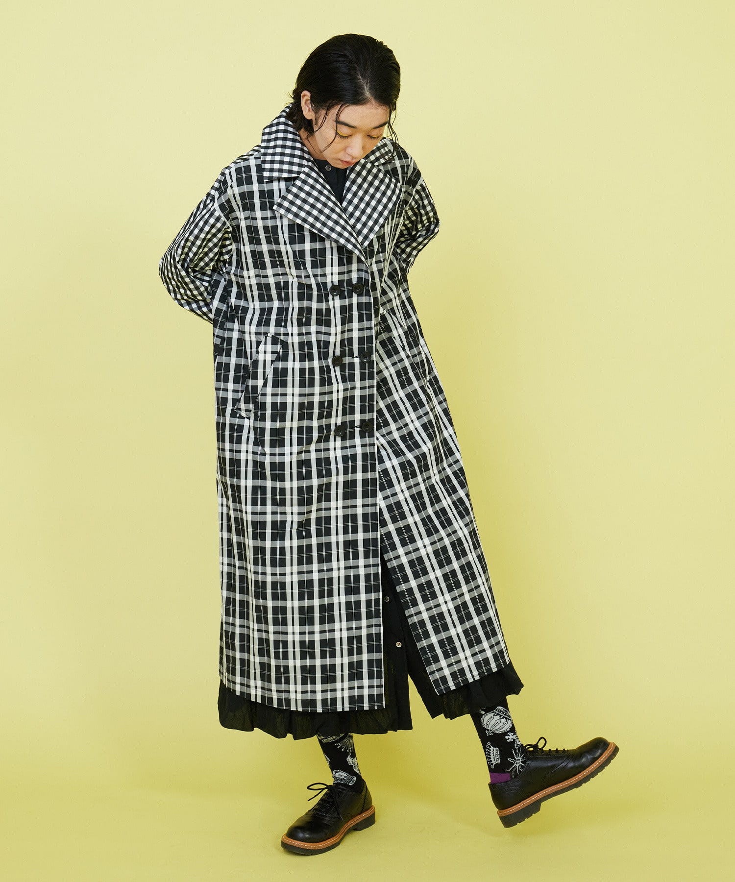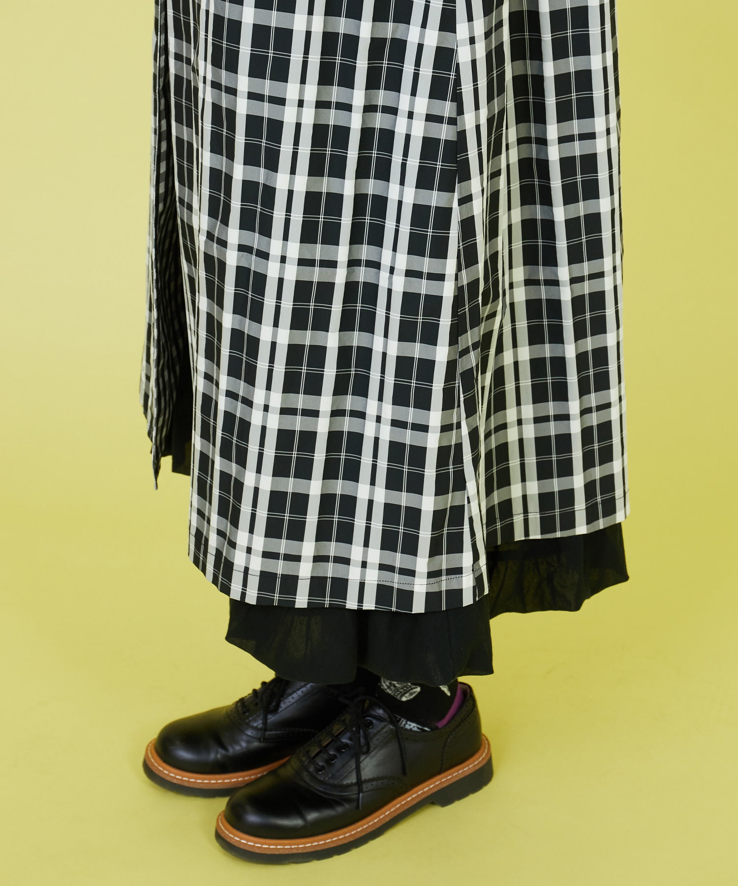 タータン調のチェックとギンガムチェックの2柄を組み合わせています。