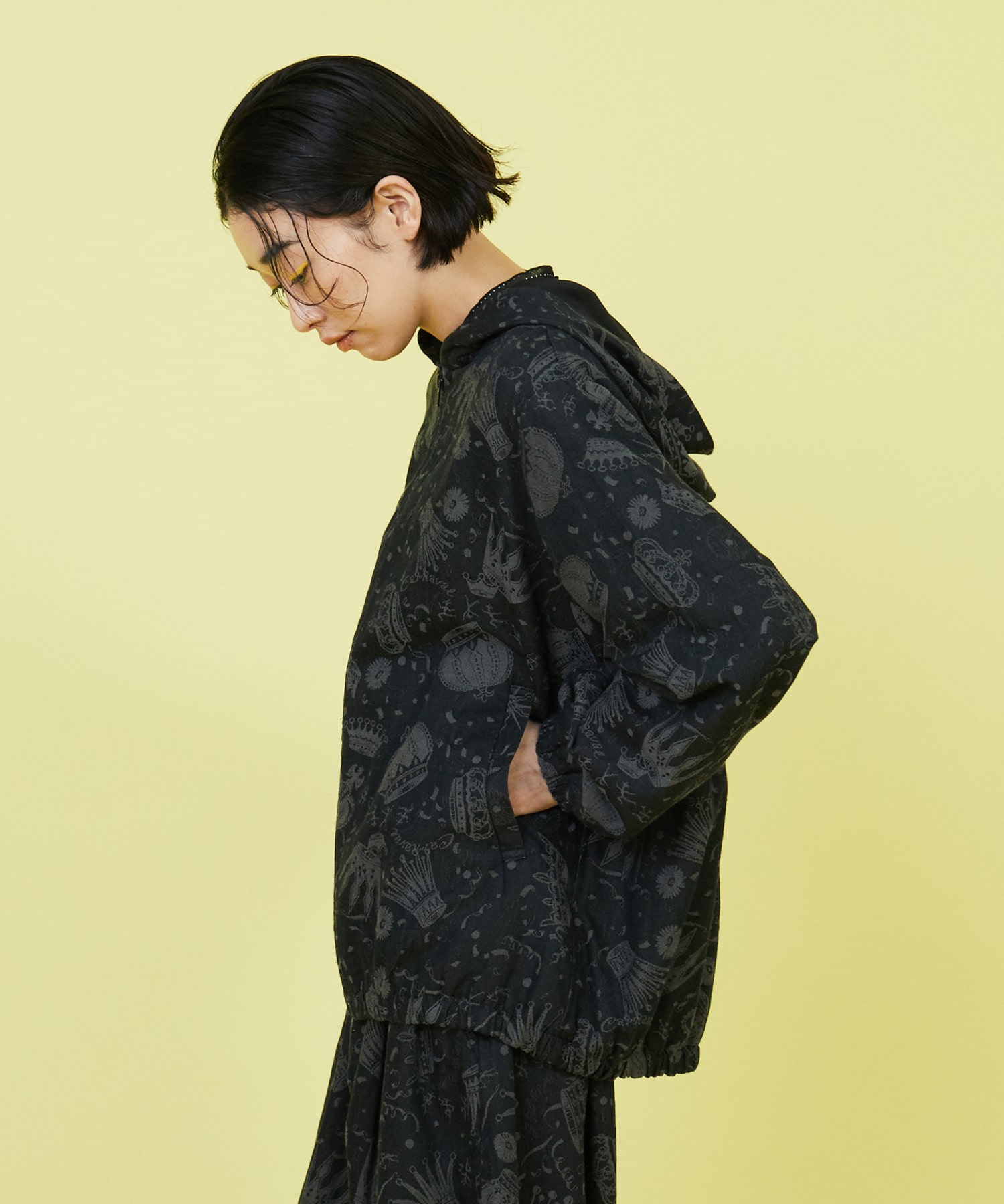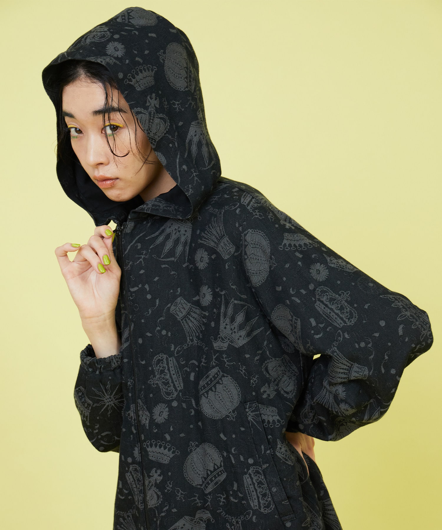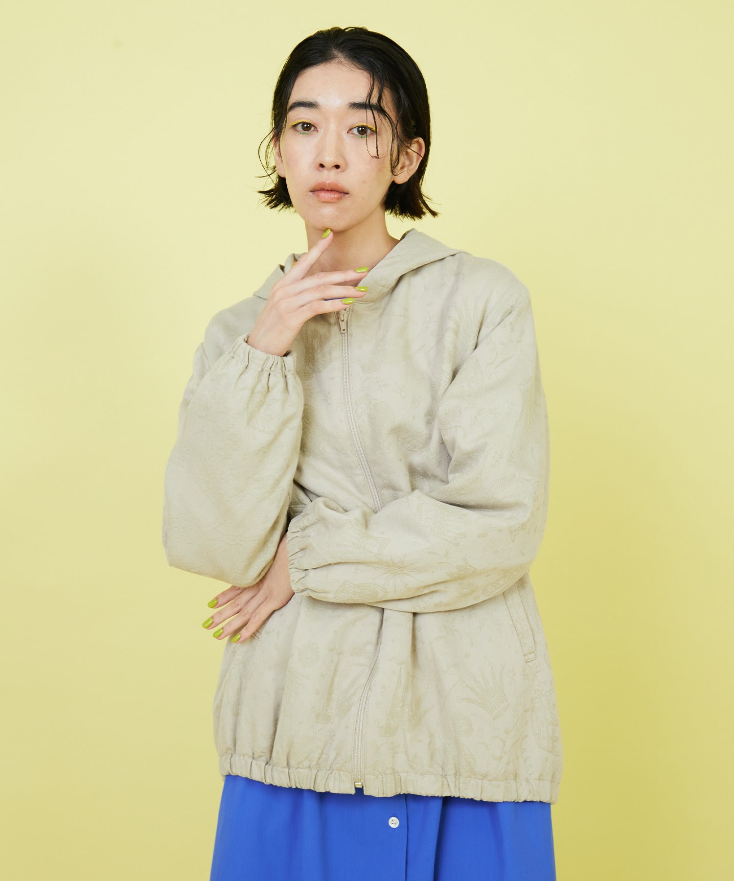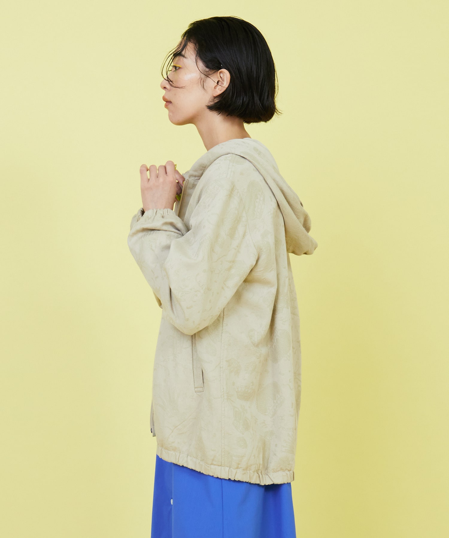 ゆったりとしたリラックスシルエットのフードジャケットはゆとりが有りながらも立体的なパターンで綺麗な丸みをだしています。