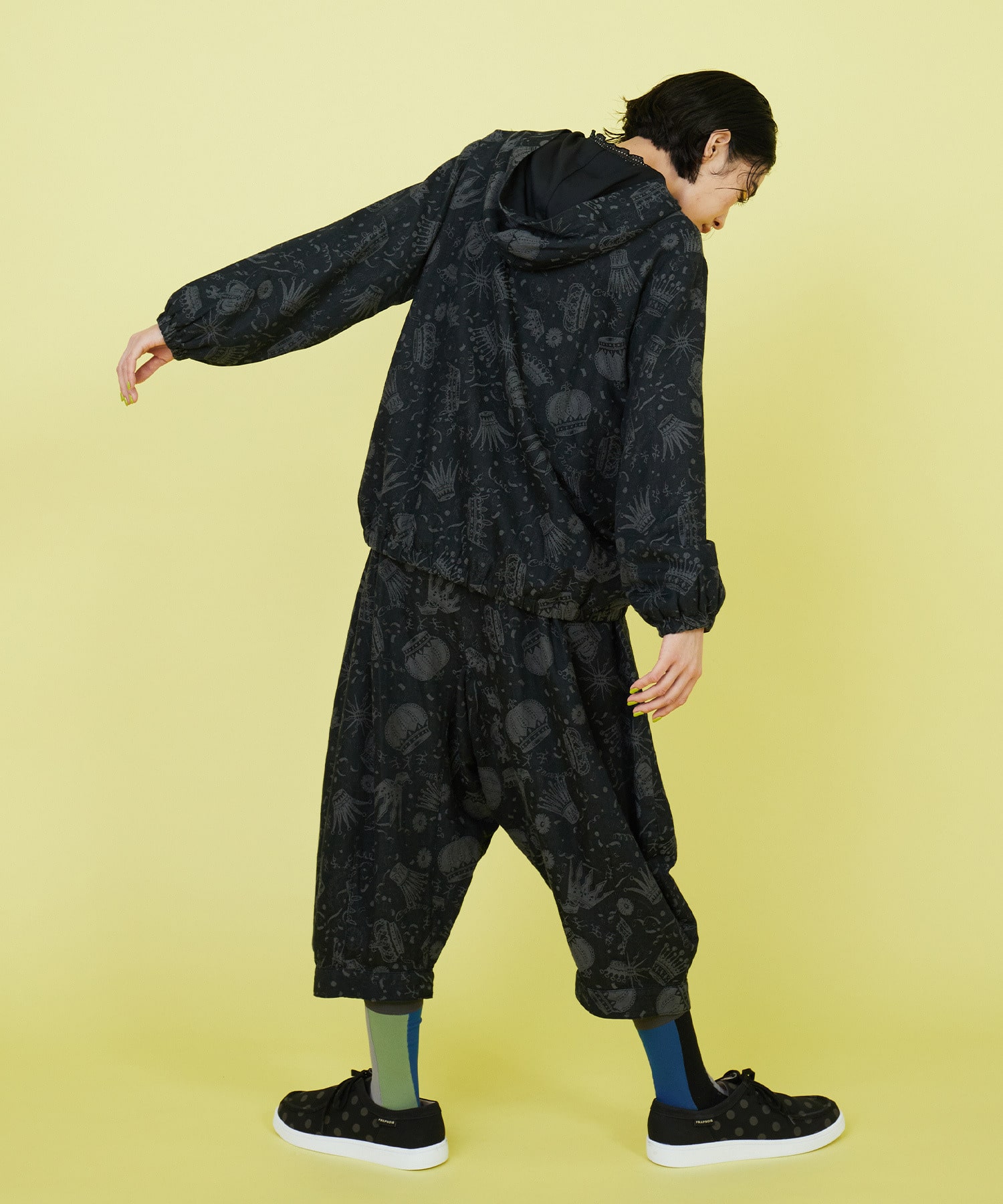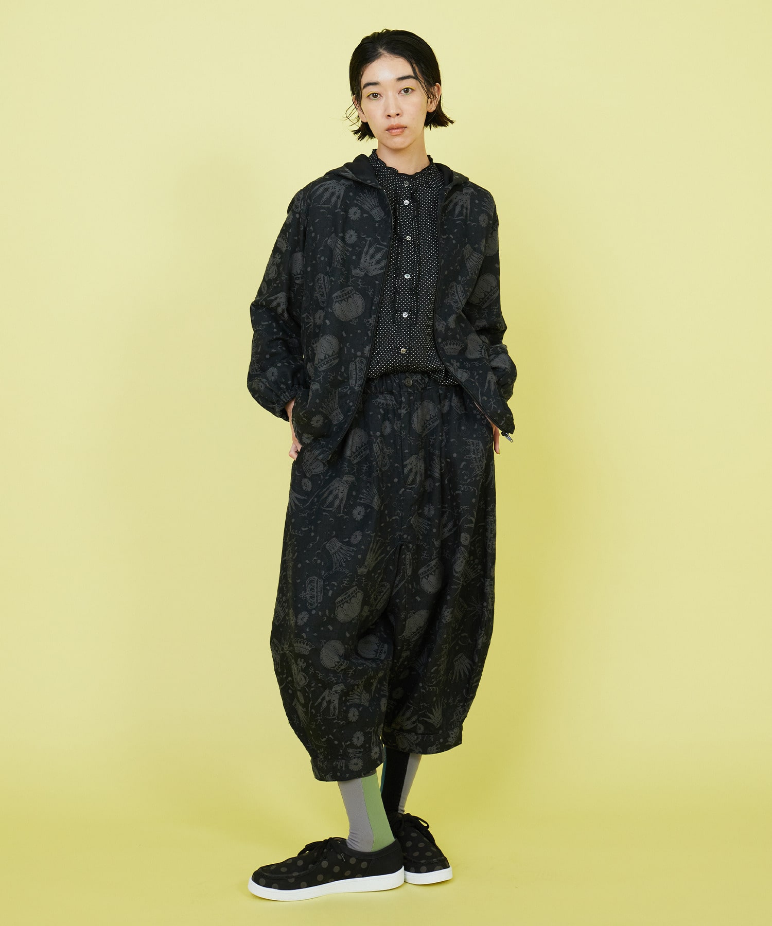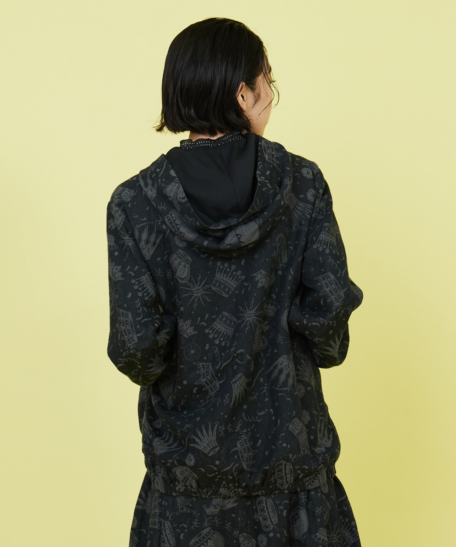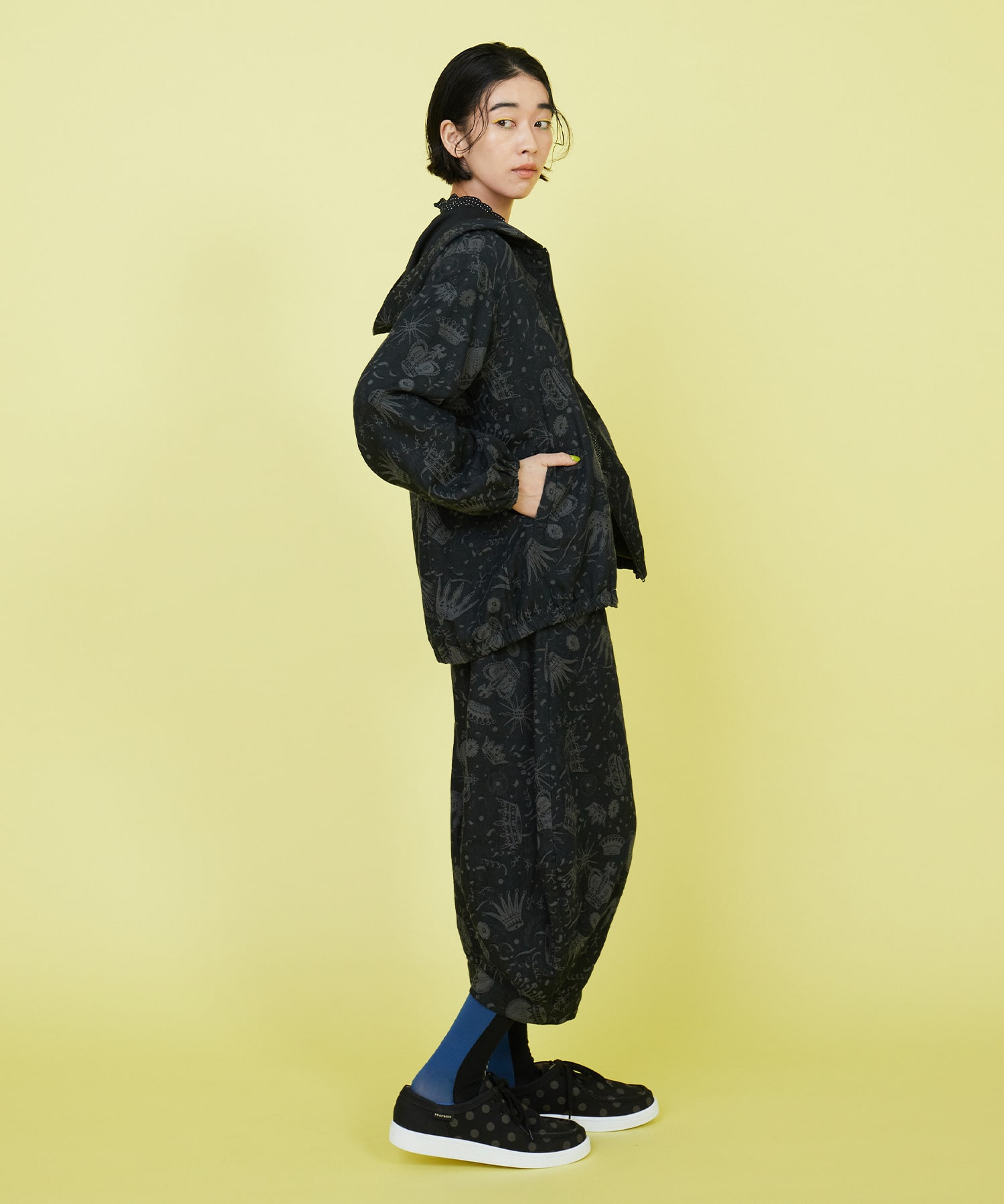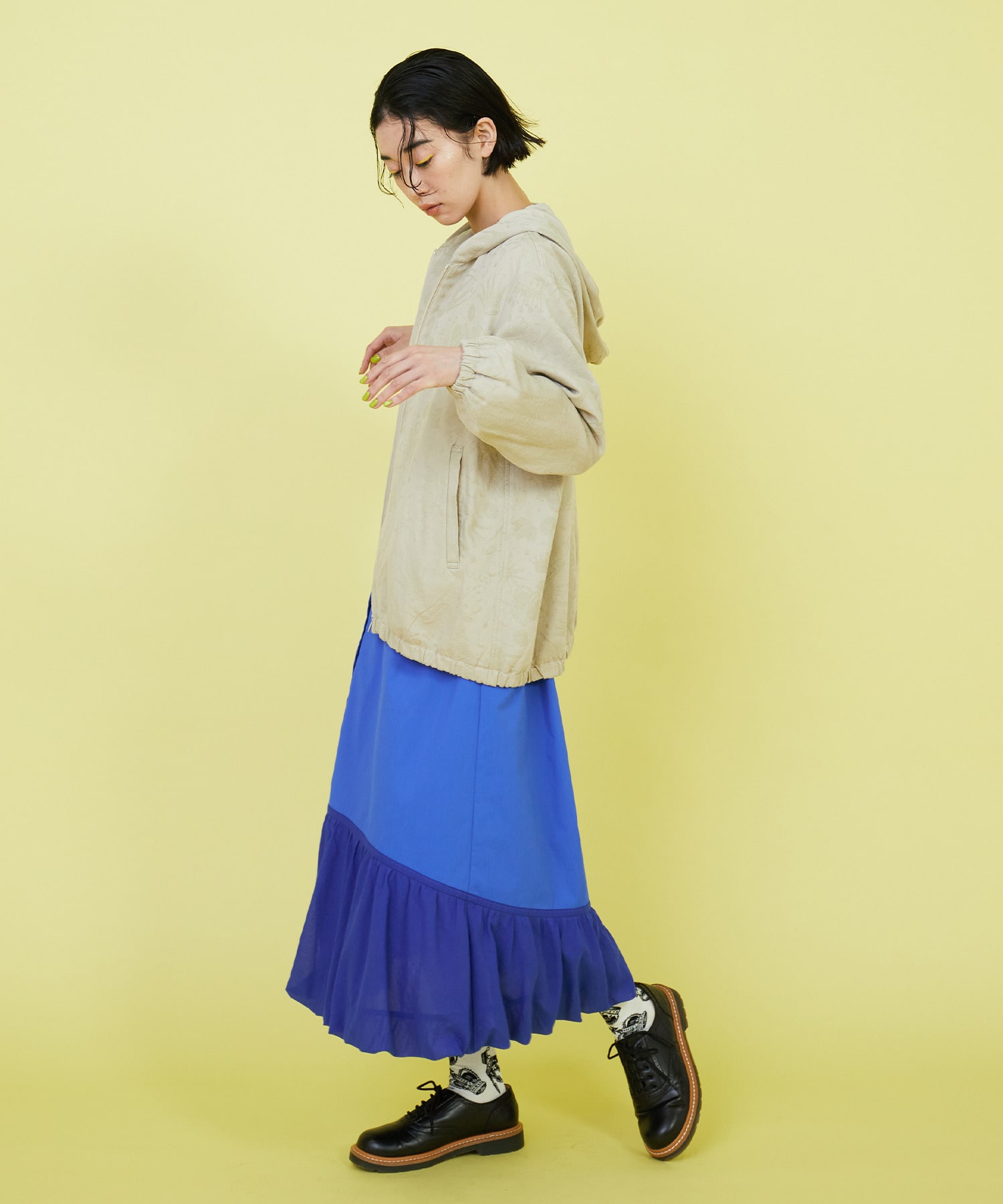 ゆったりとしたリラックスシルエットのフードジャケットはゆとりが有りながらも立体的なパターンで綺麗な丸みをだしています。