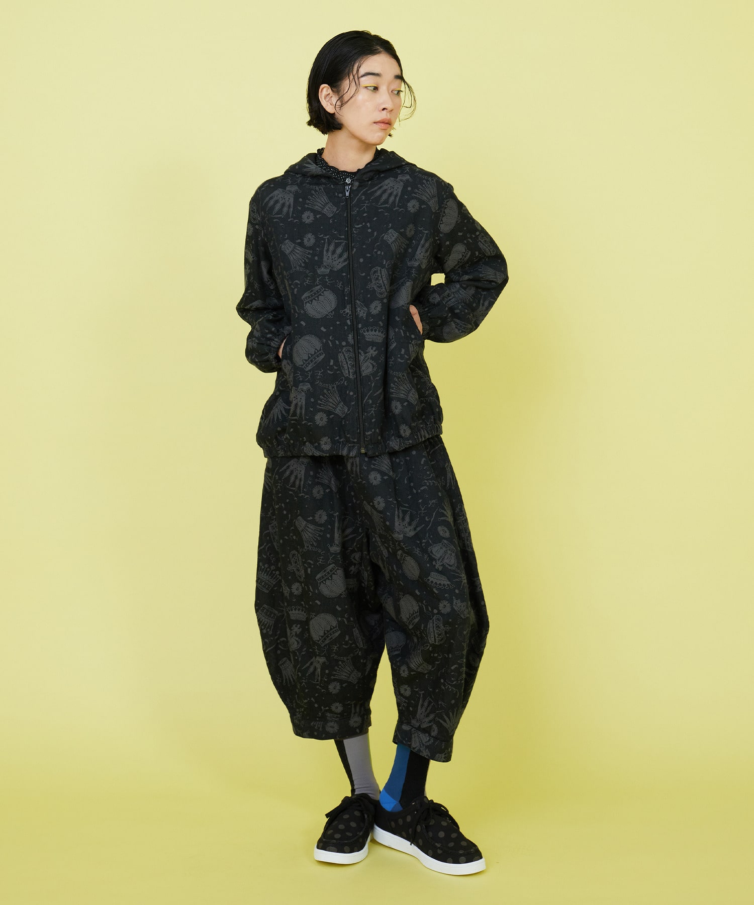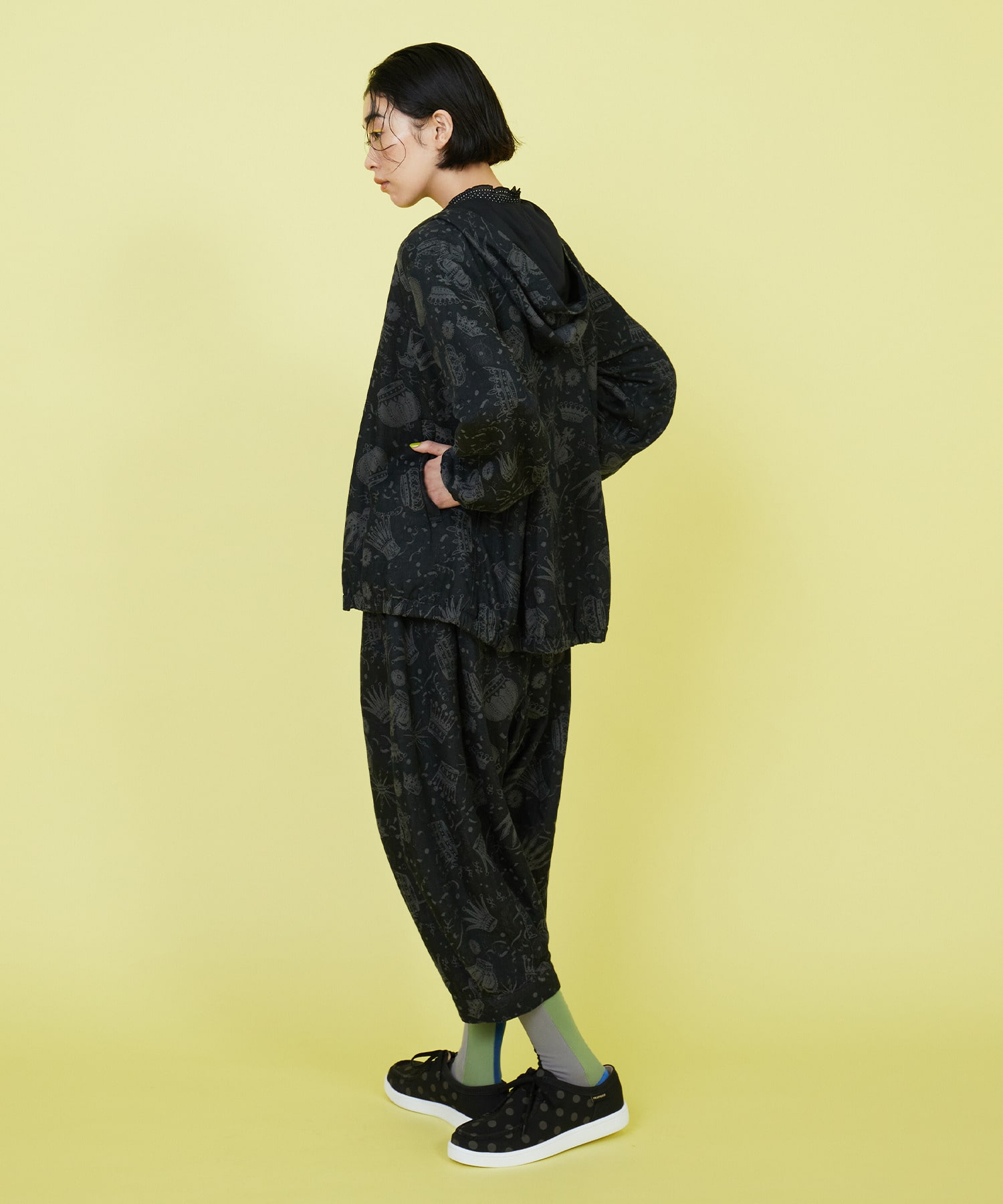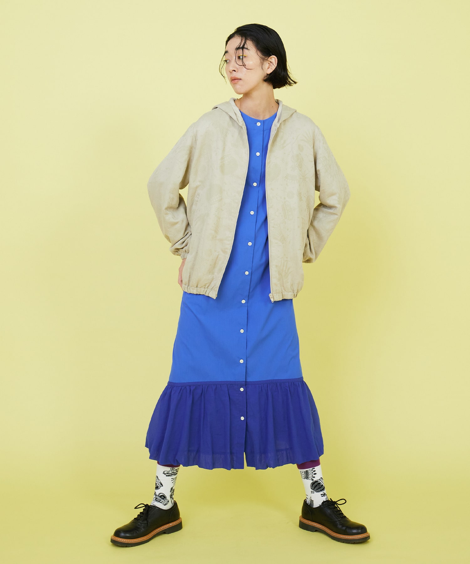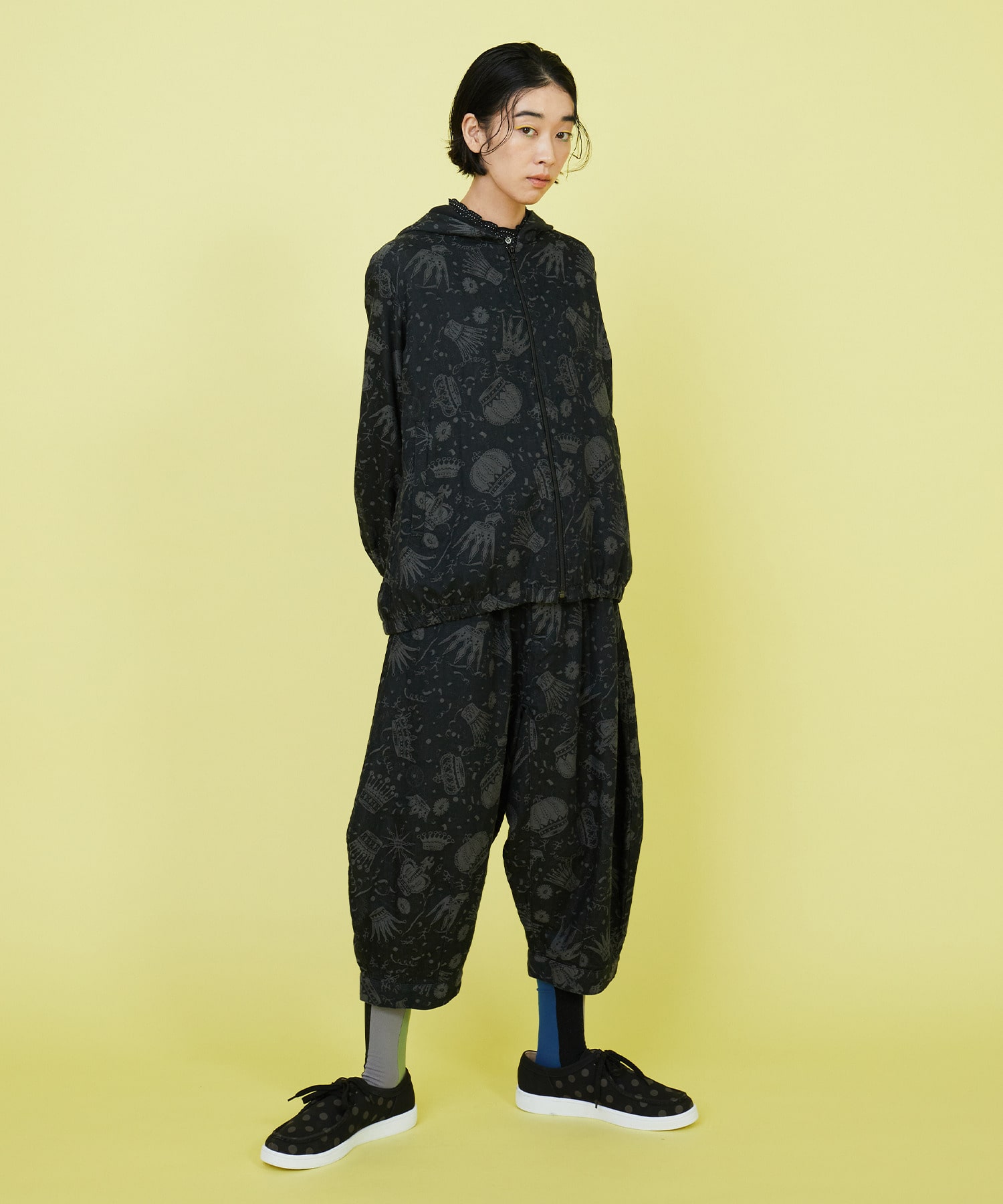ゆったりとしたリラックスシルエットのフードジャケットはゆとりが有りながらも立体的なパターンで綺麗な丸みをだしています。