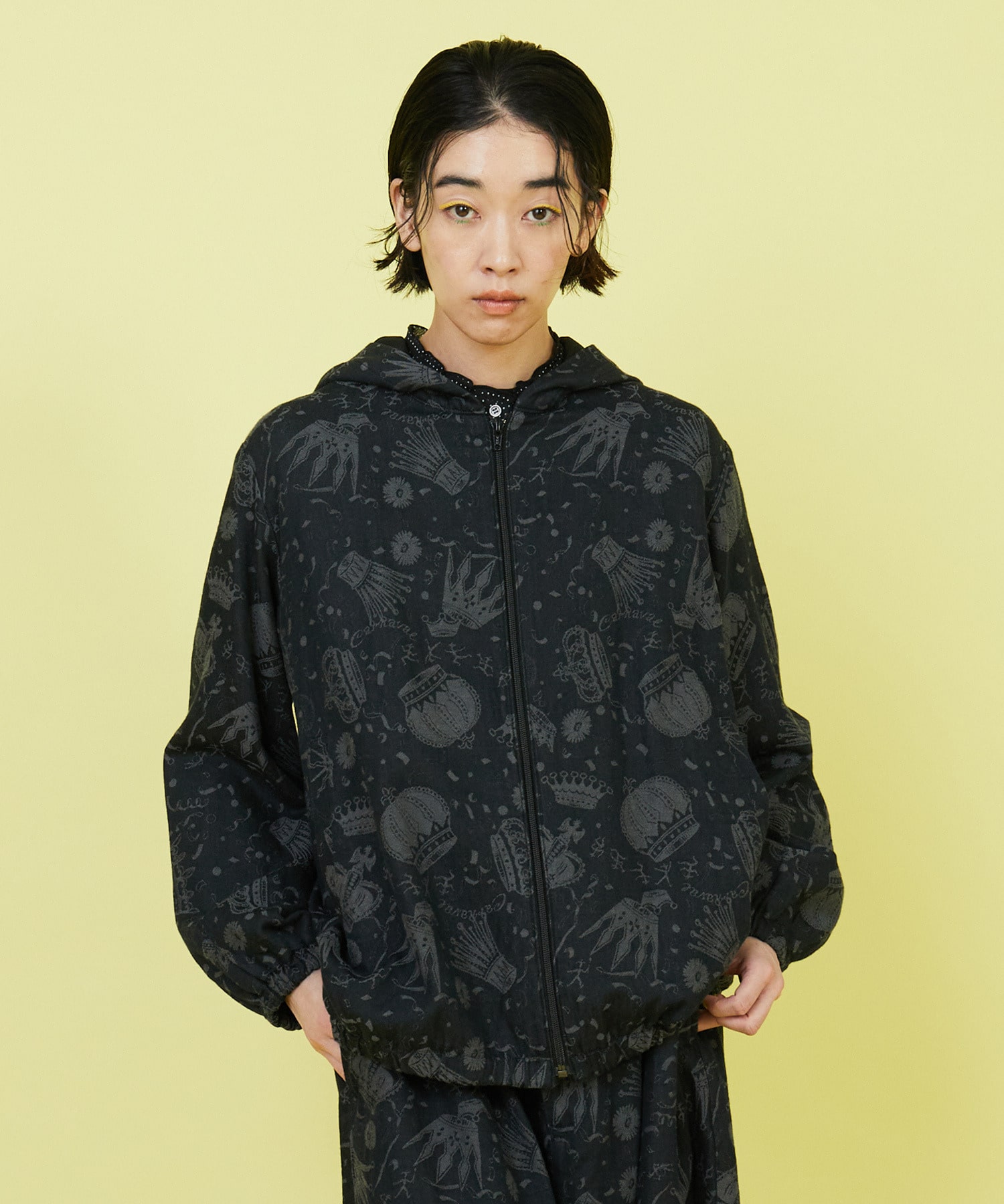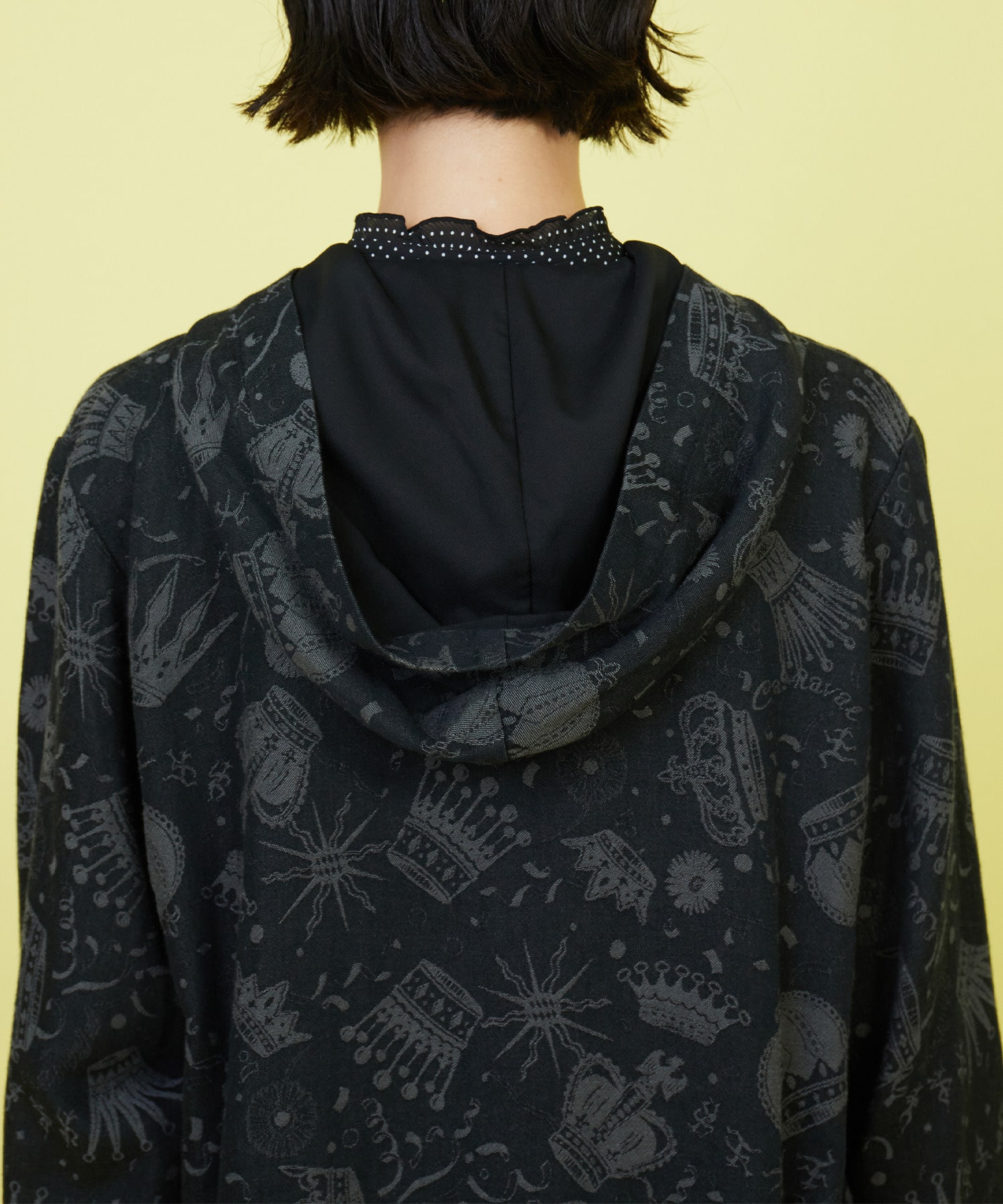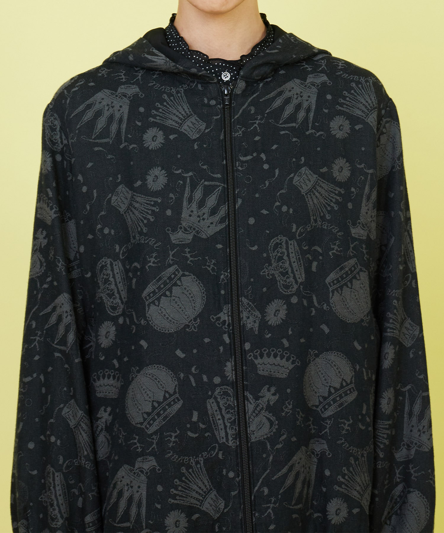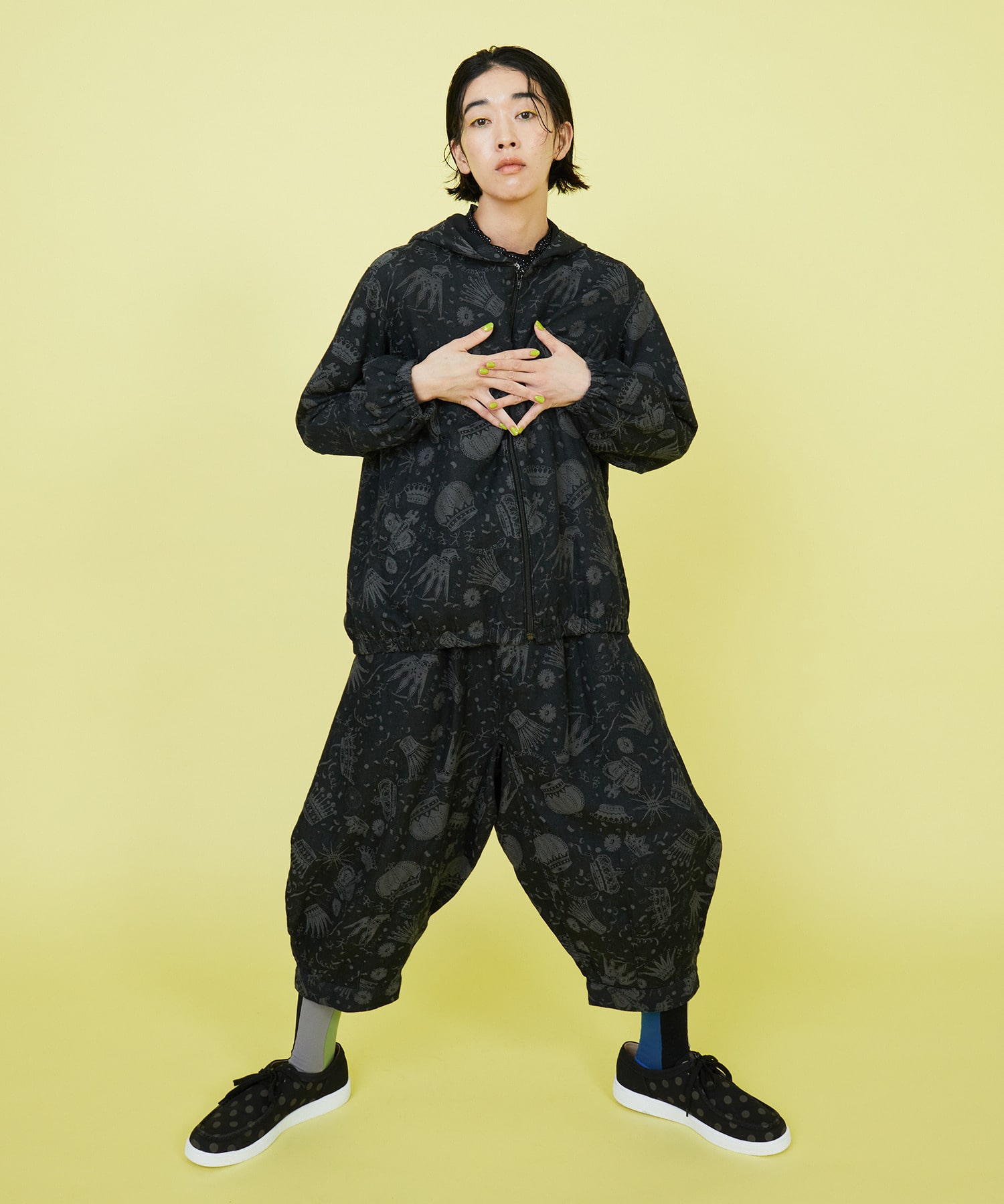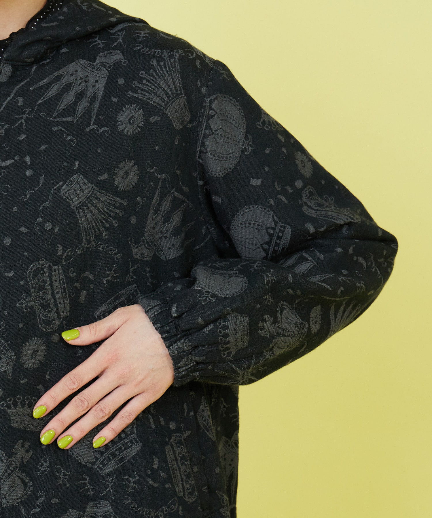 ゆったりとしたリラックスシルエットのフードジャケットはゆとりが有りながらも立体的なパターンで綺麗な丸みをだしています。