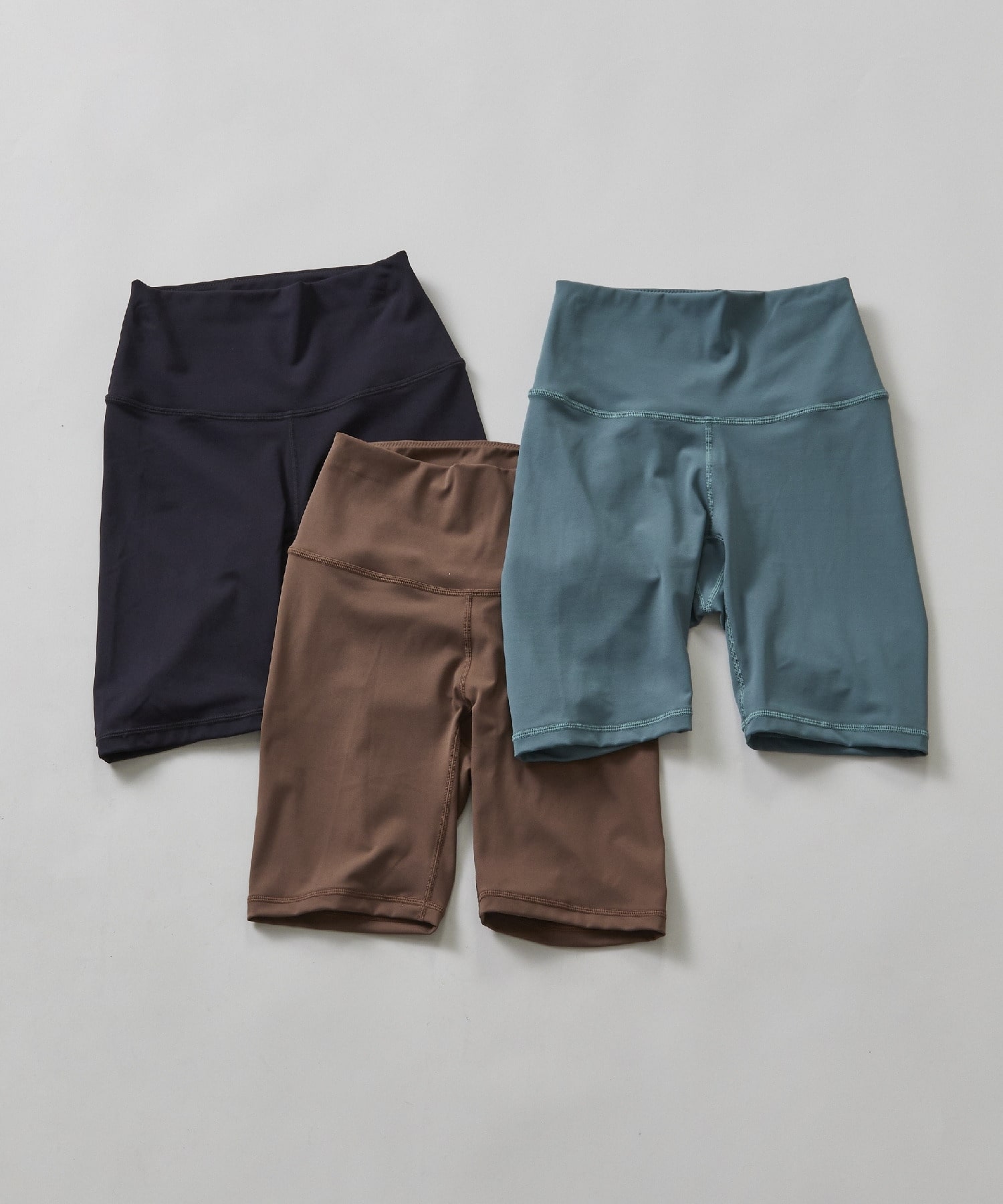 人気のYOGA FITシリーズのトレンド感のあるハーフレギンス!新色ダークグリーン、ブラウンも加わり登場!| ウエスト | もも周り | 股下 | 総丈 | 裾周り | |