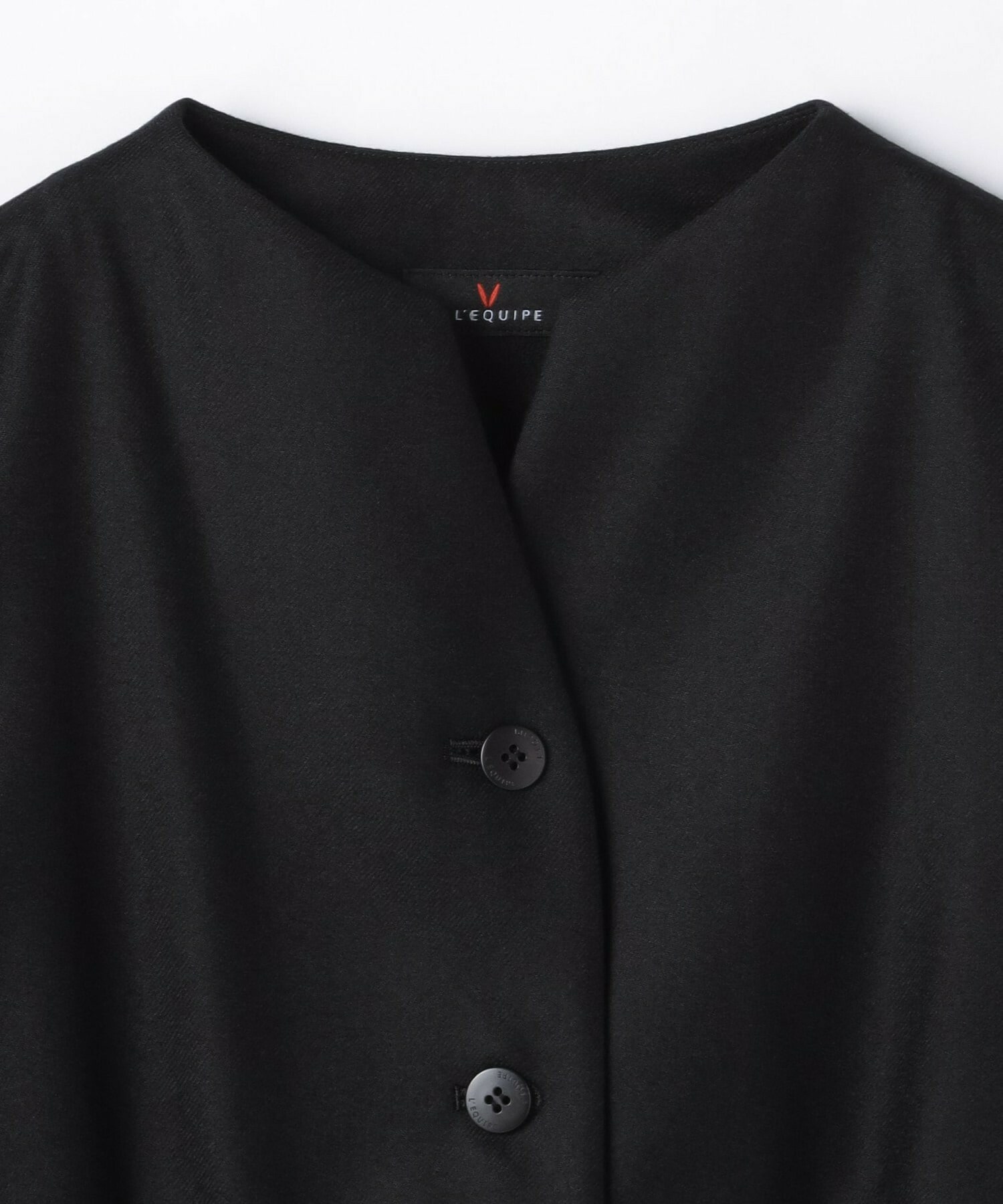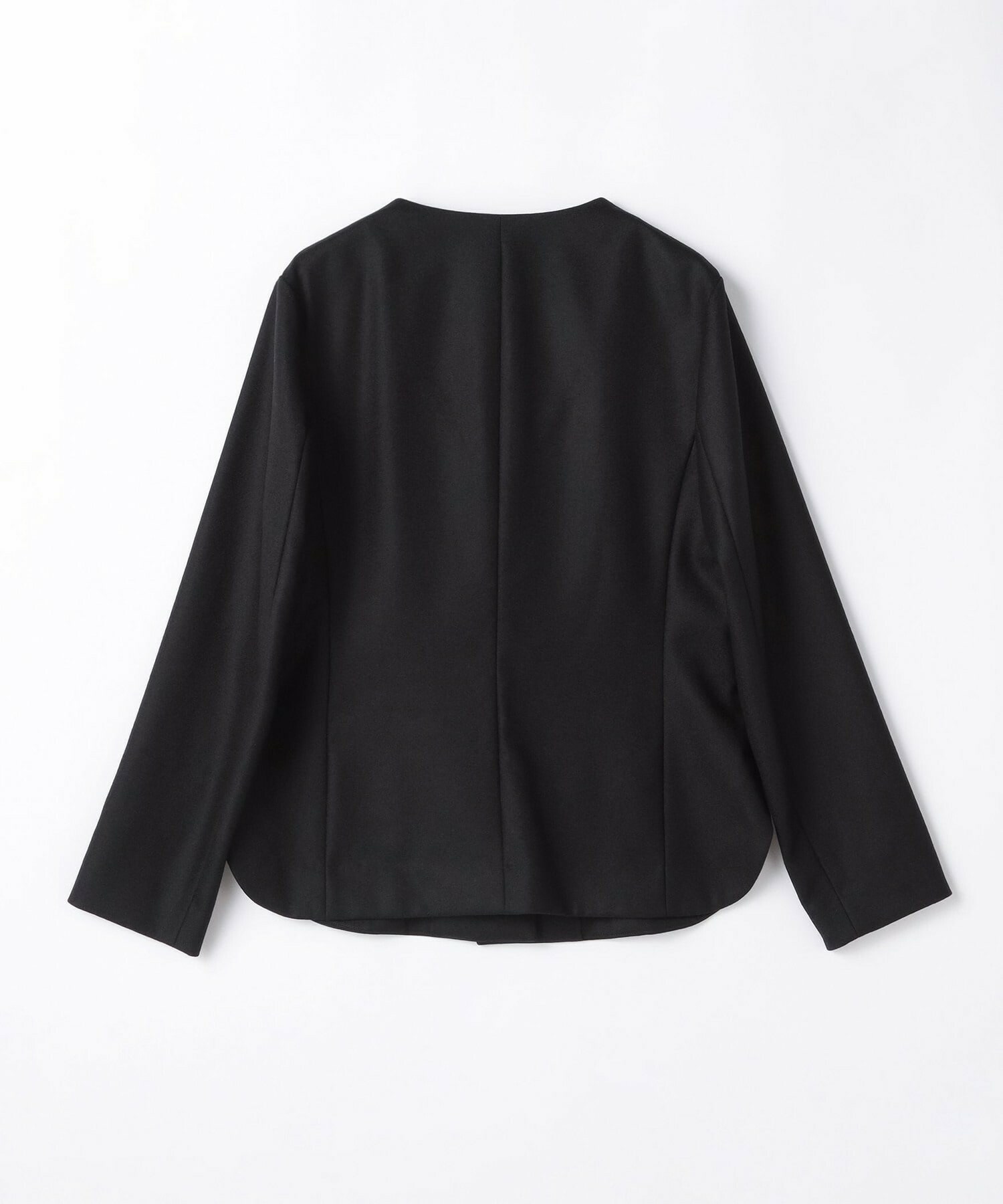 ソフトな風合いのウールフラノを使用しています。きちんと感のあるジャケットライクなブラウスです。パンツとセットアップで着て頂けます。マスキュリンなムードは今年らしいスタイリングです。高めの衿ぐりが硬くなりすぎずフェミニンな印象を与えます。