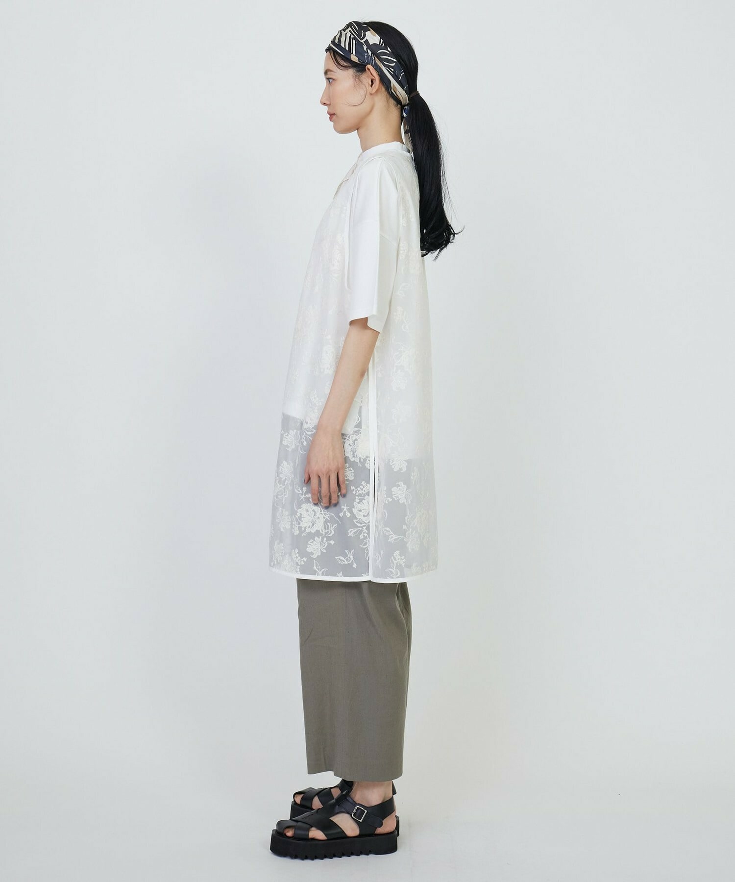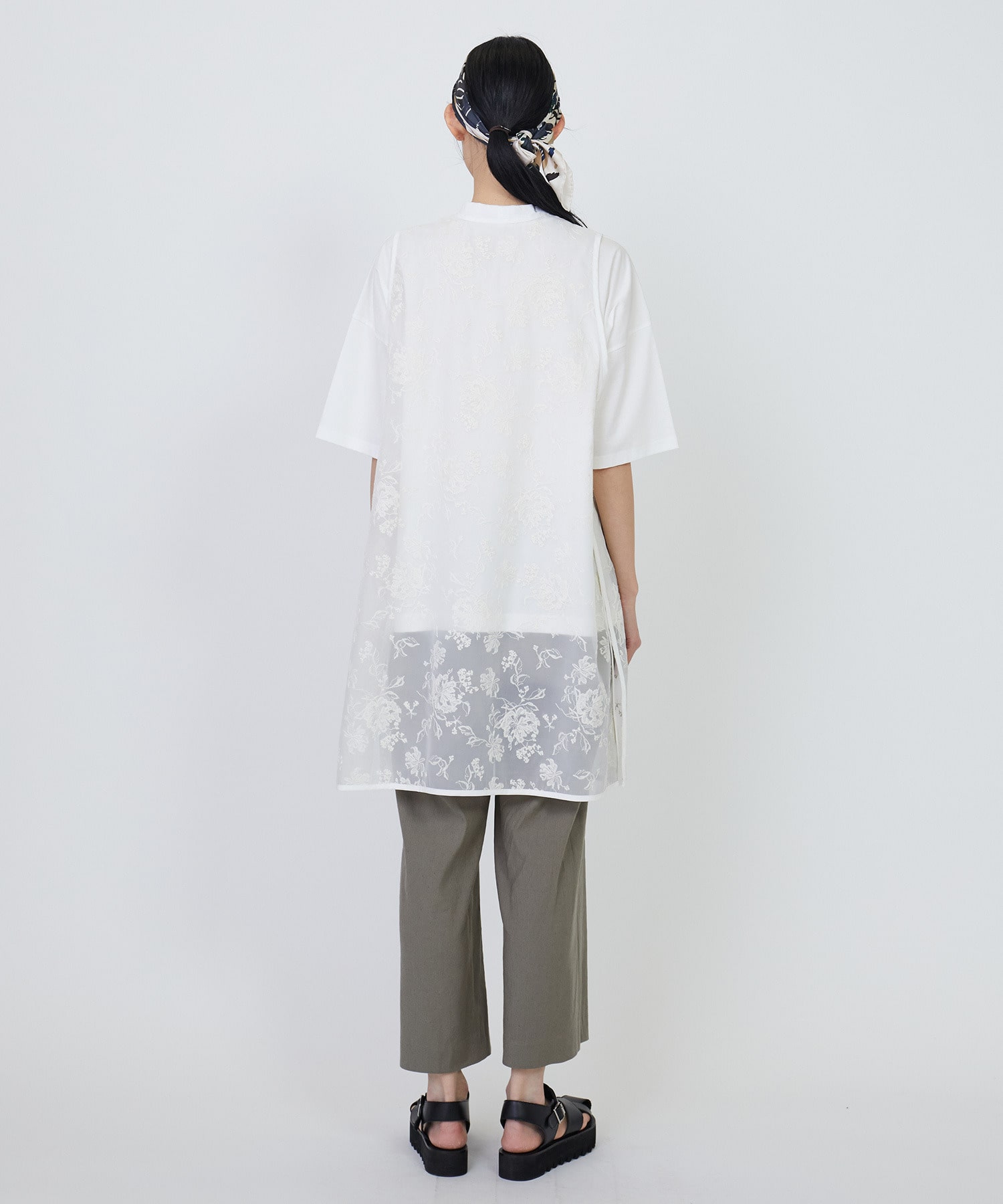 コットン強撚サテンチュニックシャツ