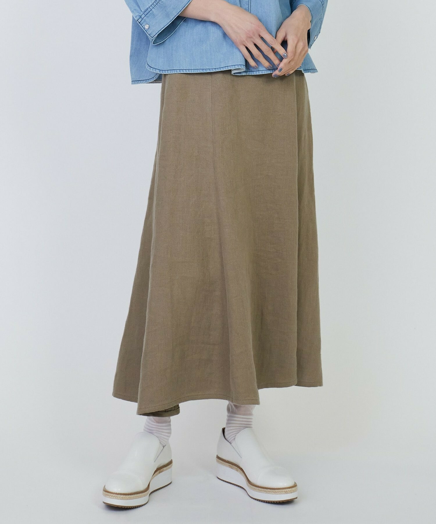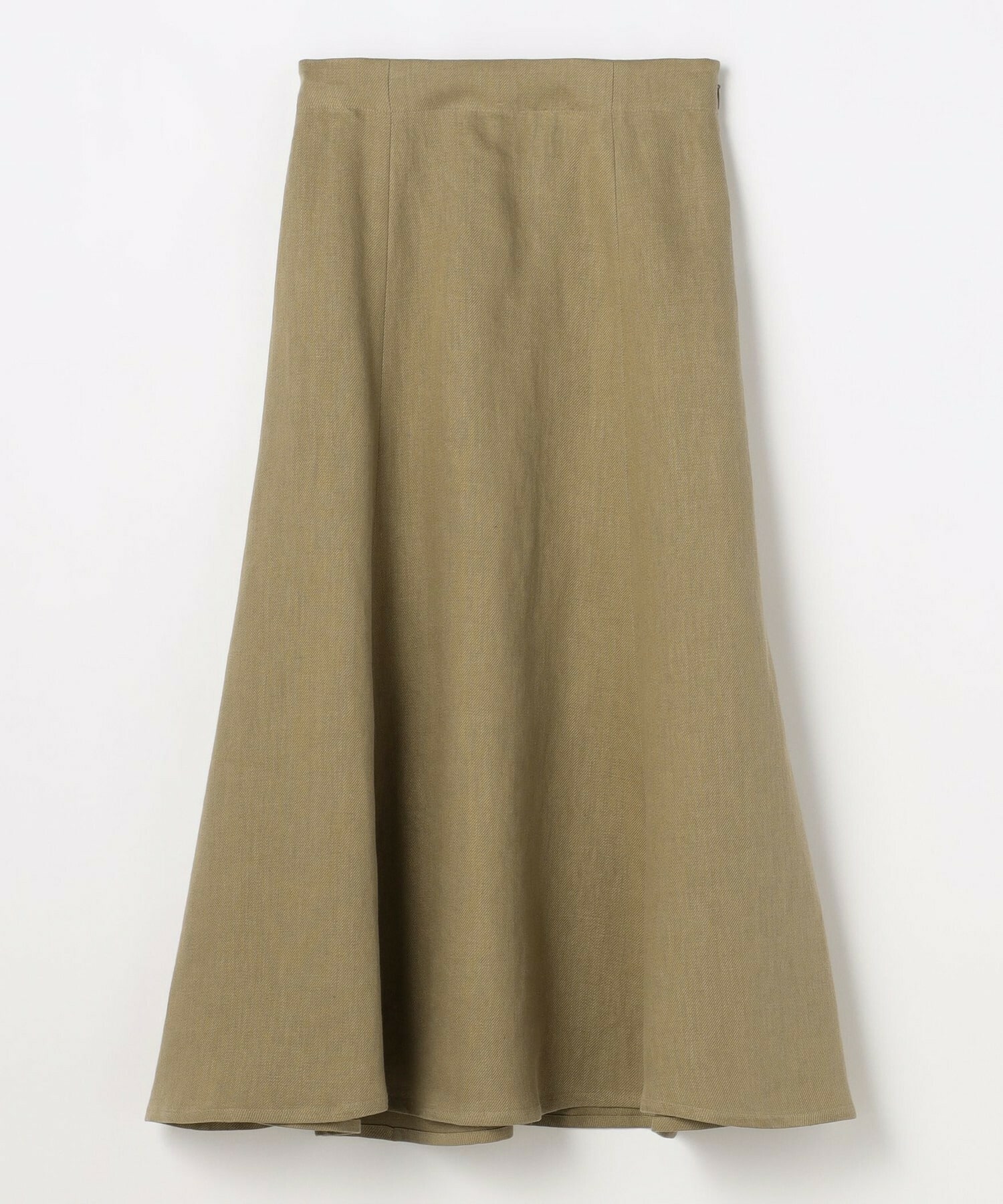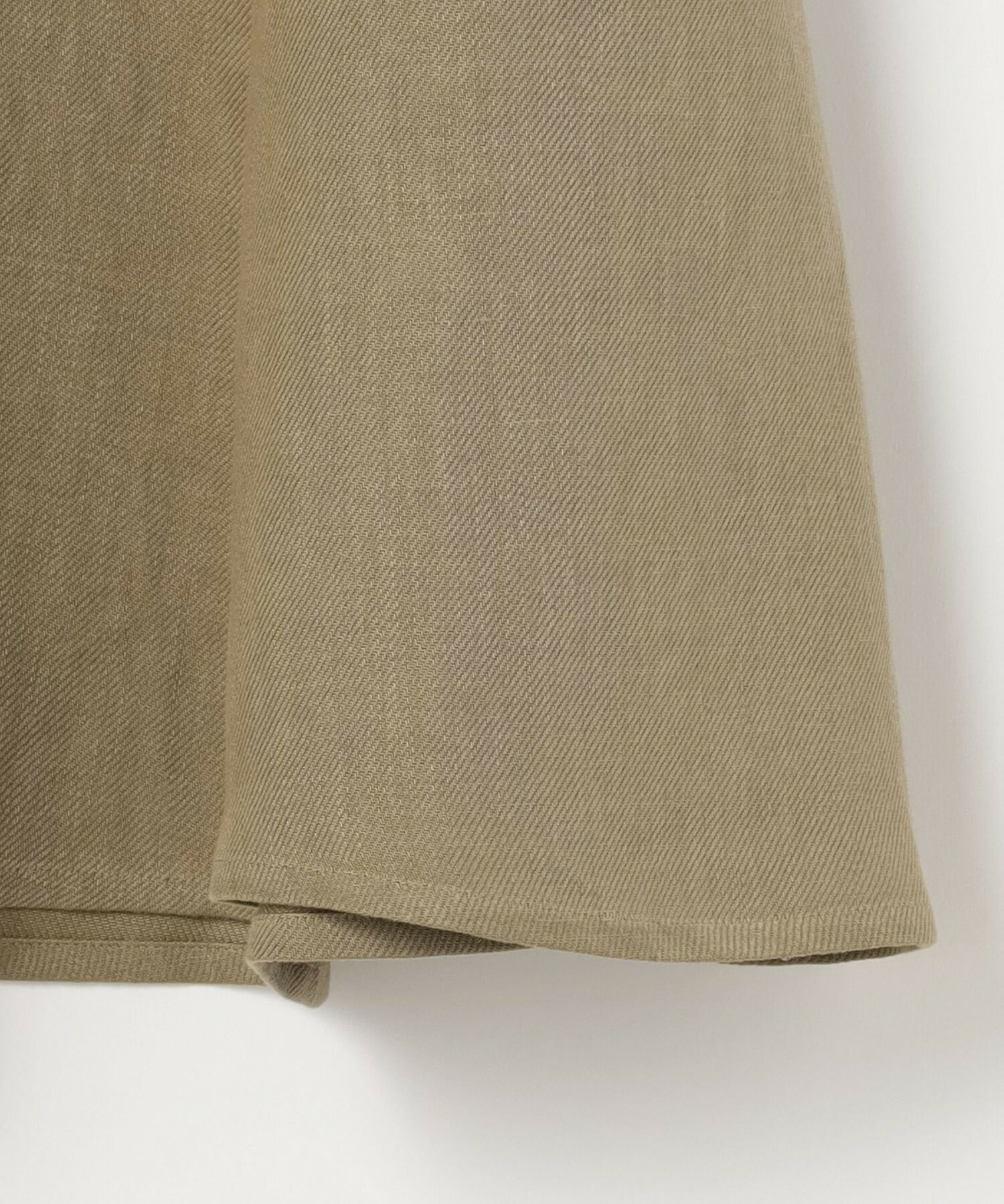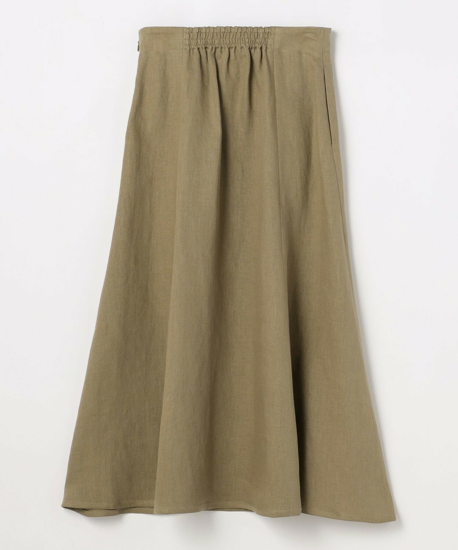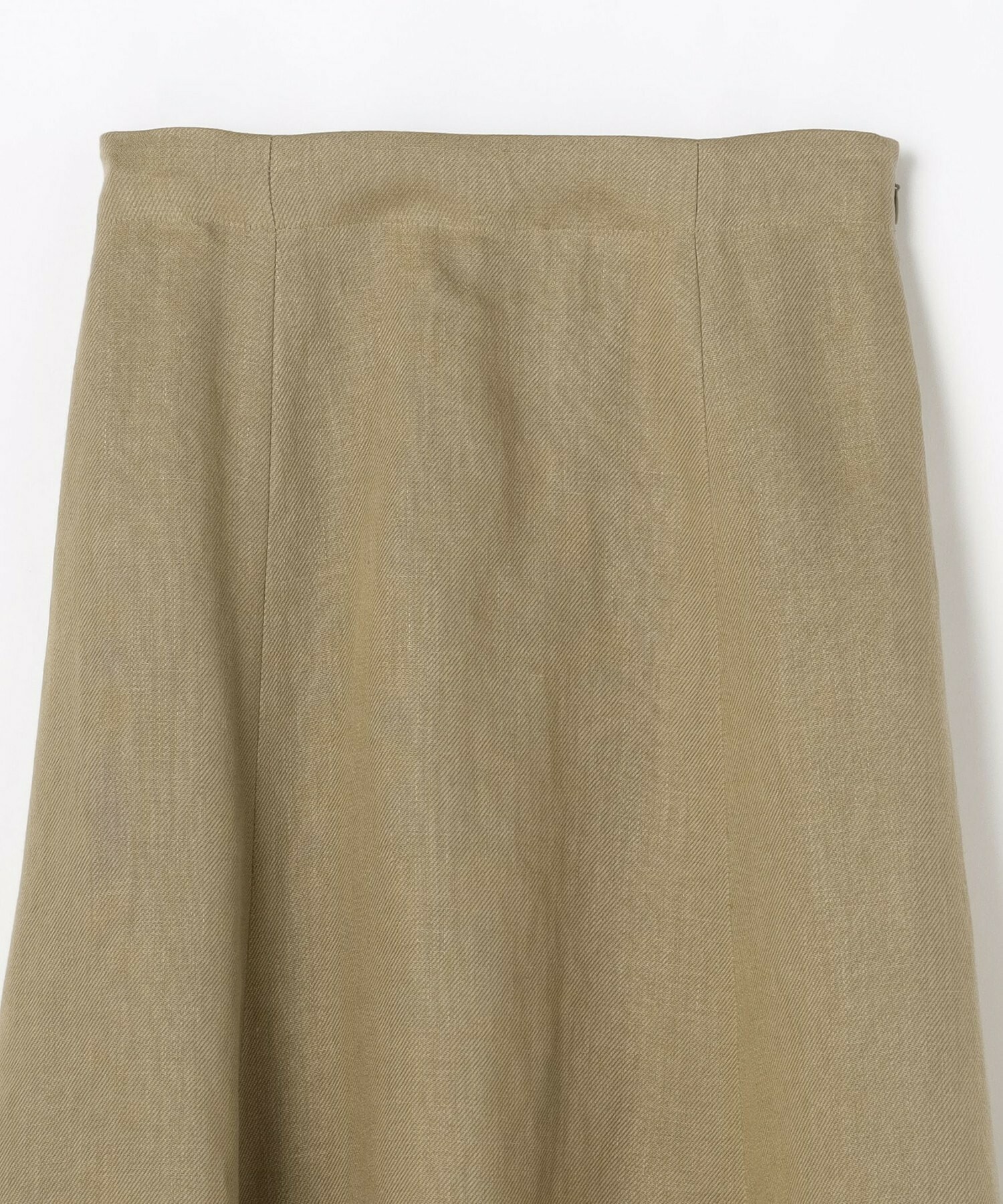 ウエスト周りはすっきりと裾に向けて広がるフレアシルエットがエレガントな一着です。長めの着丈ながらも、ナチュラルな素材感とカラーで軽やかな雰囲気で着用していただけます。同素材のジャケットとのセットアップの着こなしもおすすめです。