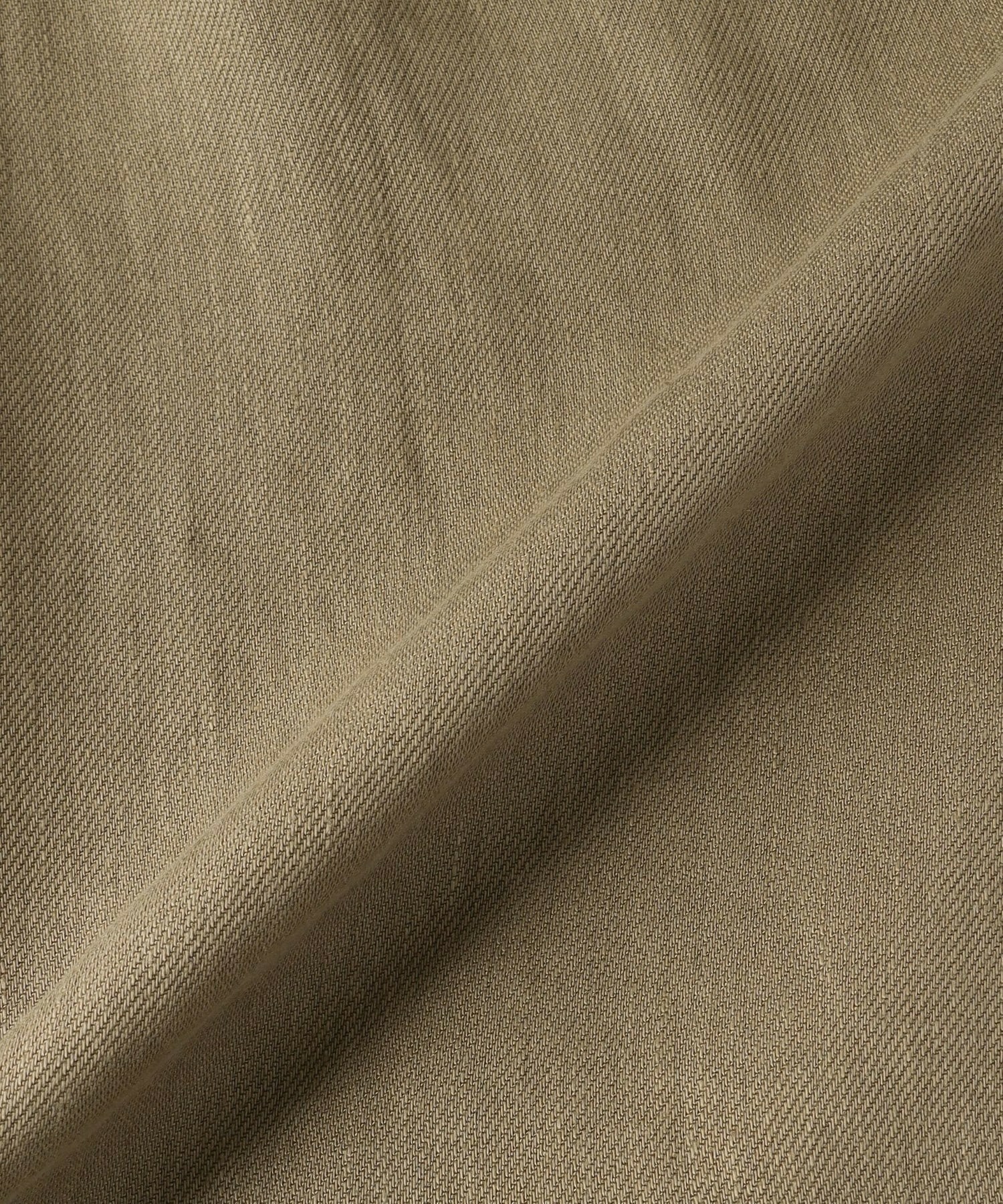 麻は適度なハリが特徴の素材ですが、リネンツイルは製品洗いをしたような味のある風合いを表現し、 生地を揉み返し 糸に膨らみ感を与える事により、ソフトでふっくらとした風合に仕上げました。麻本来の光沢もあり、上質な大人カジュアル素材です。