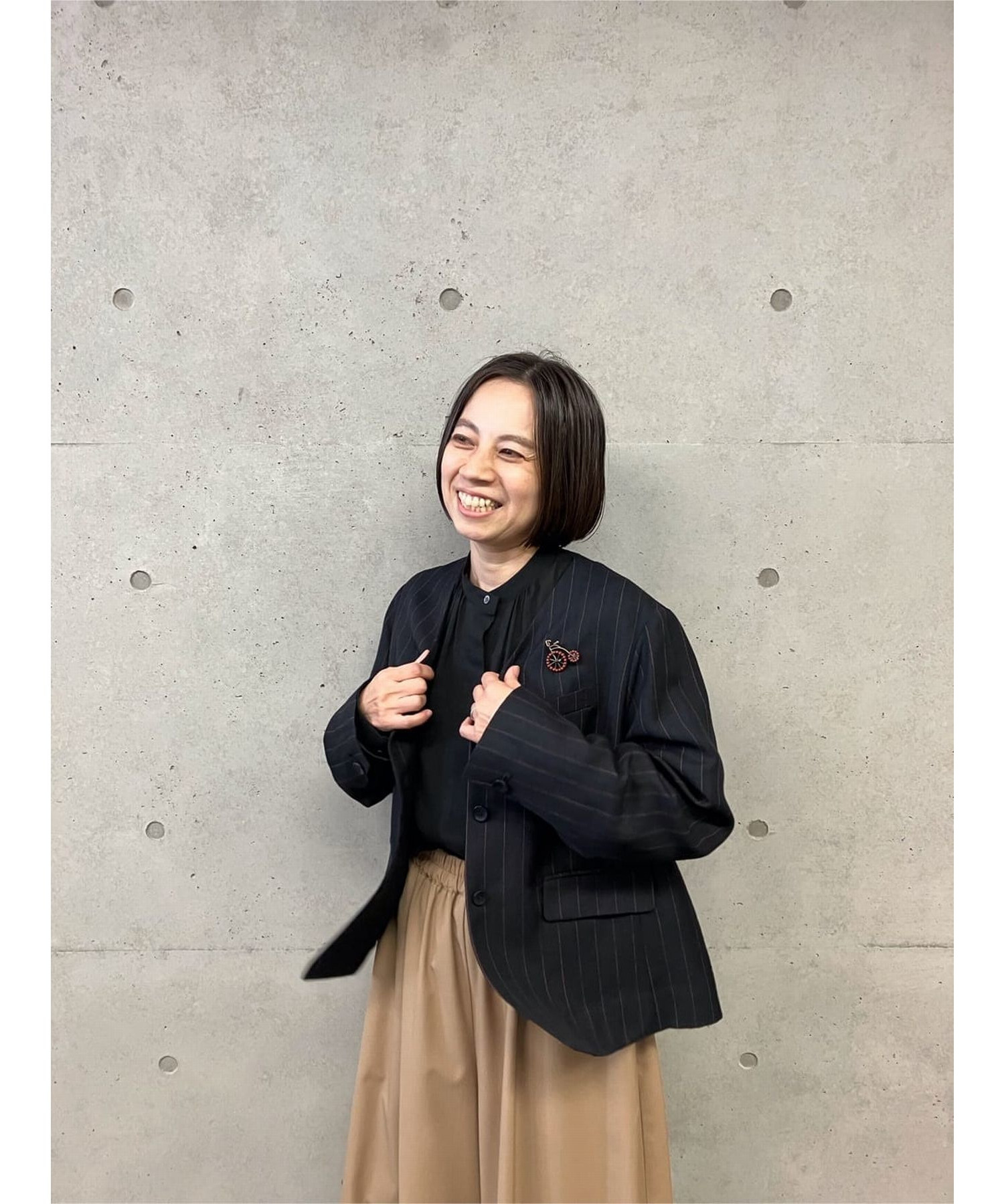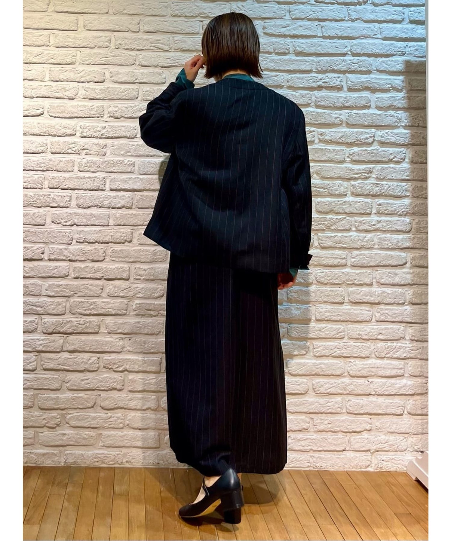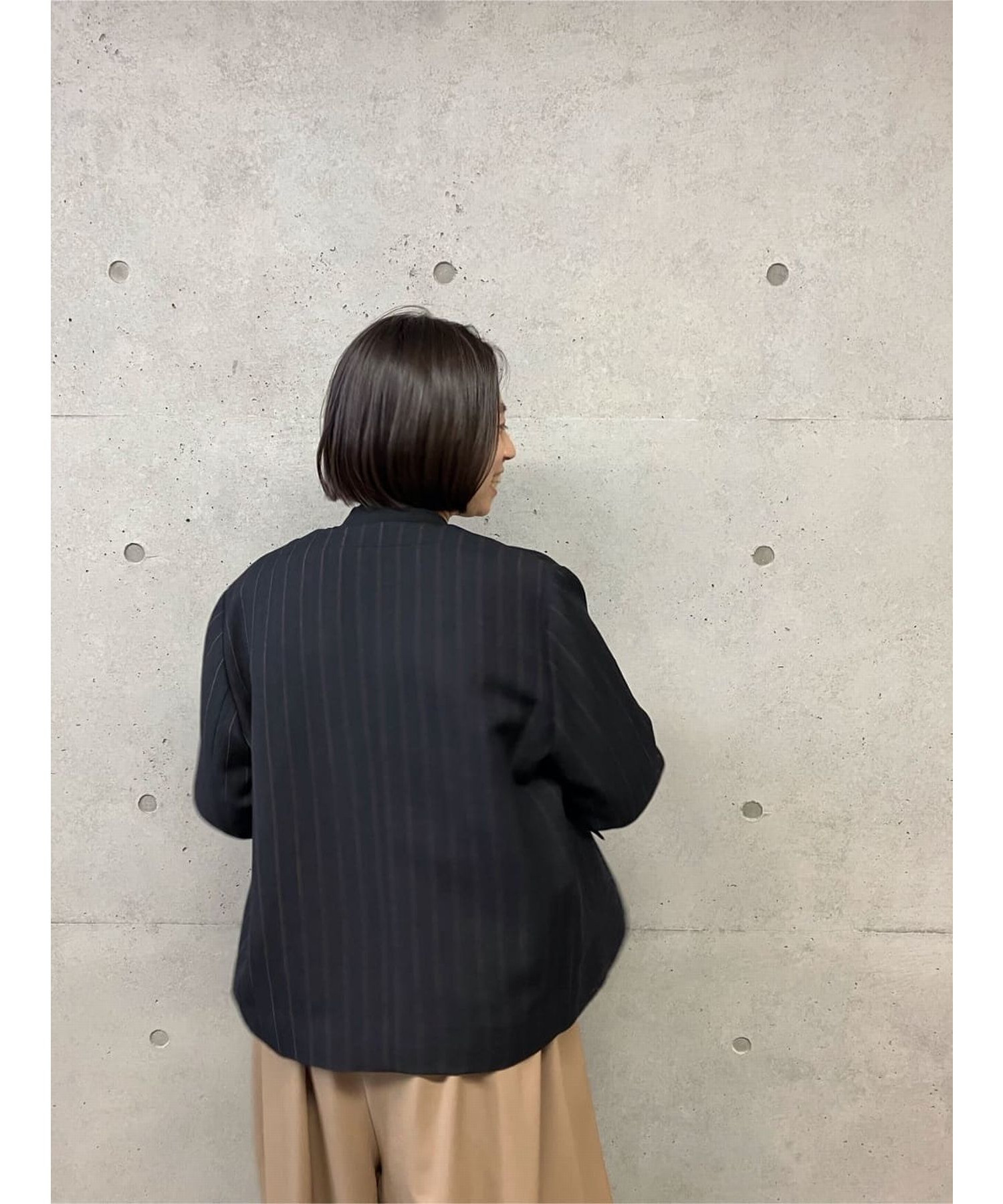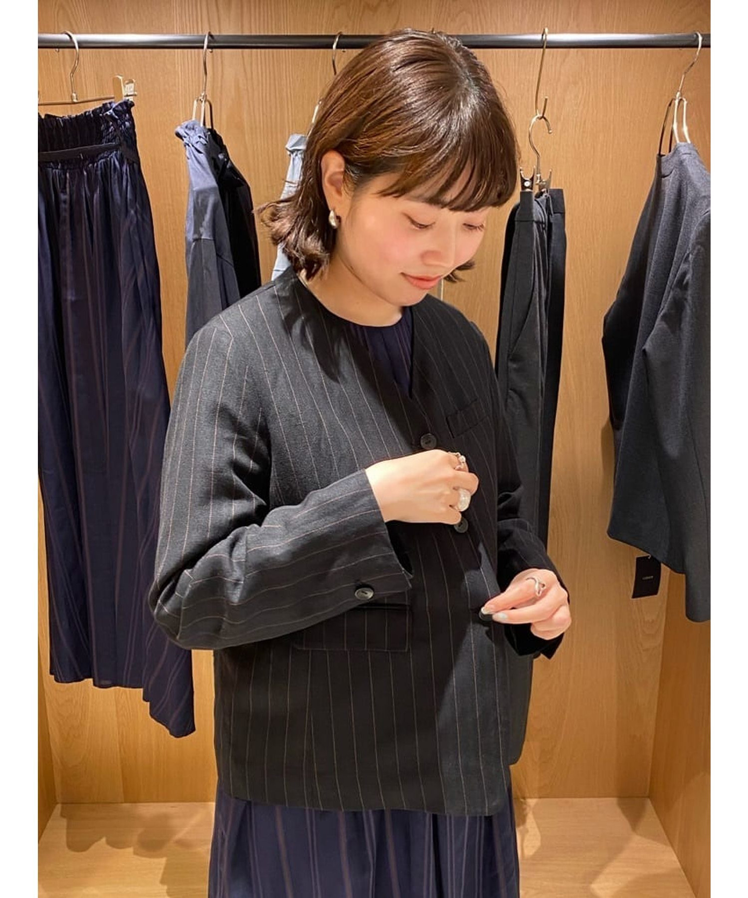 ウールリネンヘリンボーンストライプノーカラージャケット