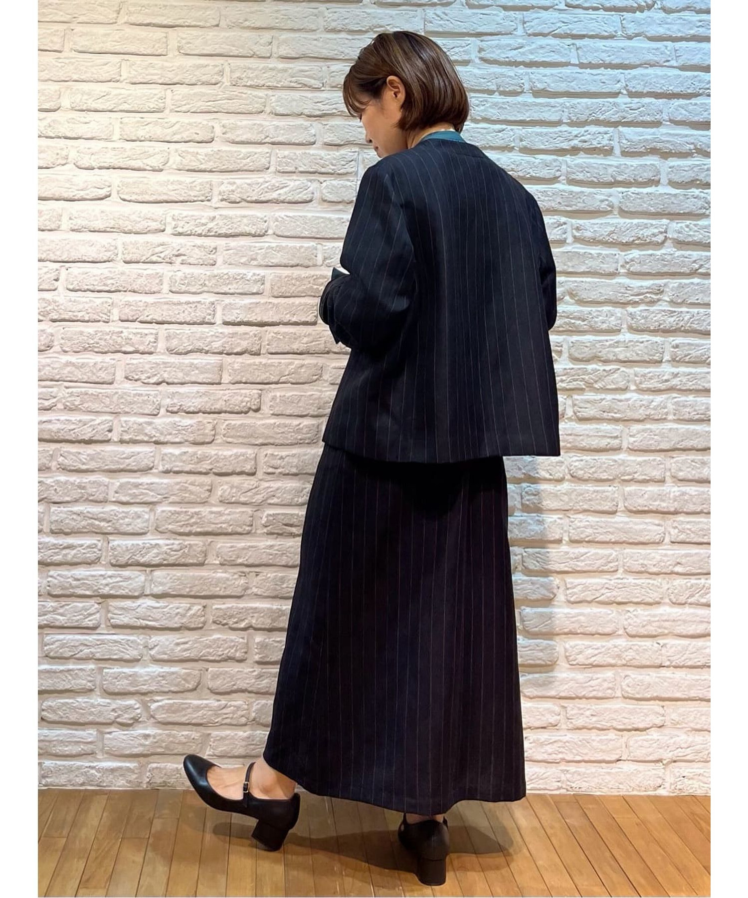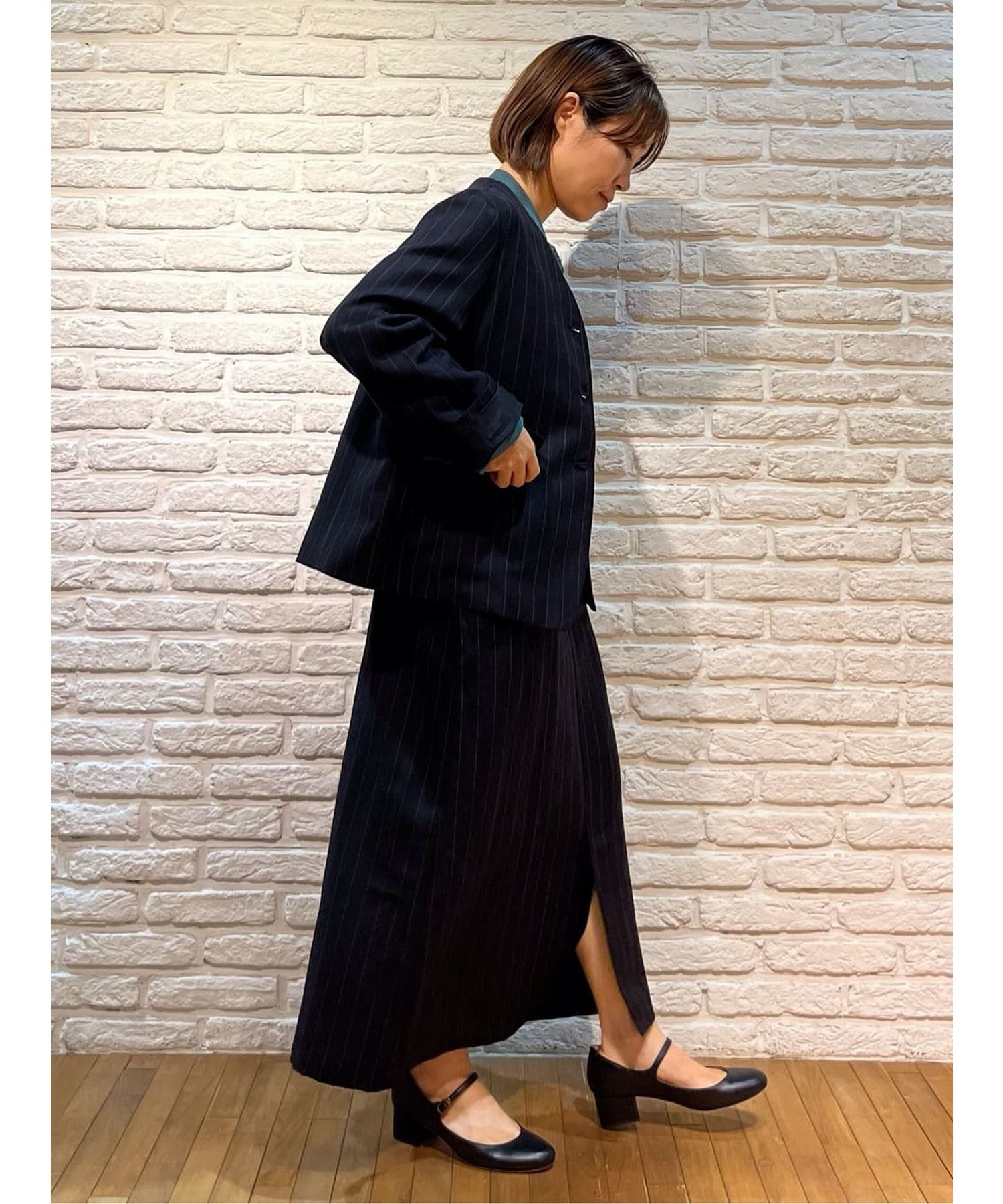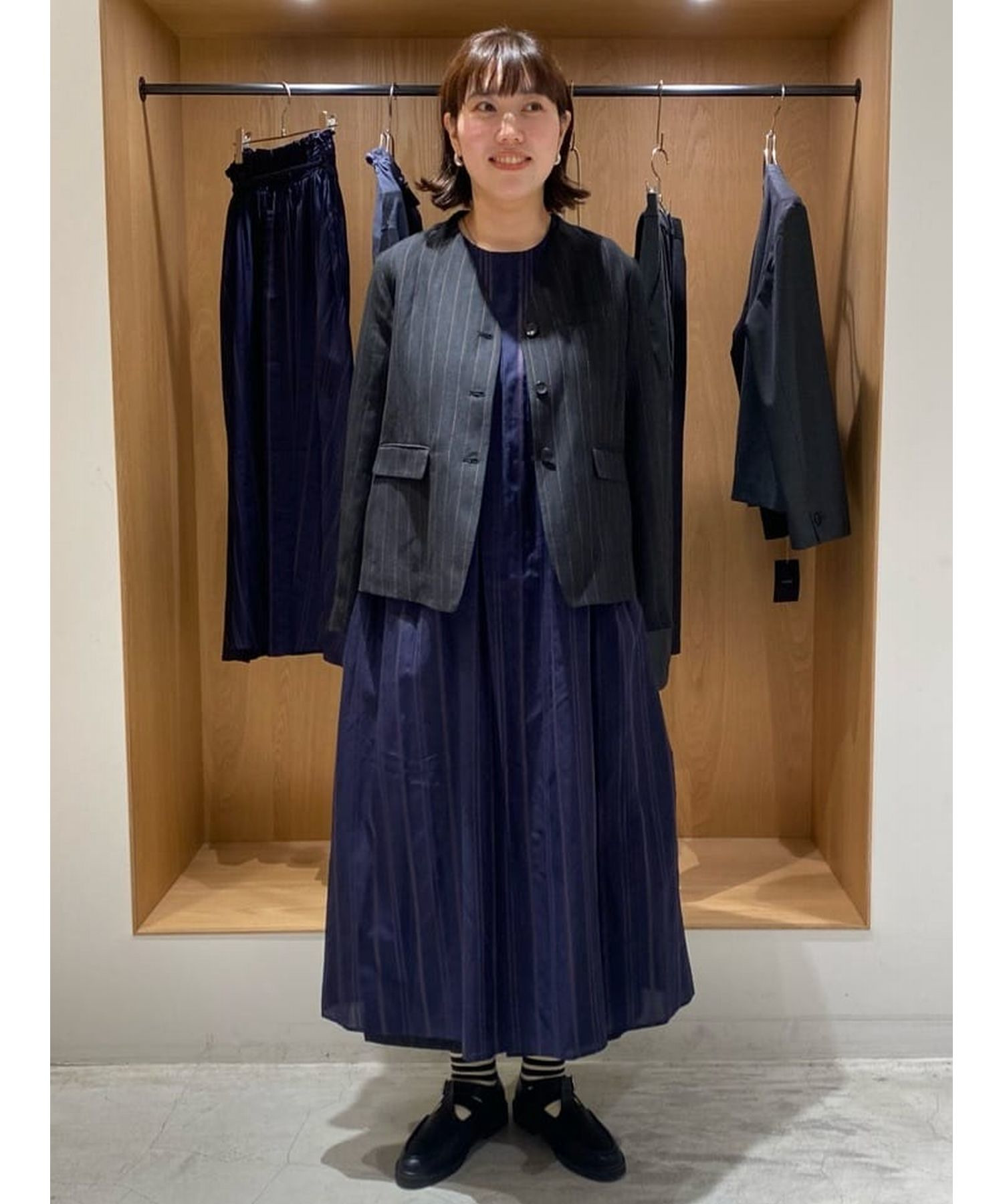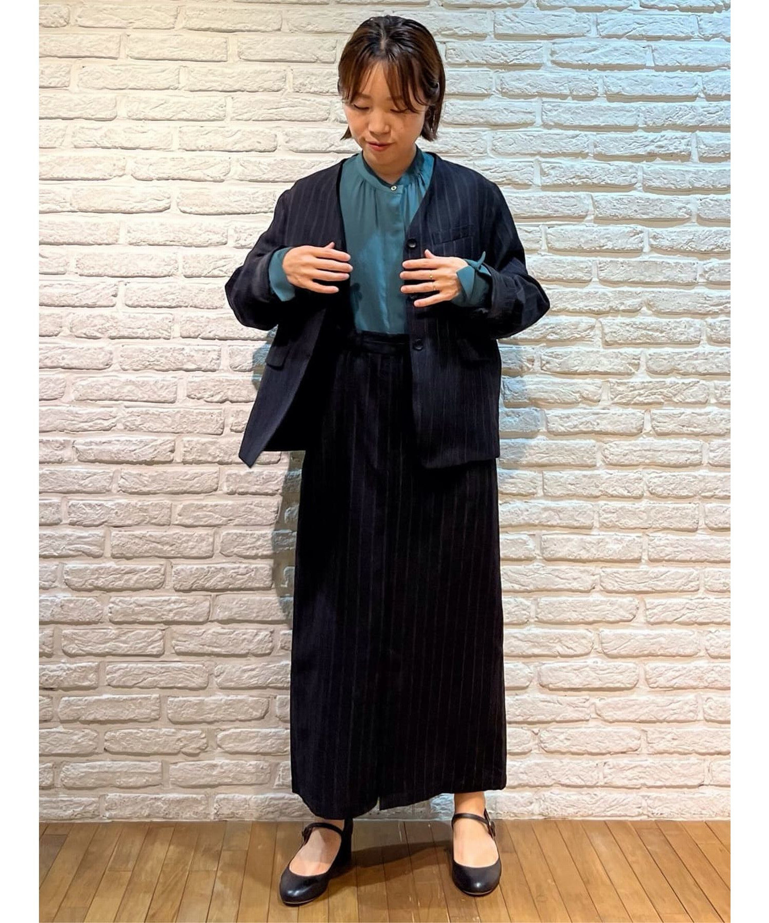 ウールリネンヘリンボーンストライプノーカラージャケット