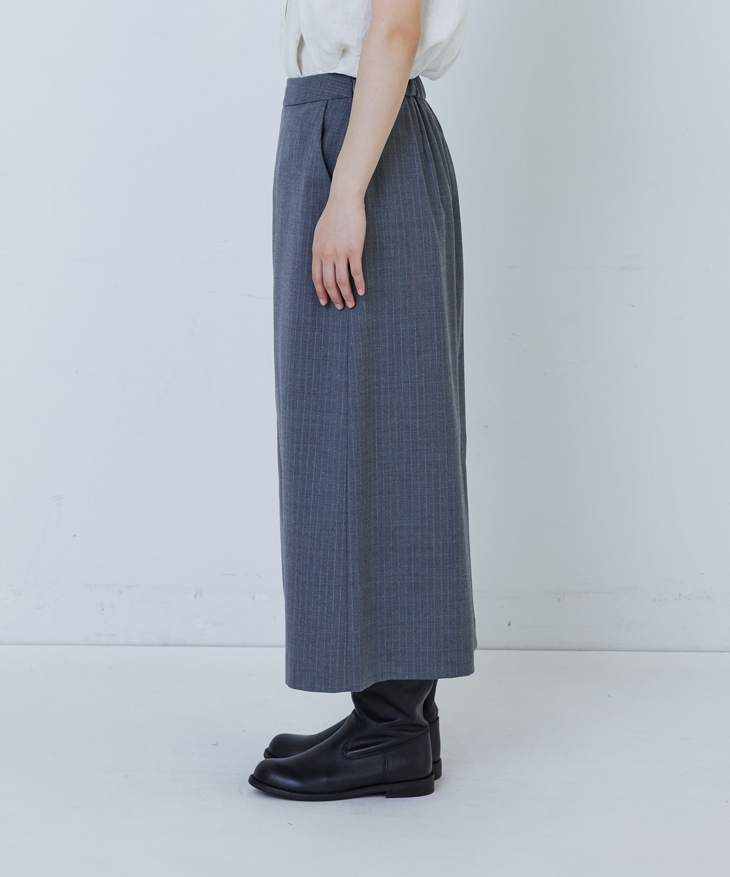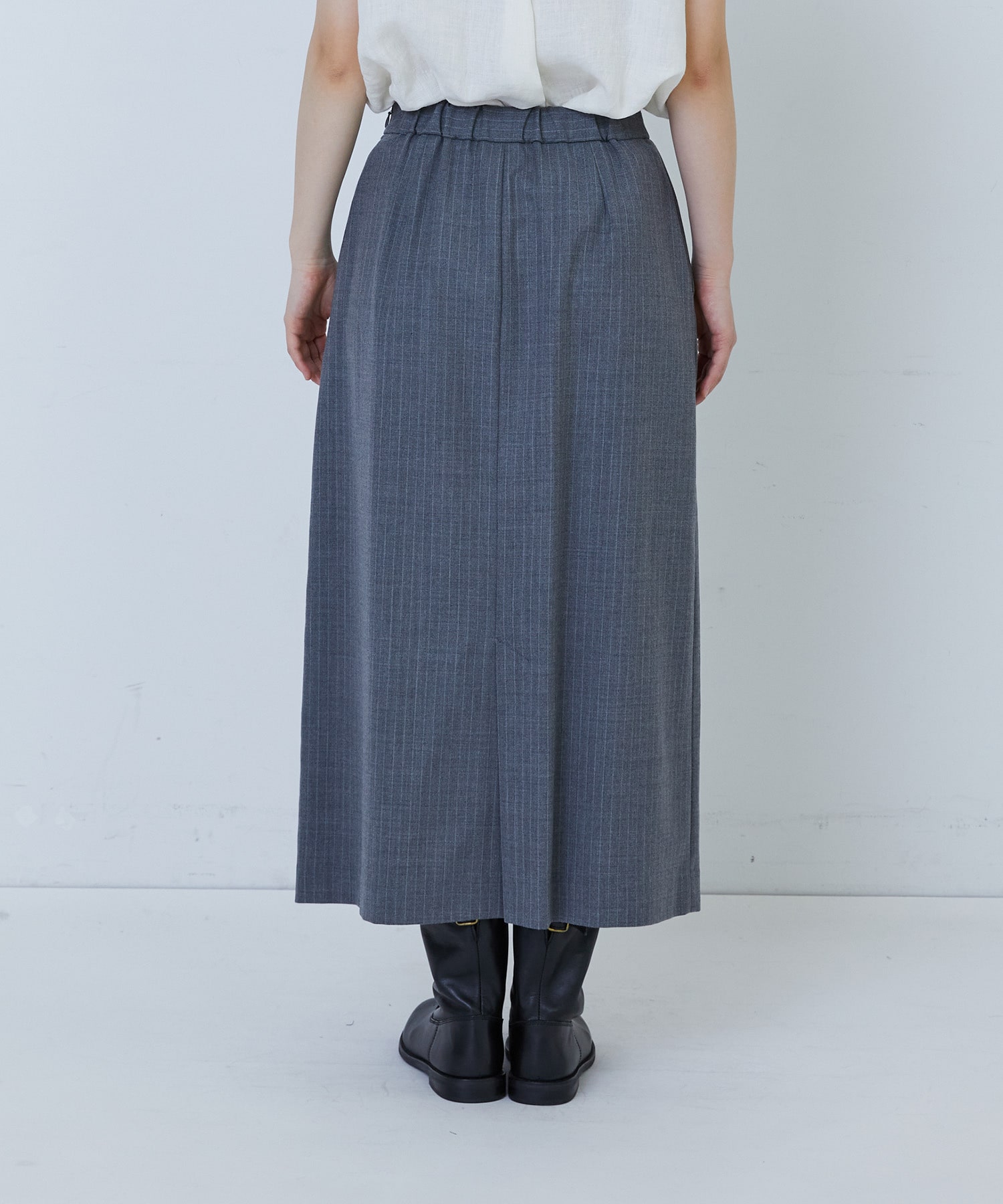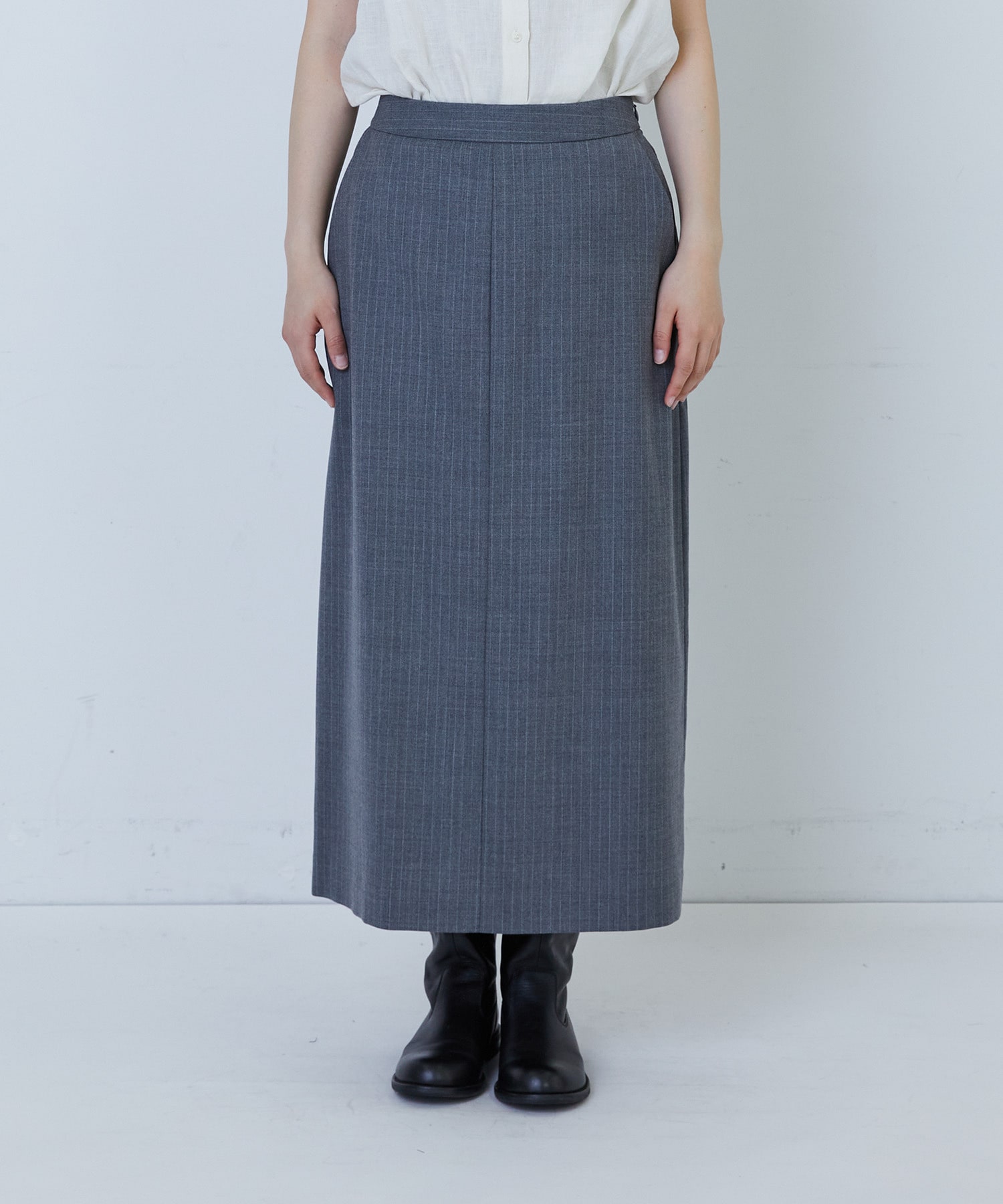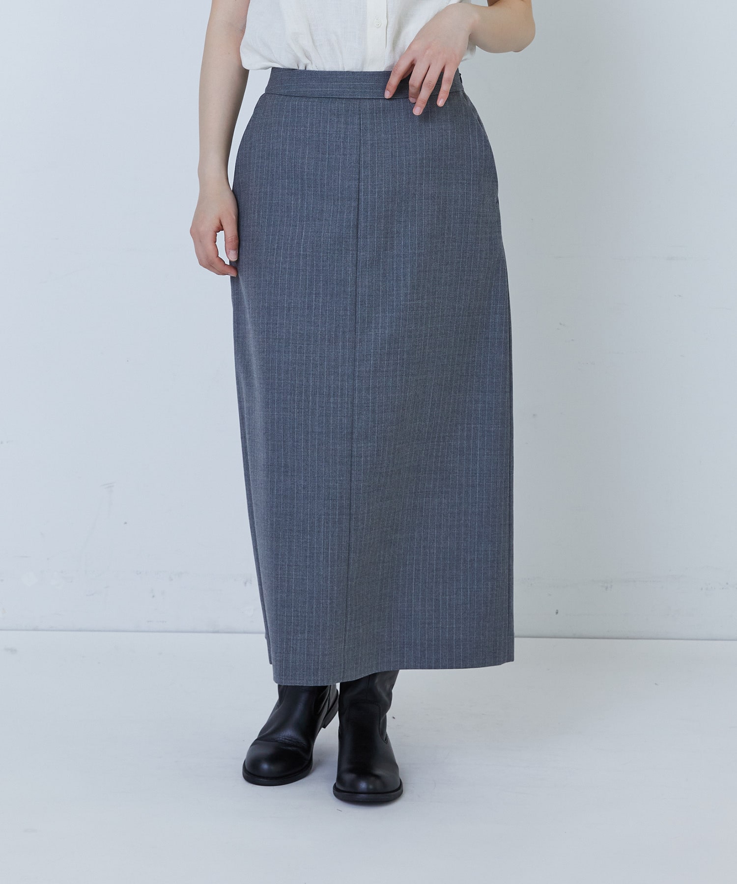 縦長効果のあるナロースカート。