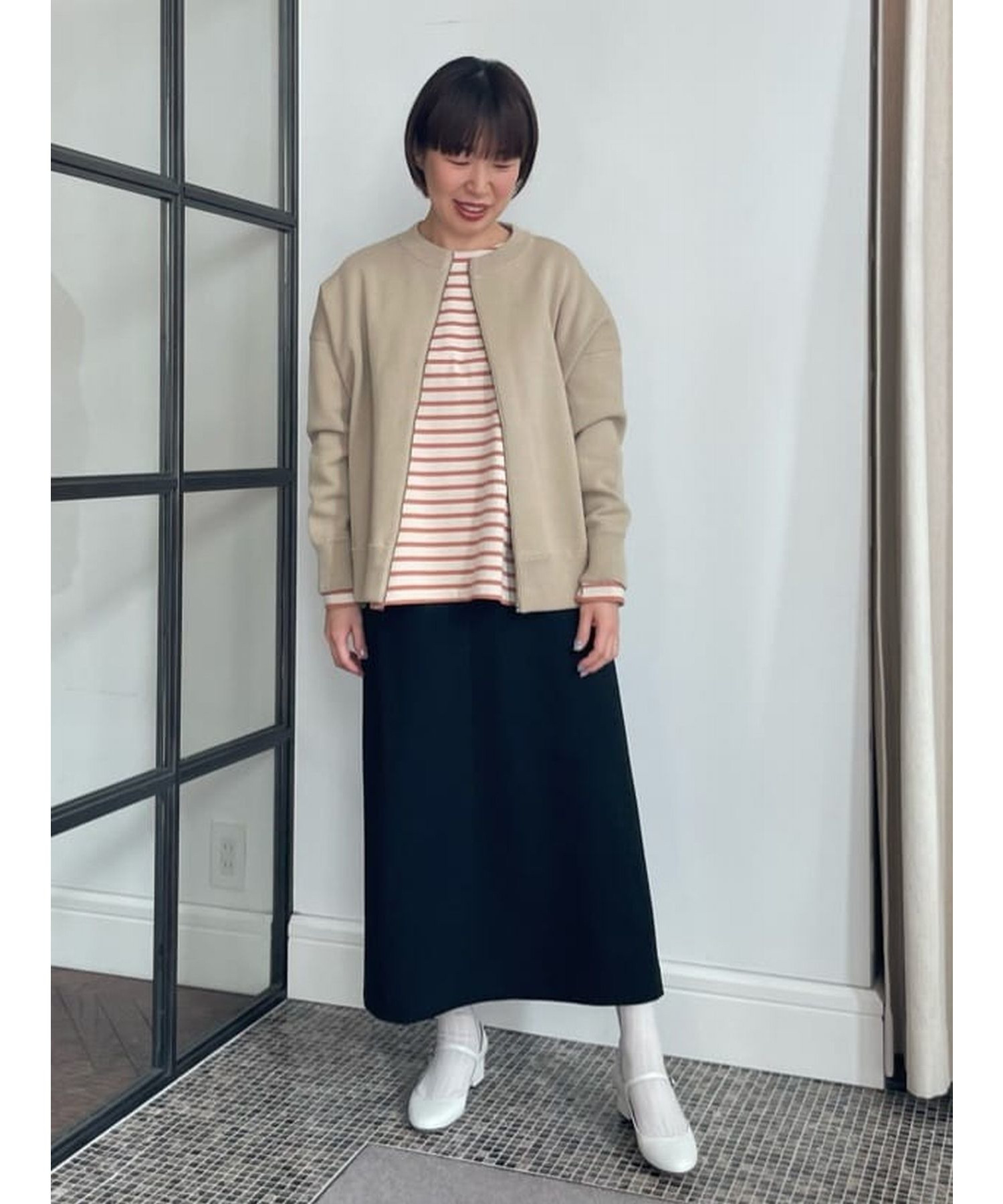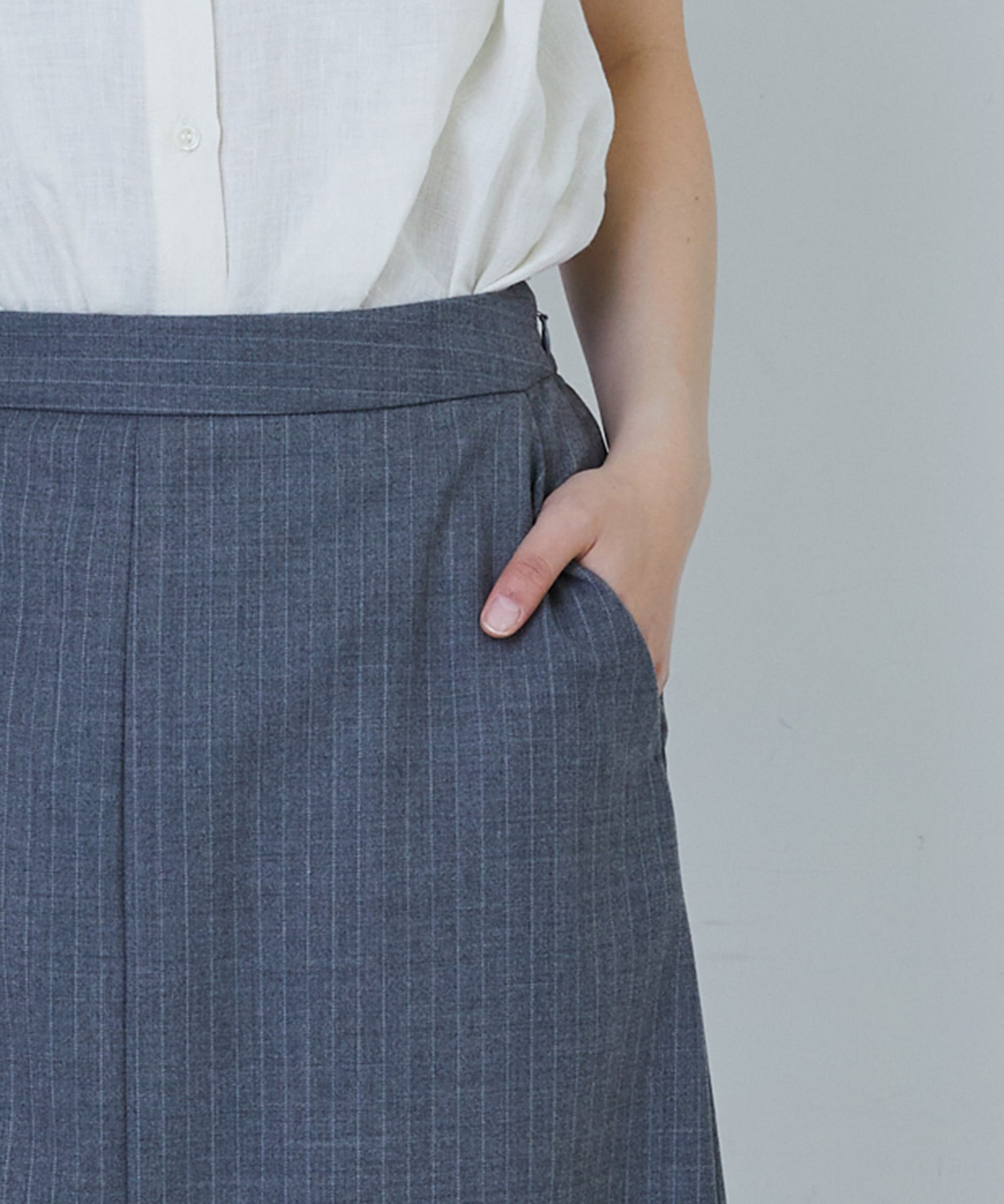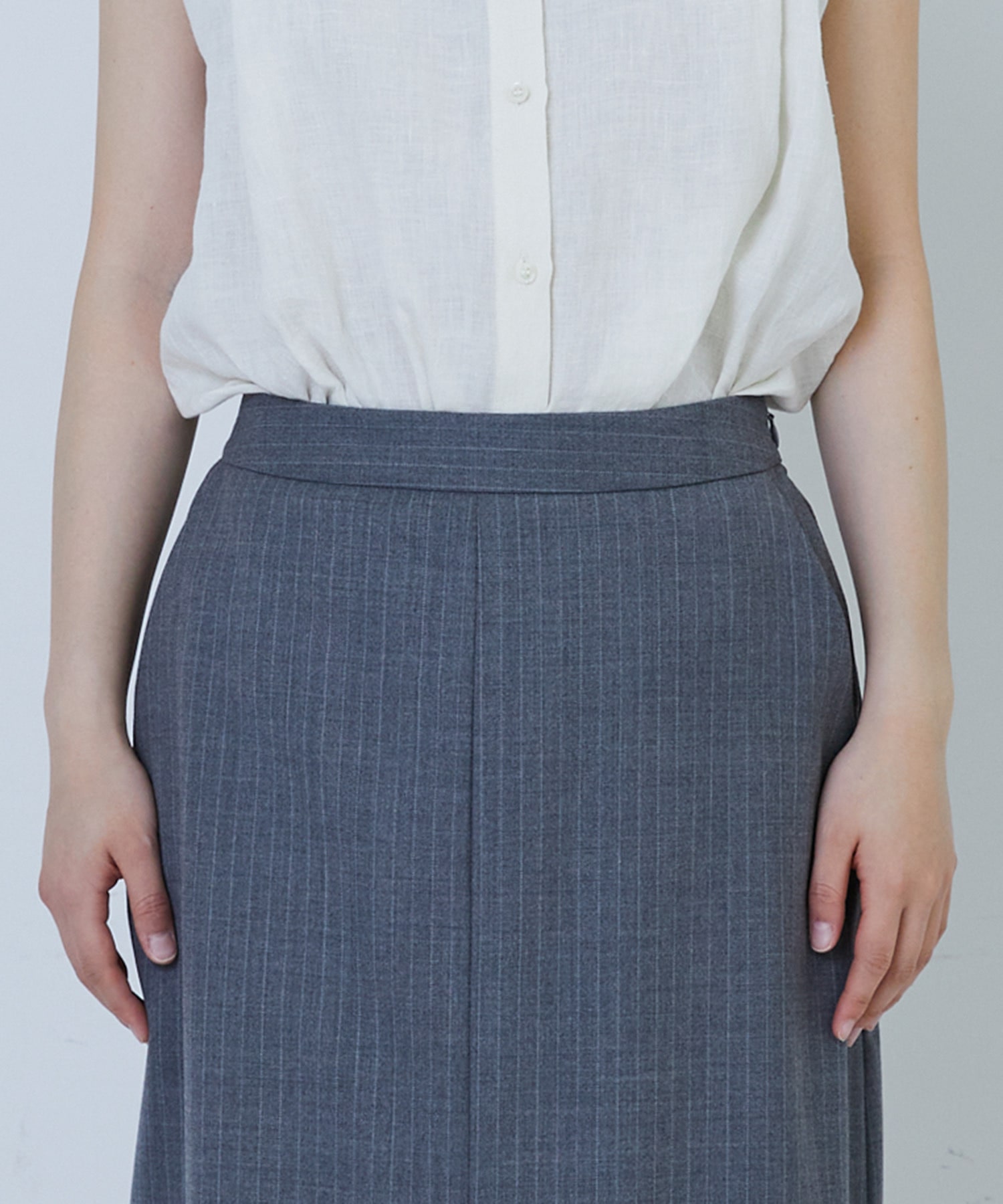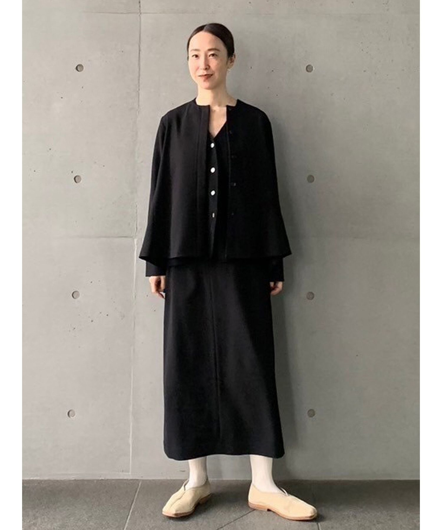 縦長効果のあるナロースカート。