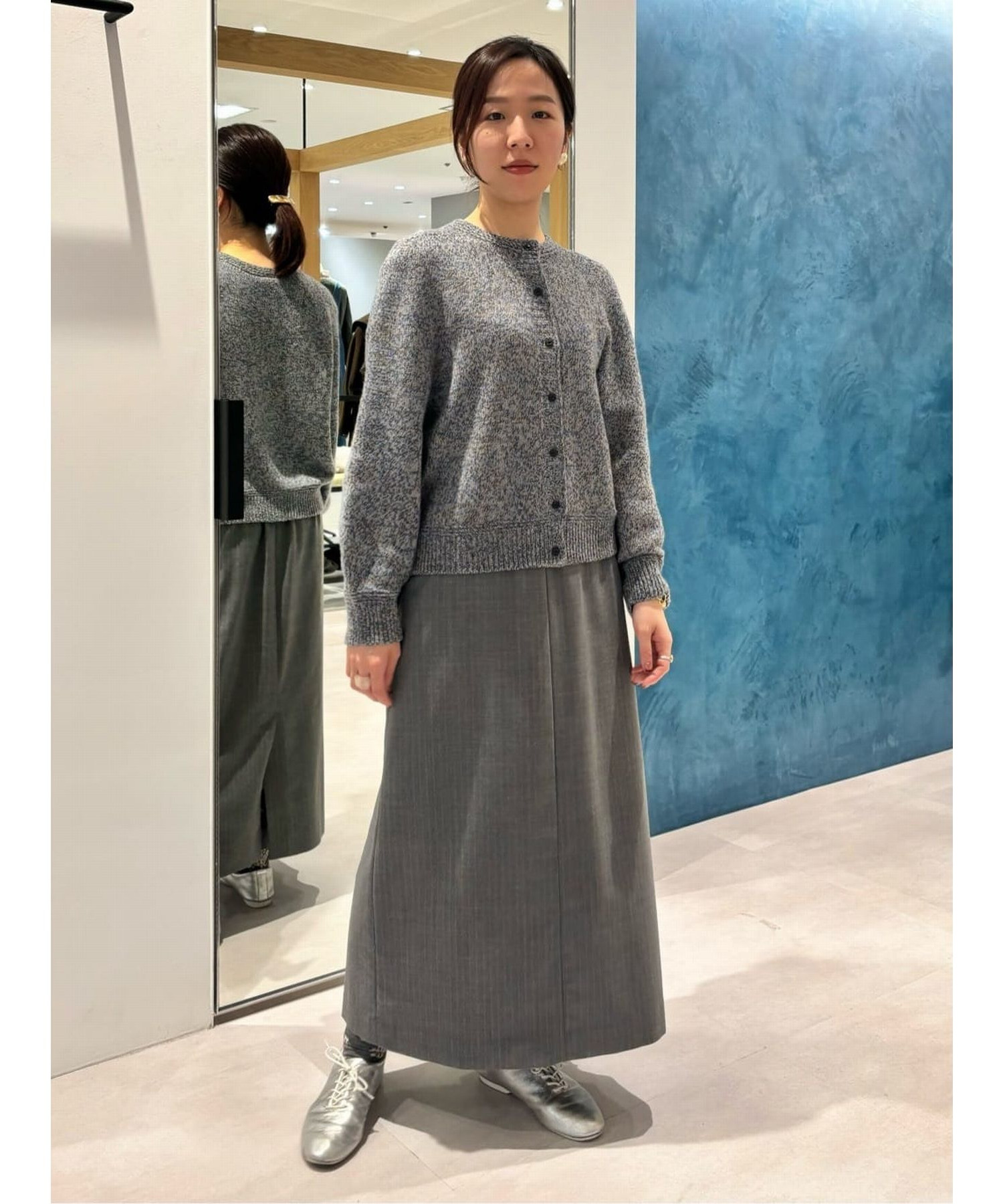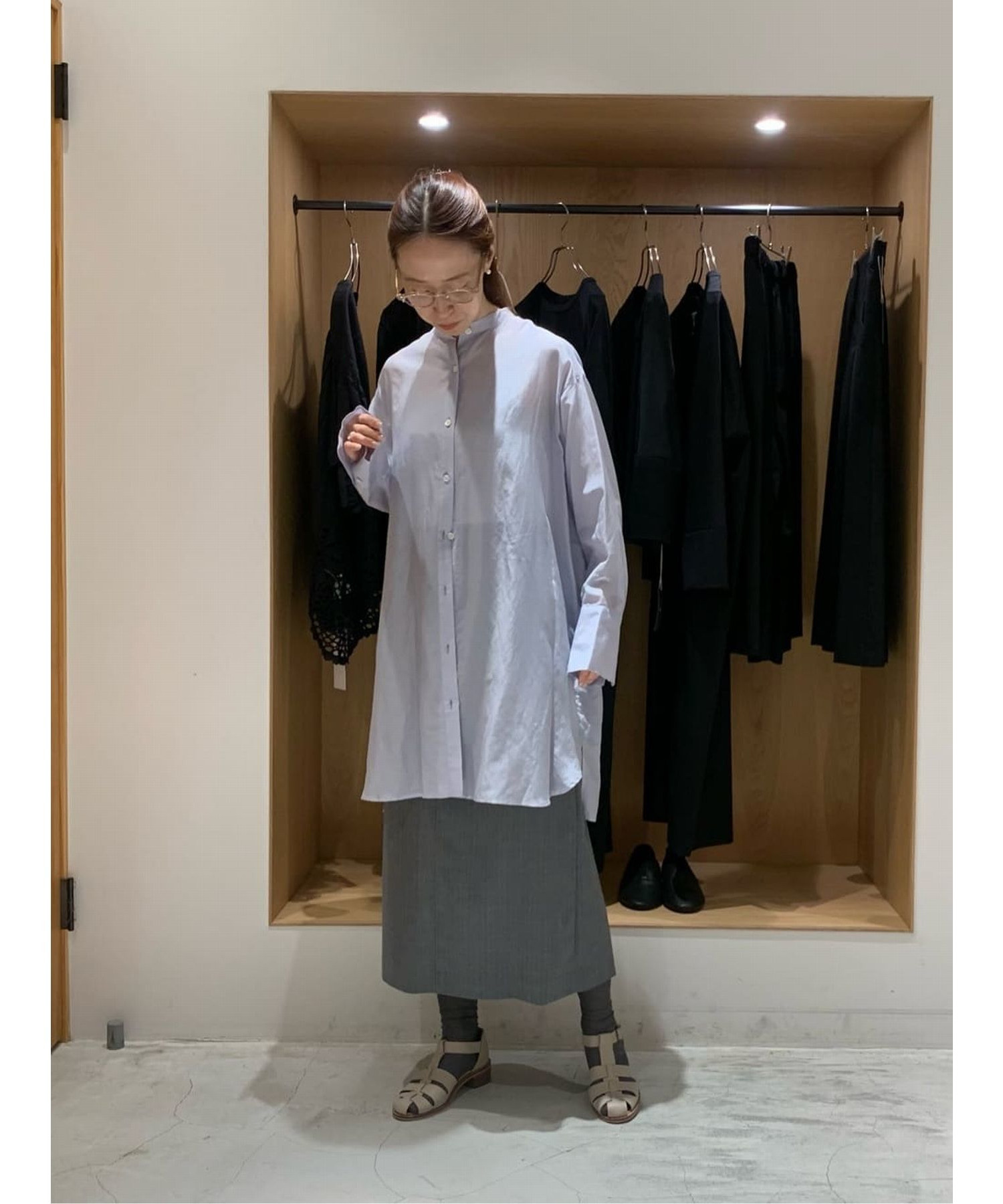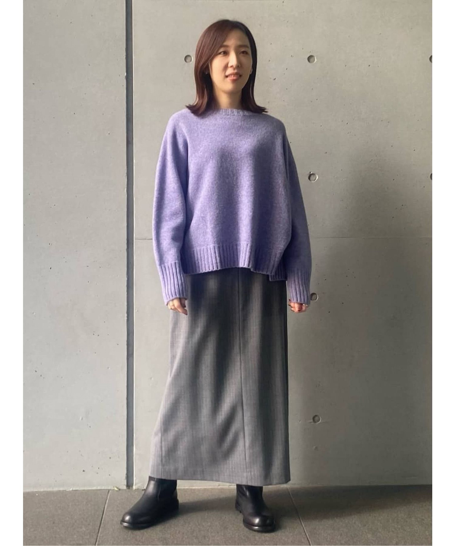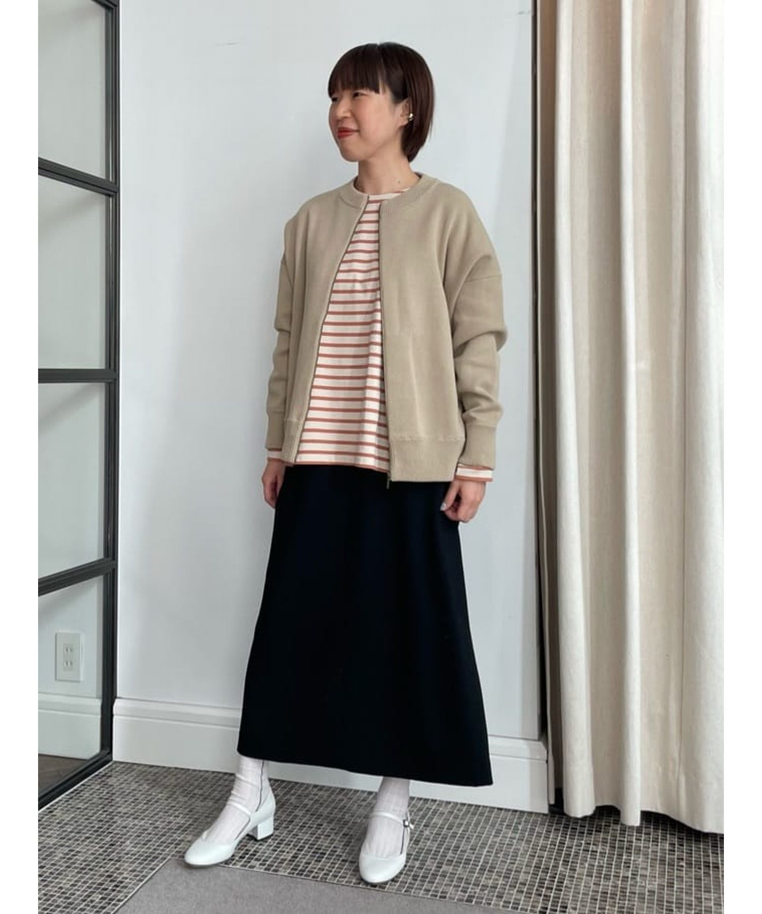 縦長効果のあるナロースカート。