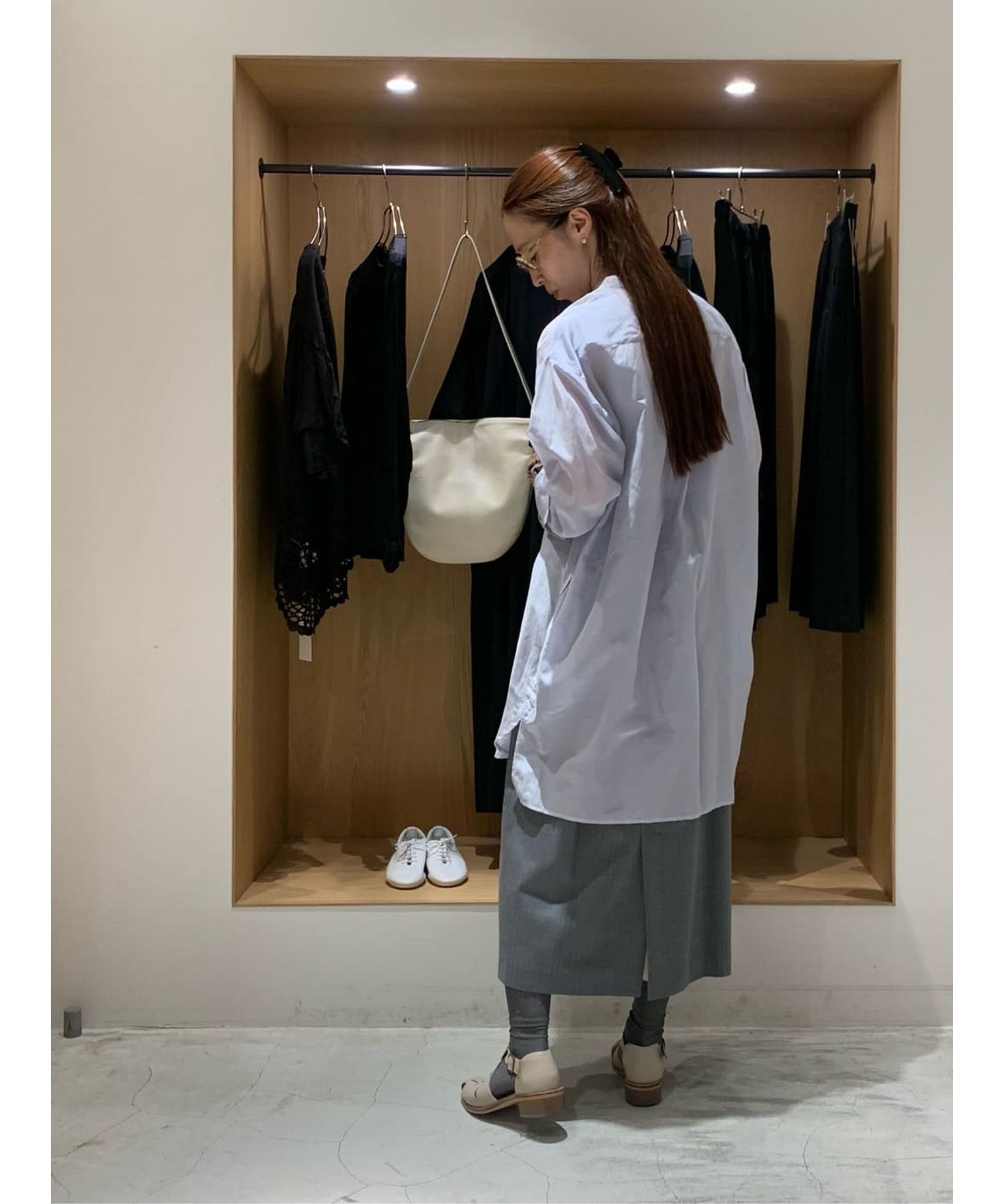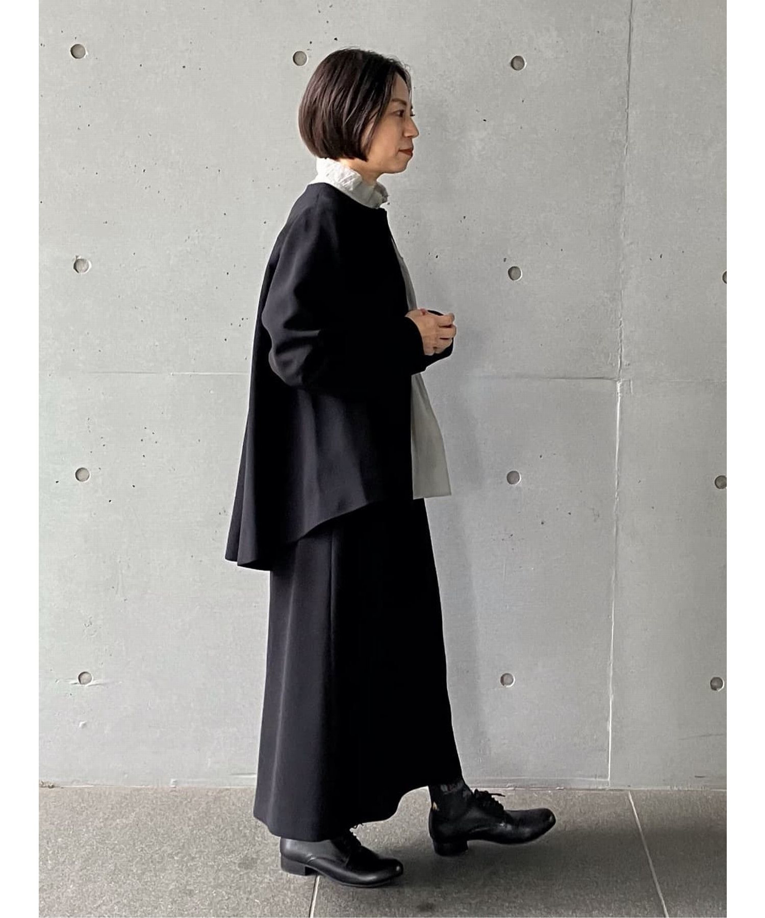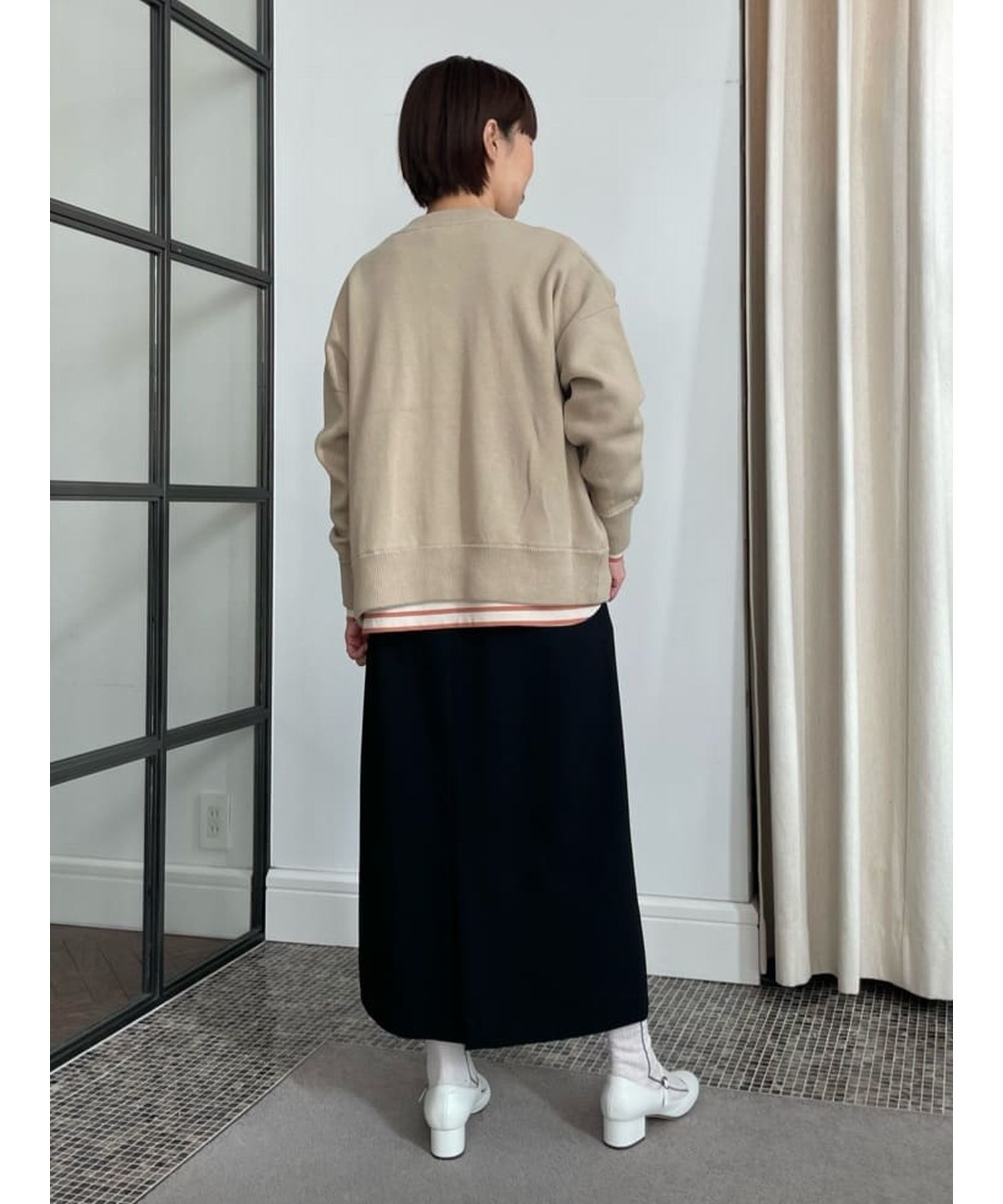 後ろ裾にはスリット入りで足捌きが良く。オンシーンはもちろん、スニーカーと合わせてカジュアルダウンした着こなしもおすすめ。