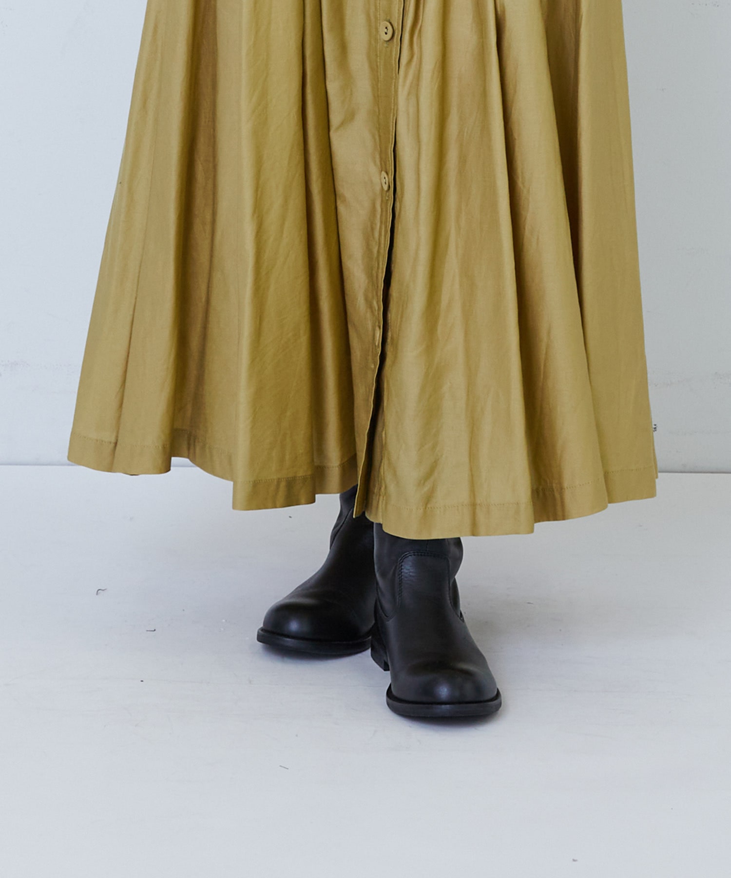 フロントはコートのような開閉が出来る凝ったデザイン。後ろは紐付きのゴム仕様で履き心地の良い仕立てです。