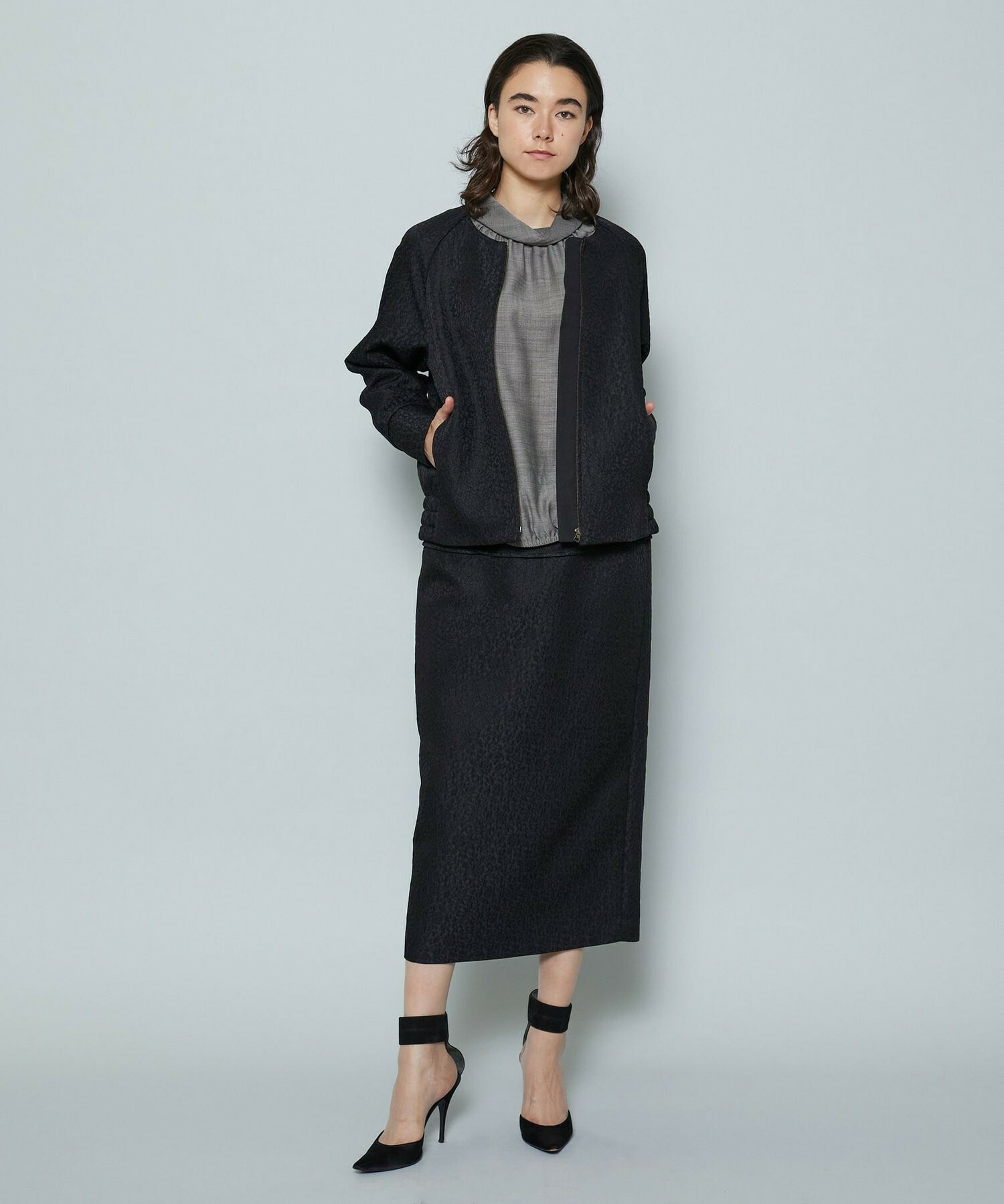 同素材のブルゾン、ドライビエラのブラウスと合わせて頂くと完璧なスタイリングが完成します。