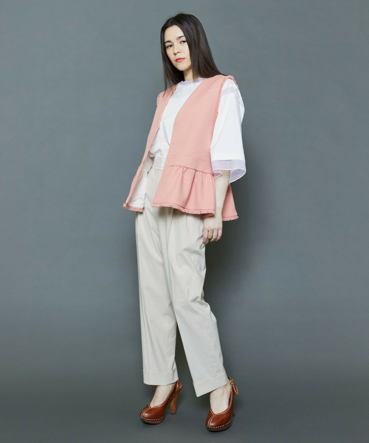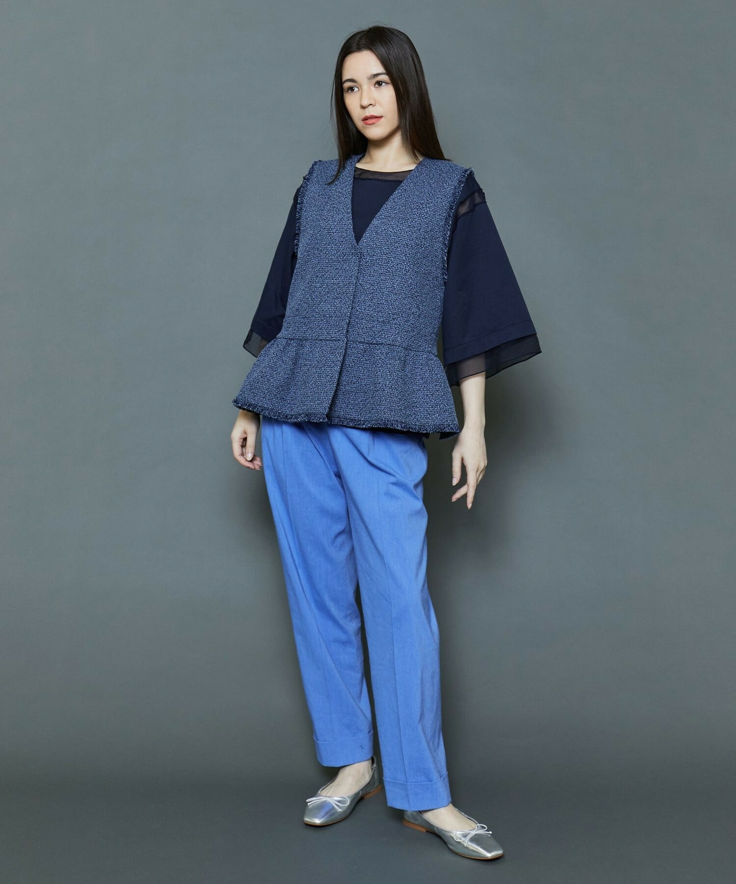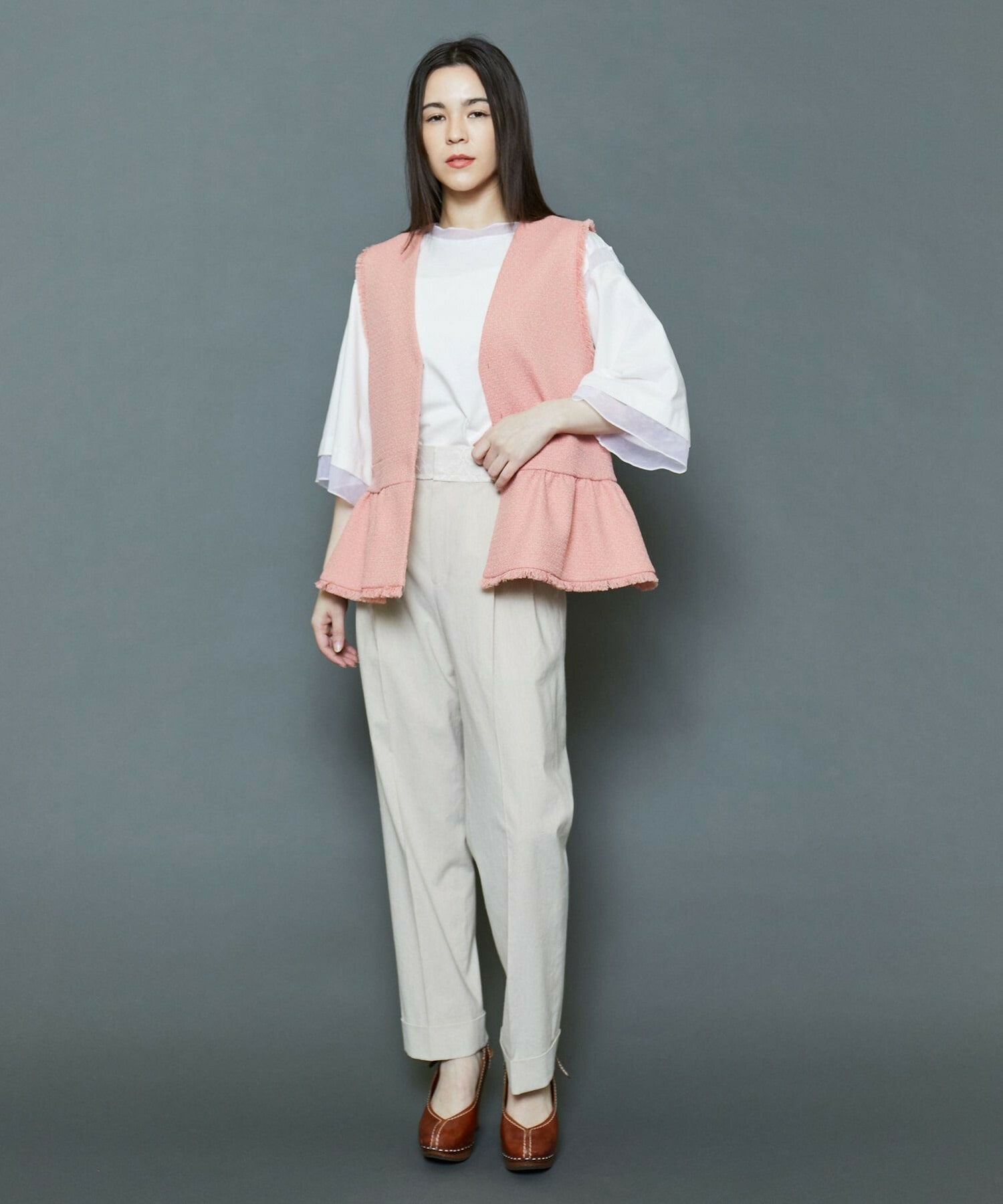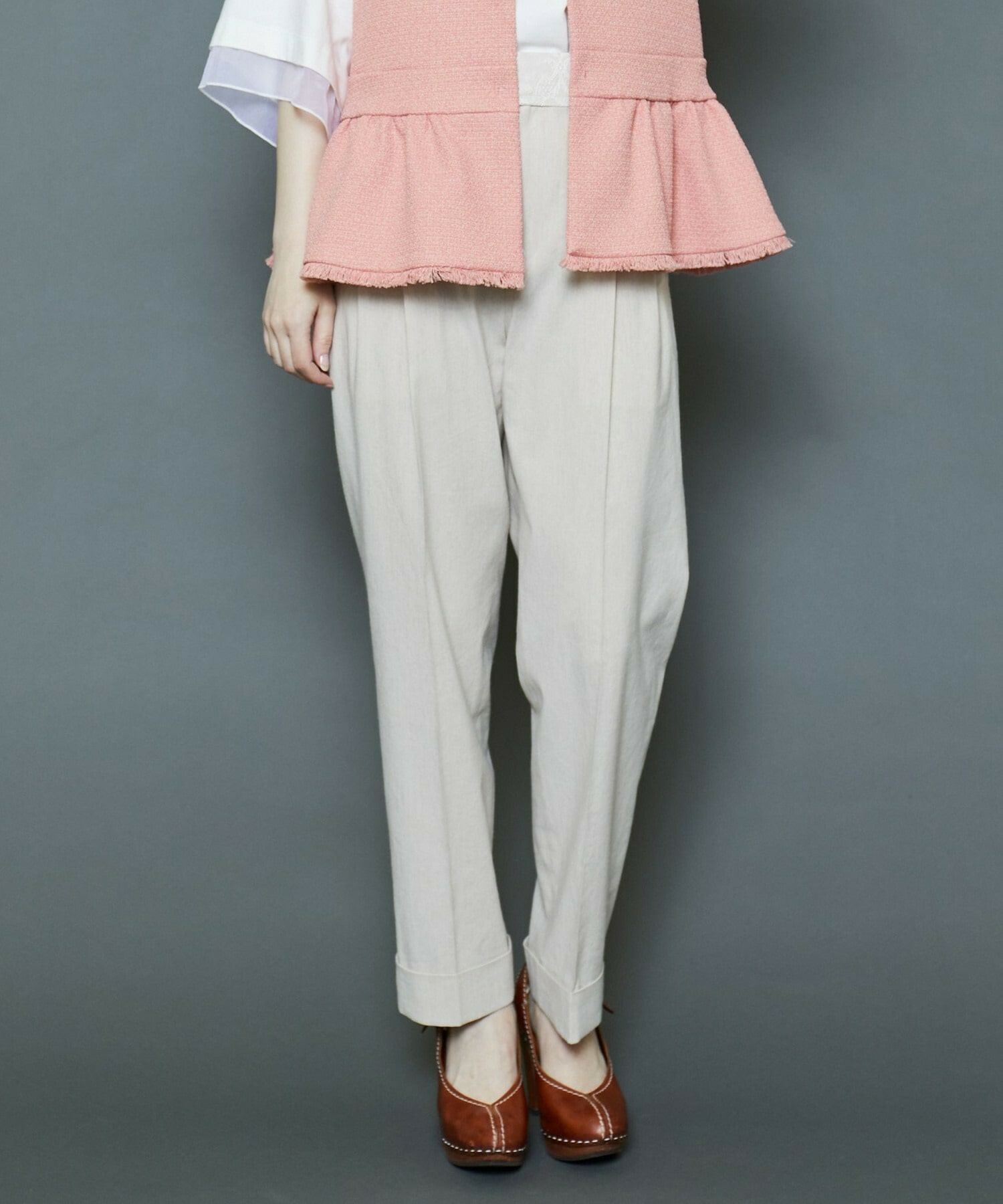 ビスコースの落ち感、リネンを全面に出した粗野感と程よい肉感が特徴です。