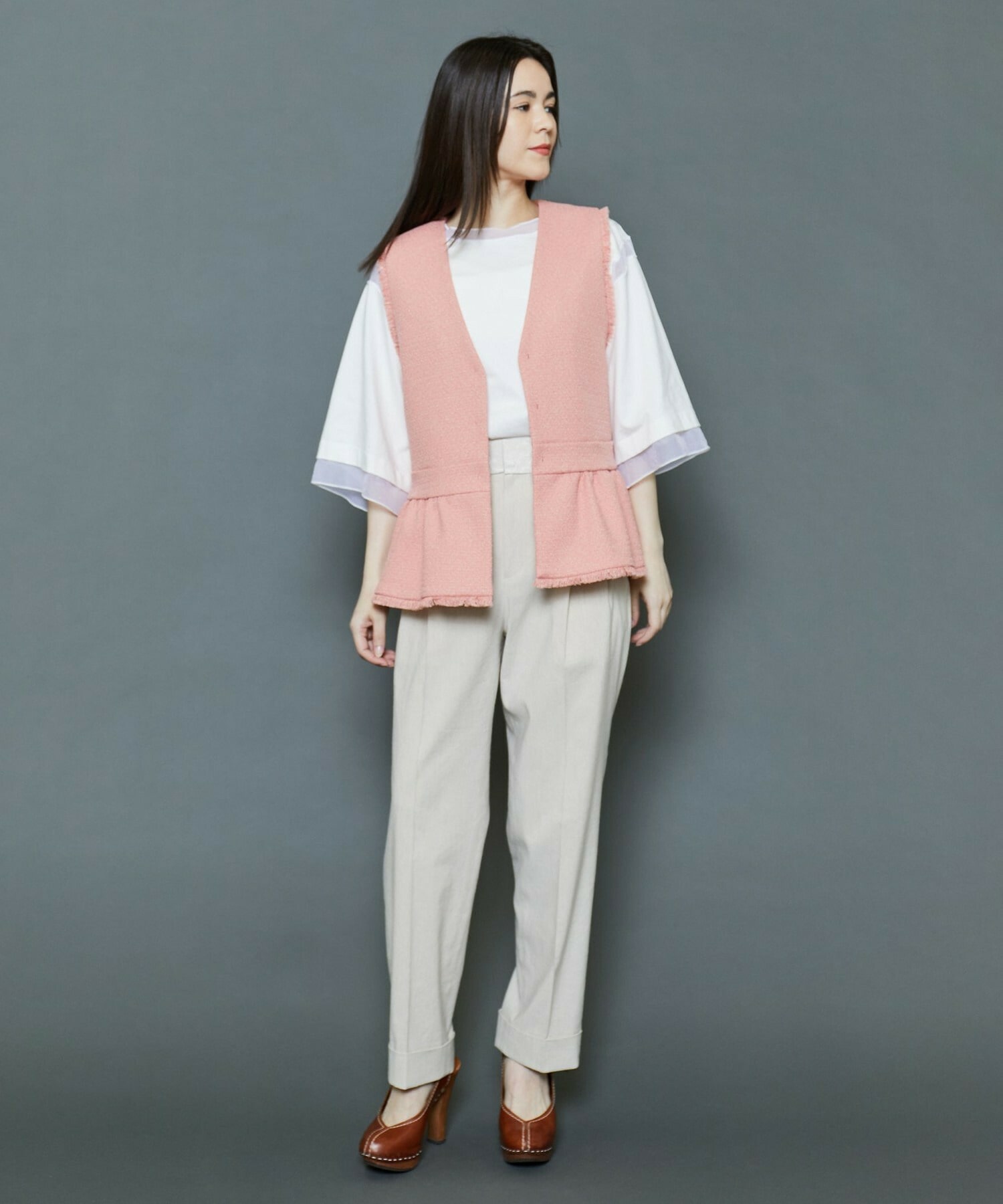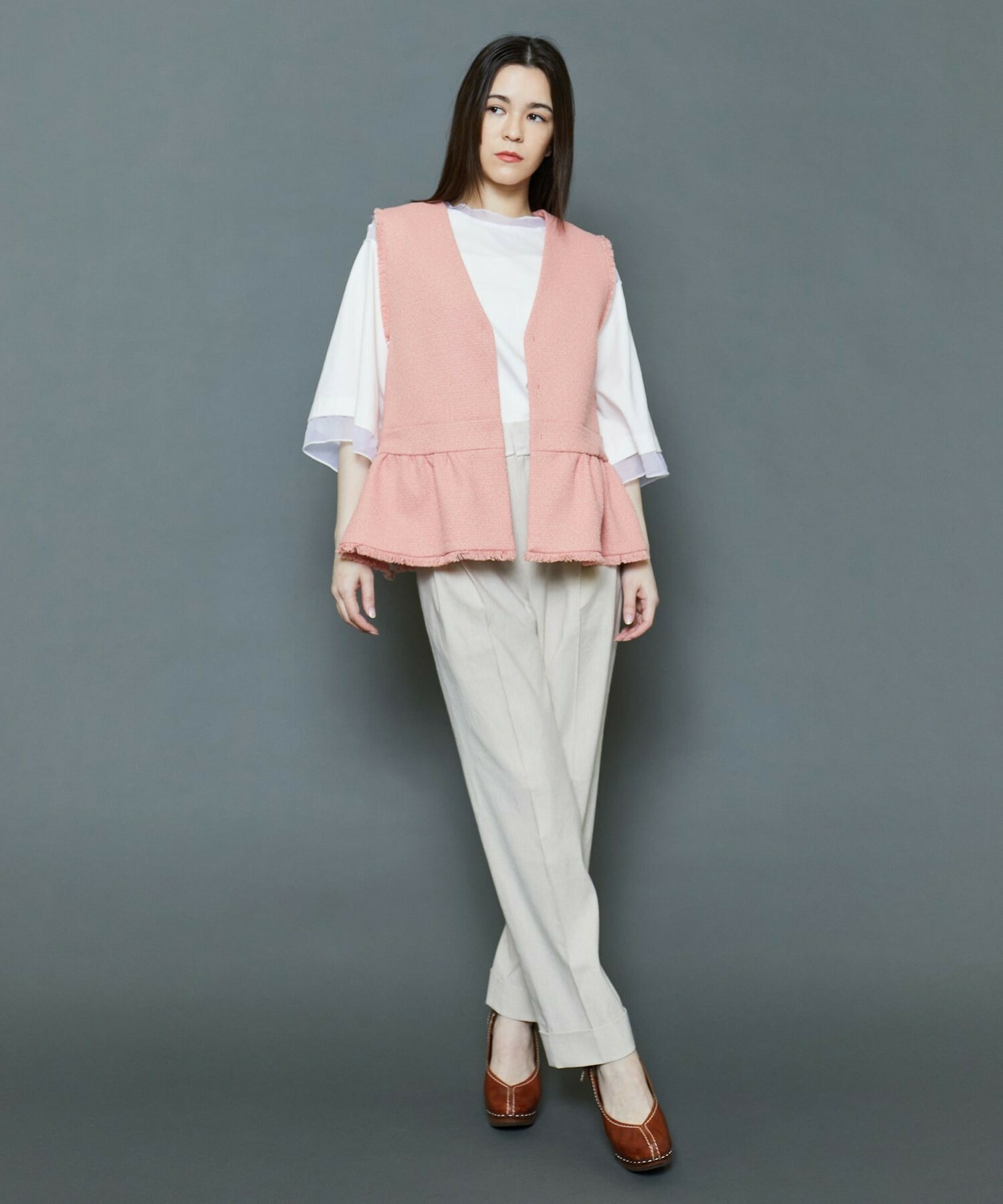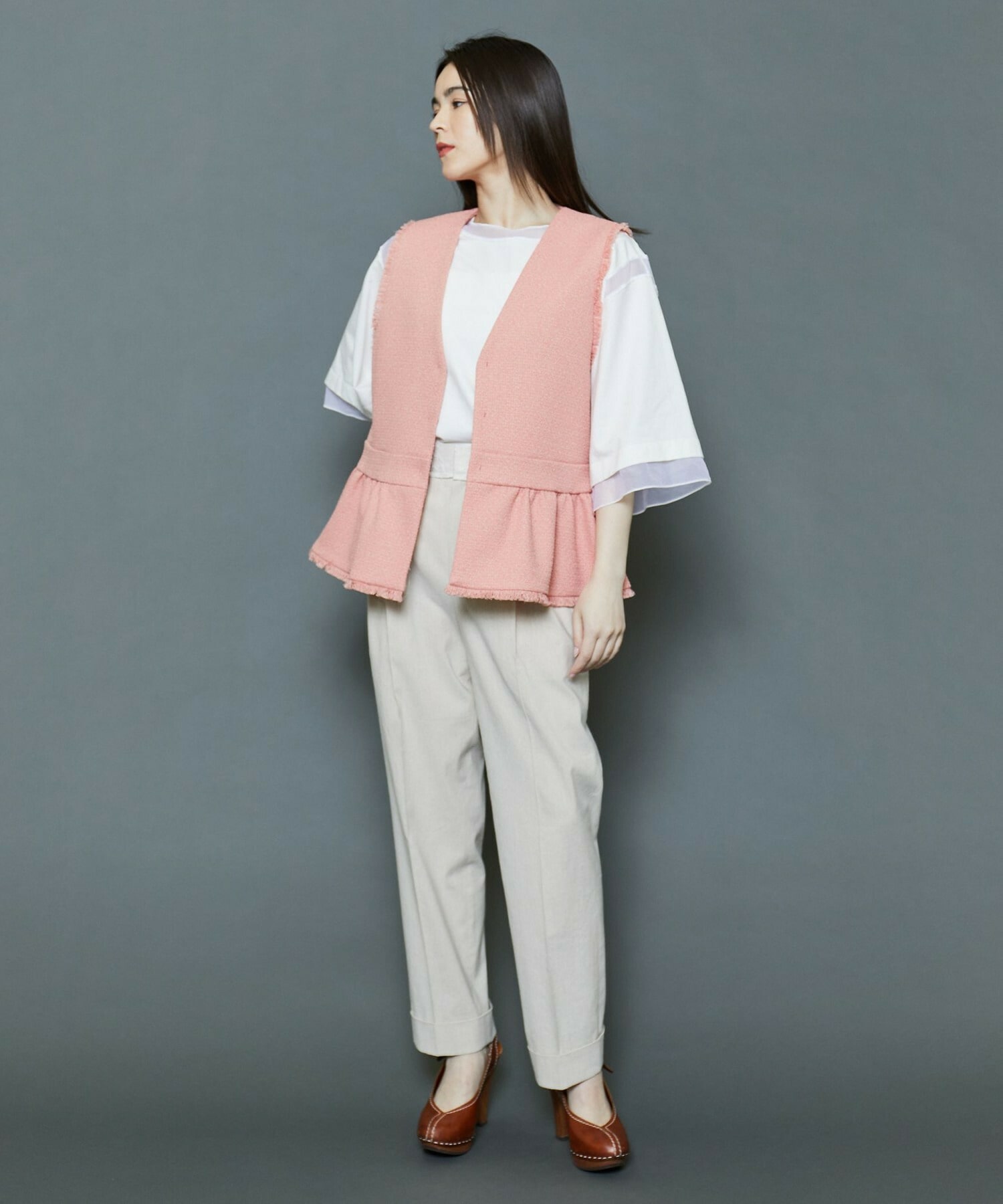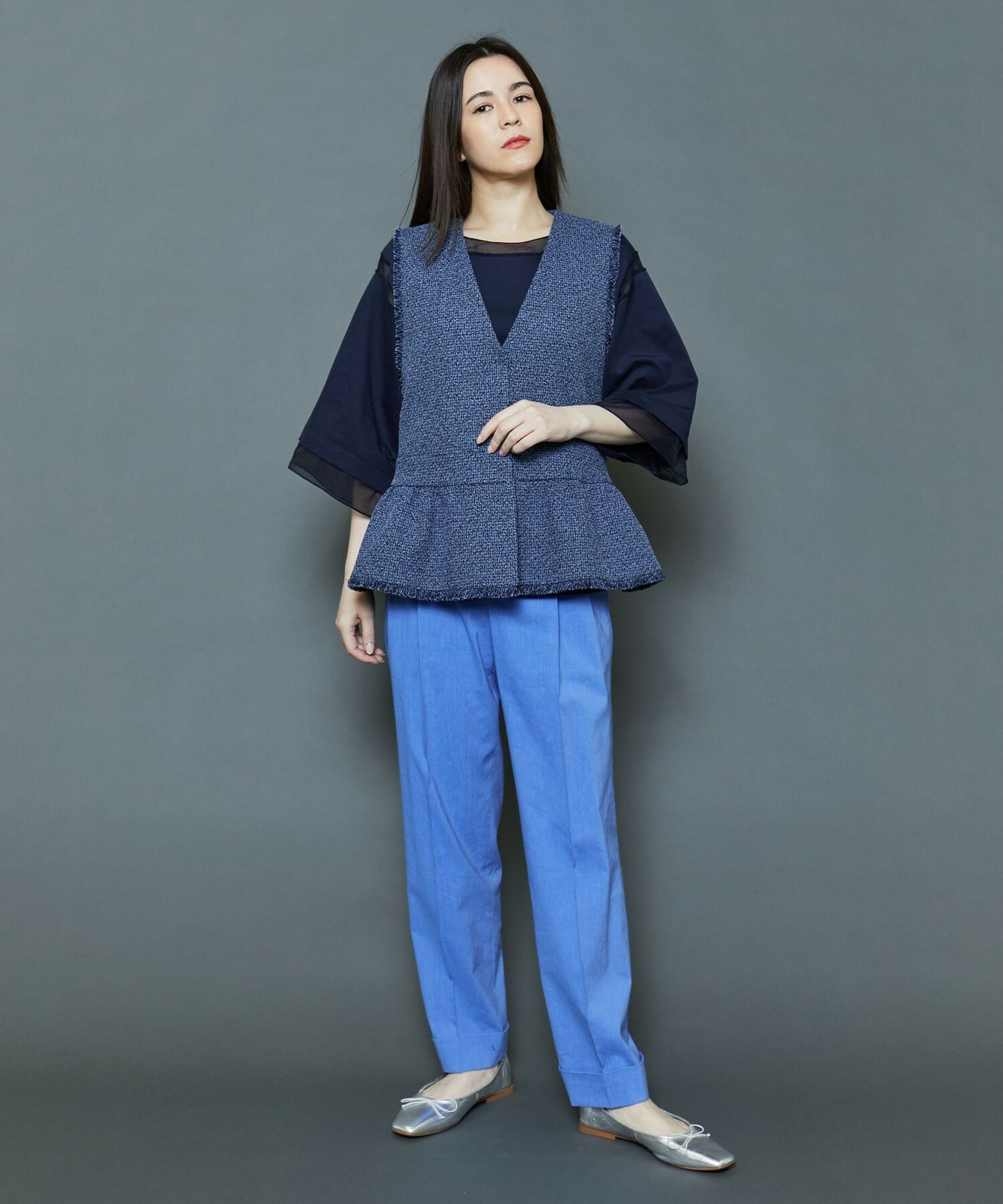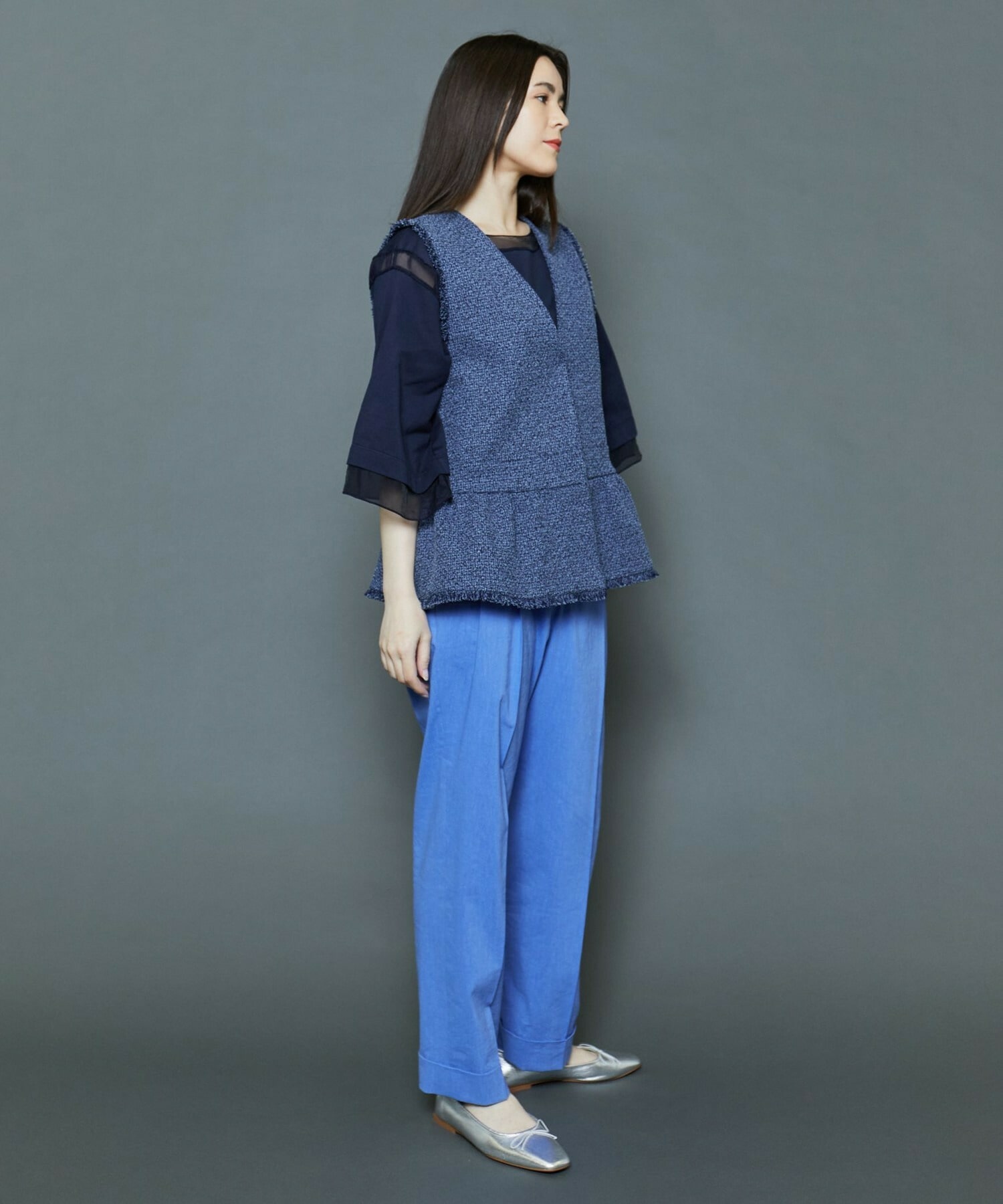 ビスコースの落ち感、リネンを全面に出した粗野感と程よい肉感が特徴です。