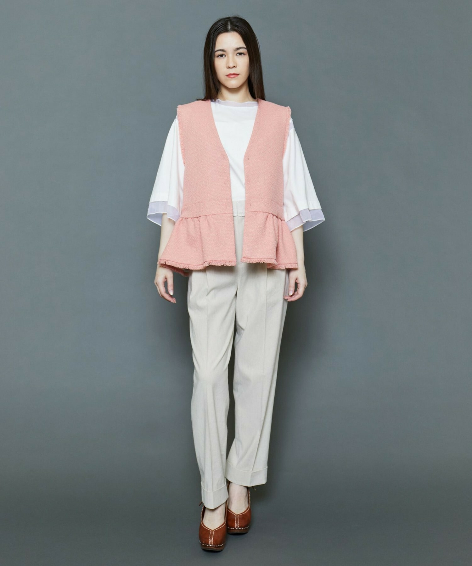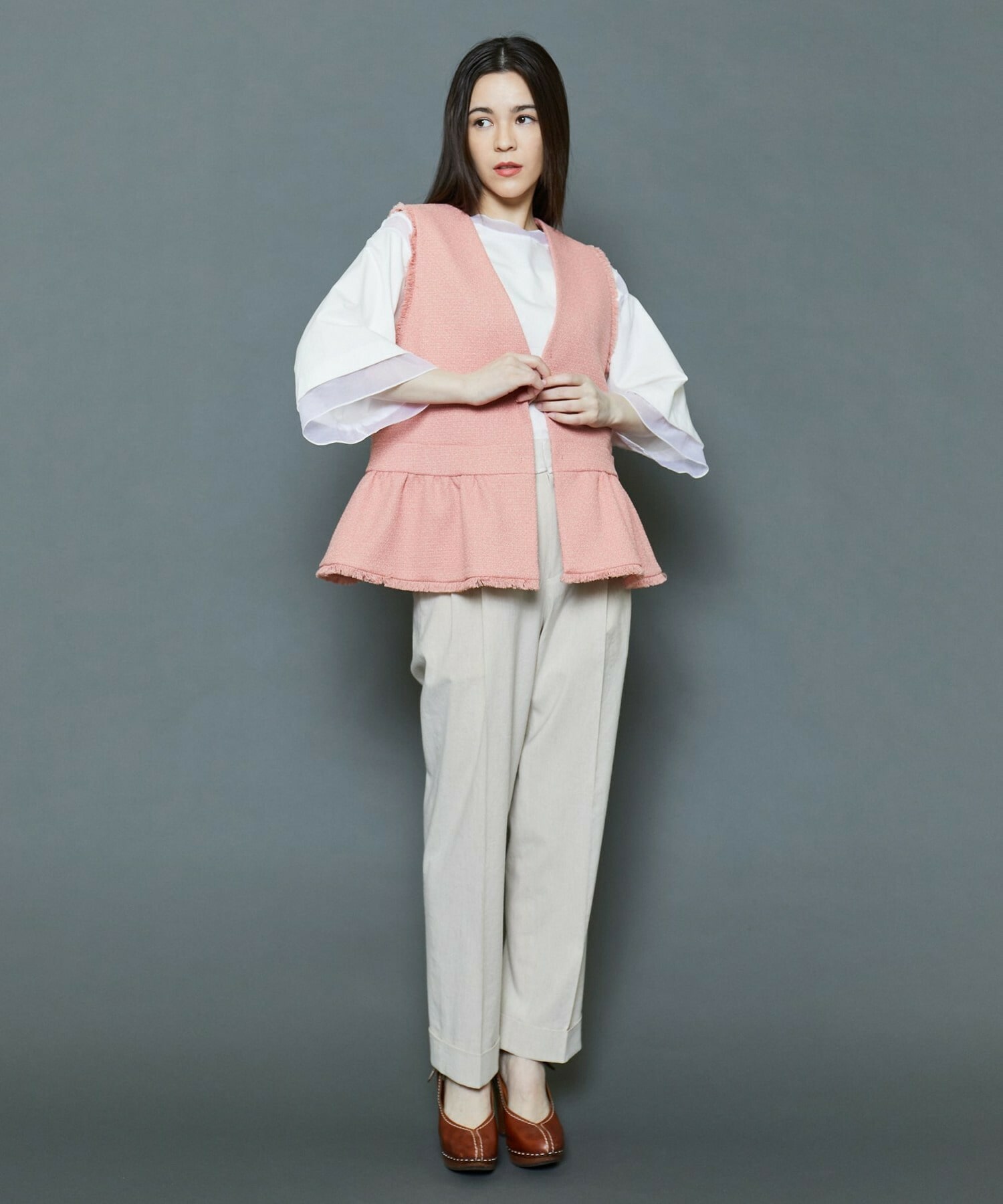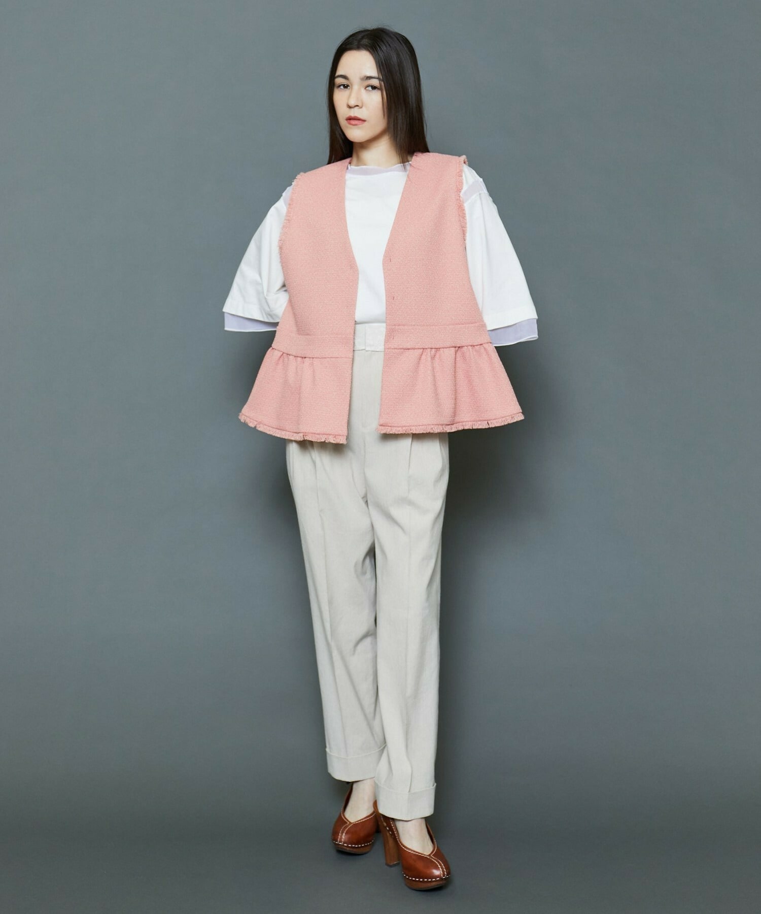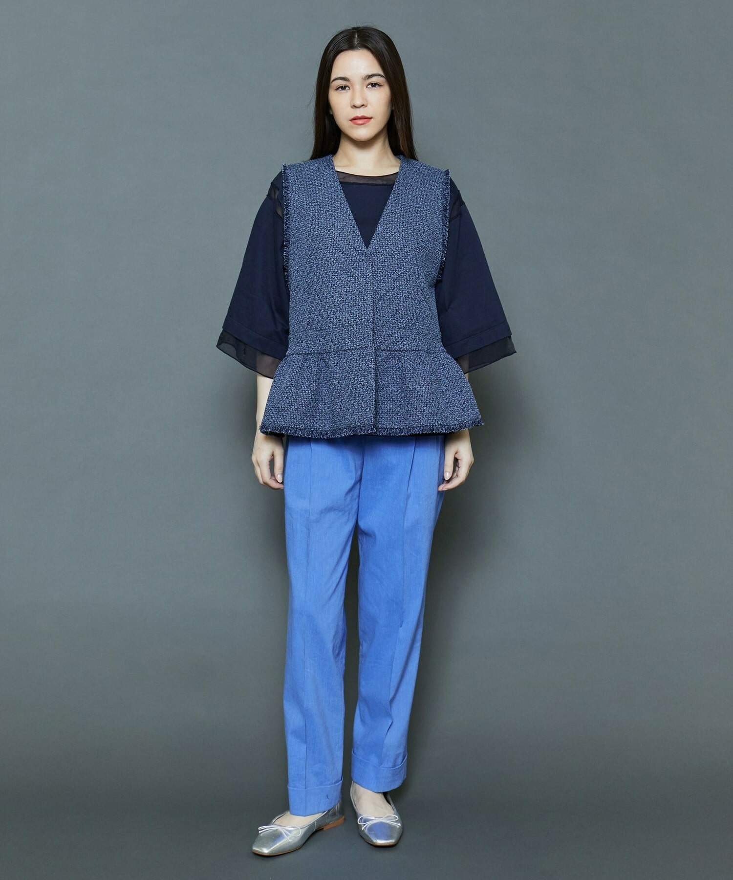 ビスコースの落ち感、リネンを全面に出した粗野感と程よい肉感が特徴です。