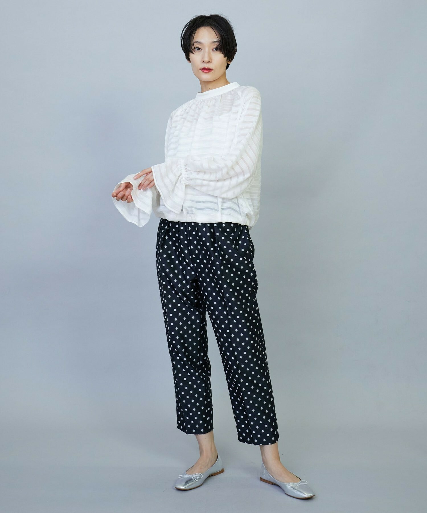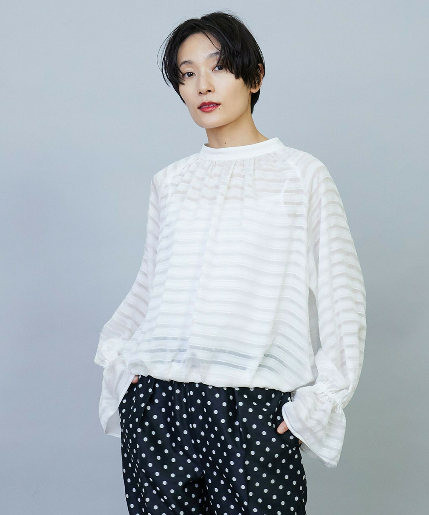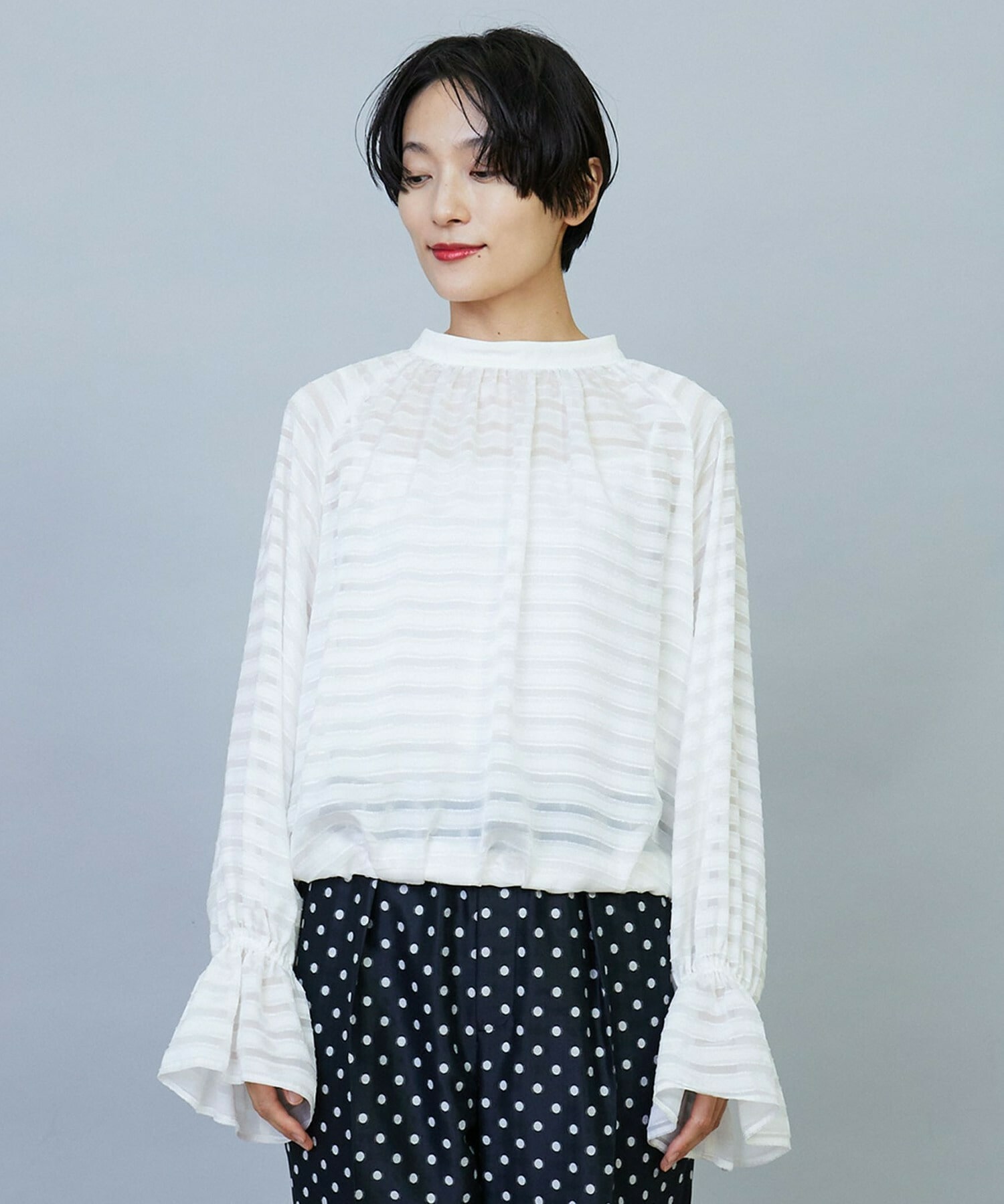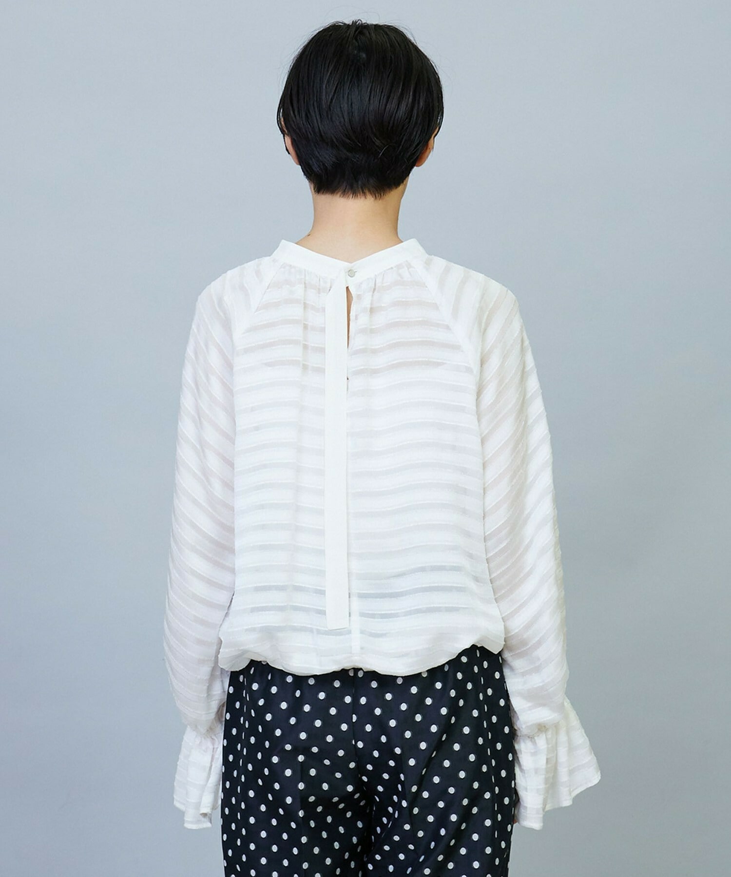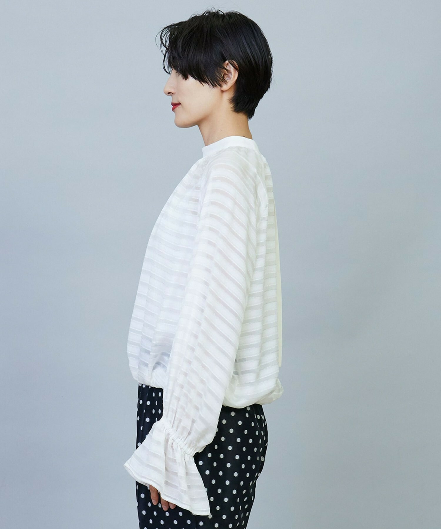 【Lサイズ】トリアセハイテンションショート丈ブラウス