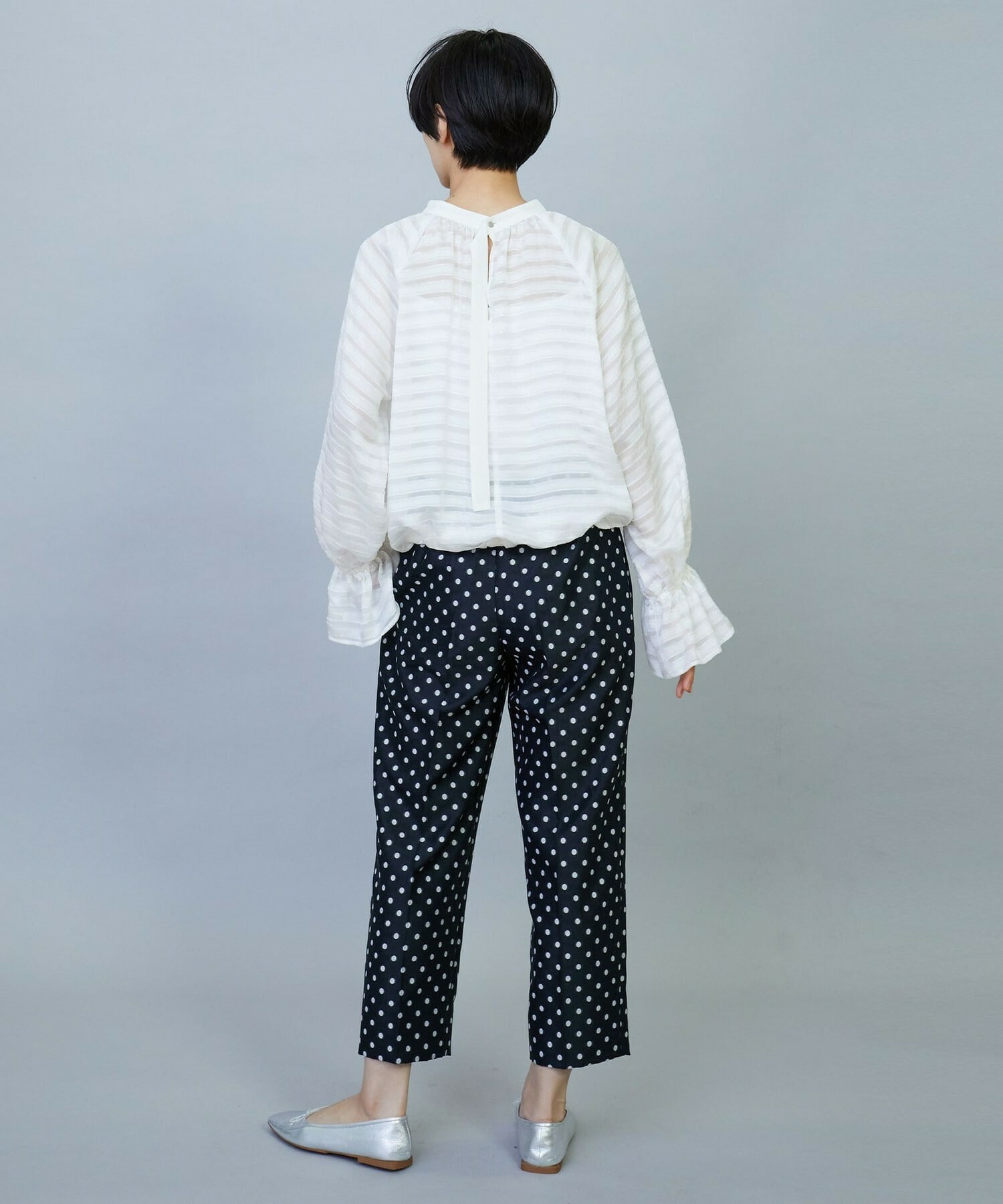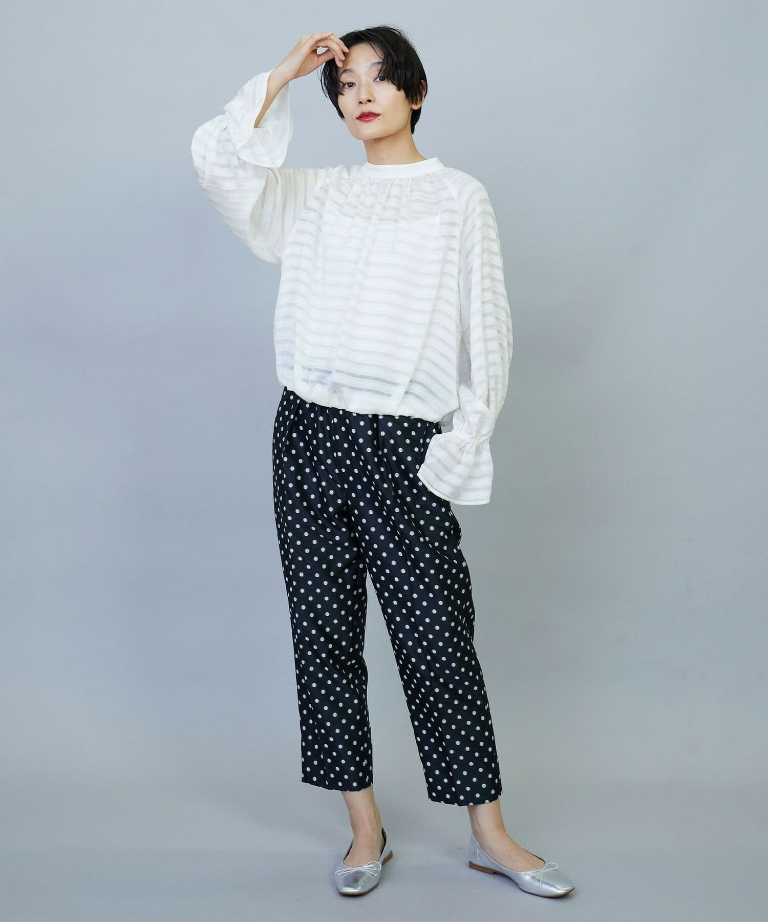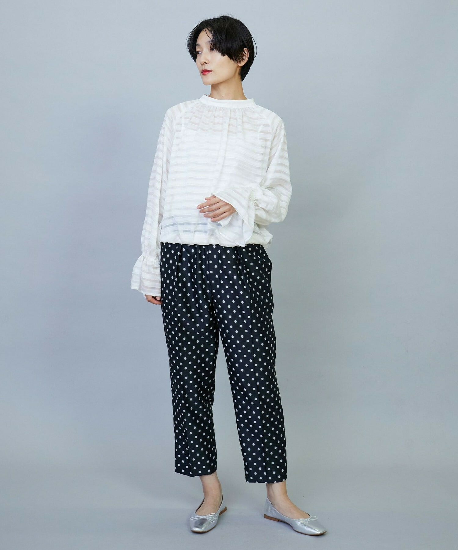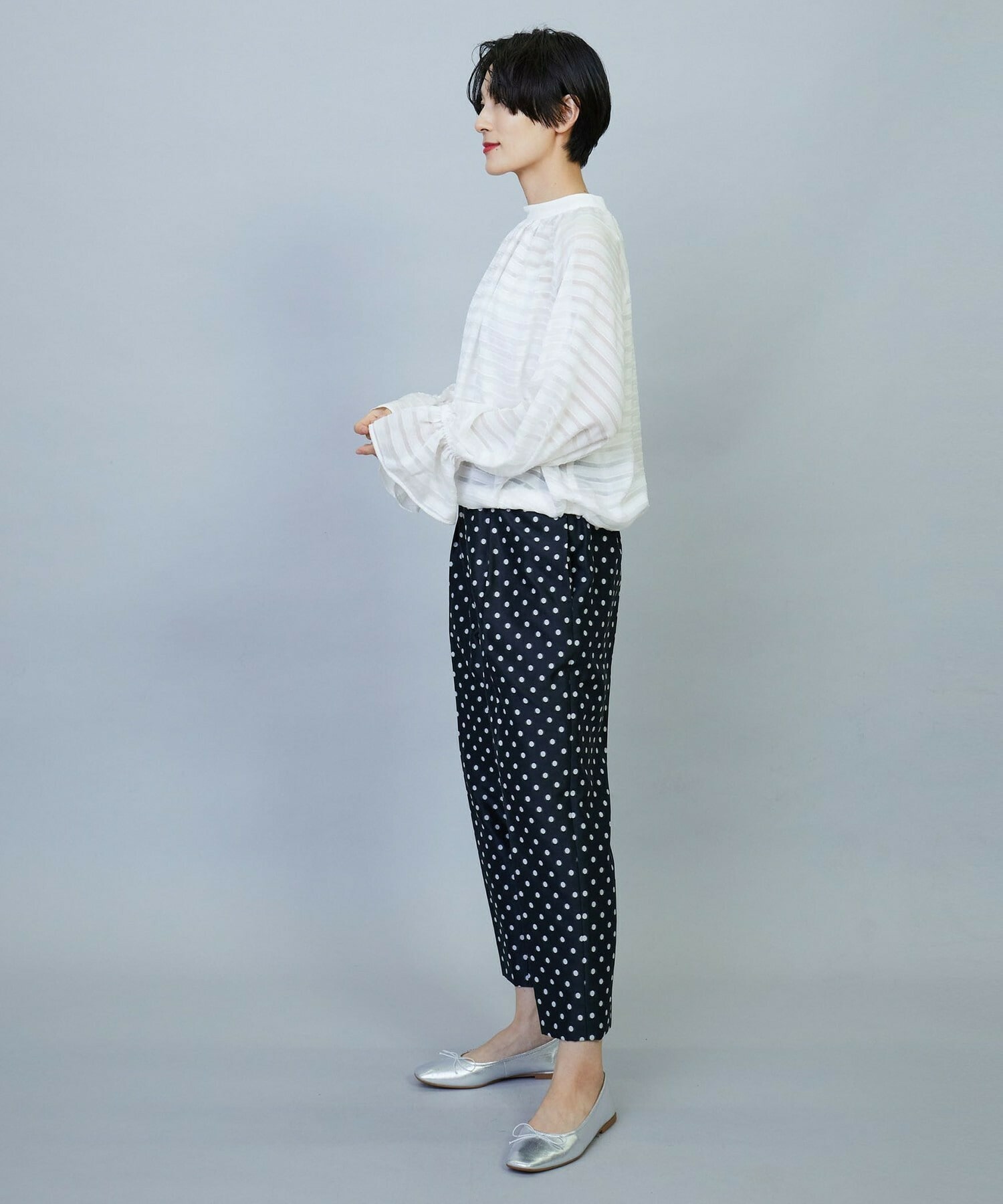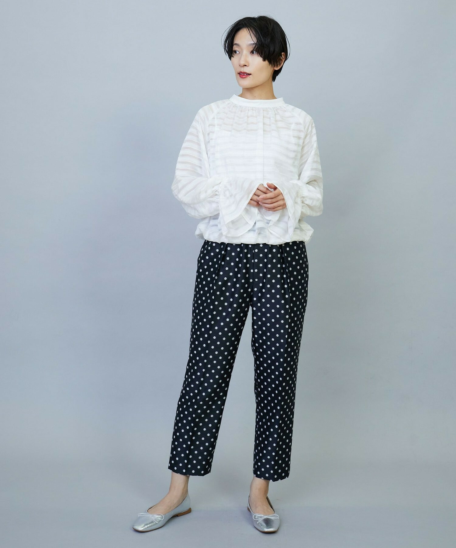 【Lサイズ】トリアセハイテンションショート丈ブラウス