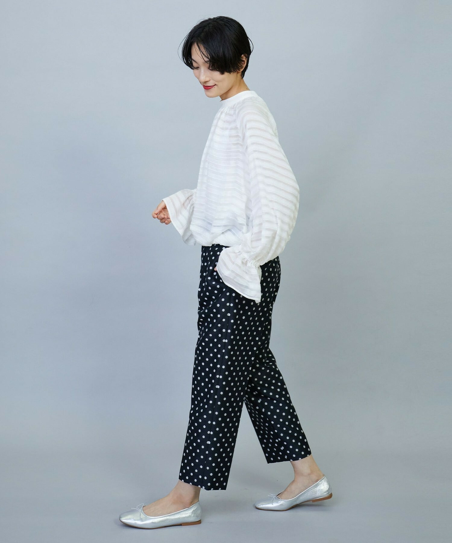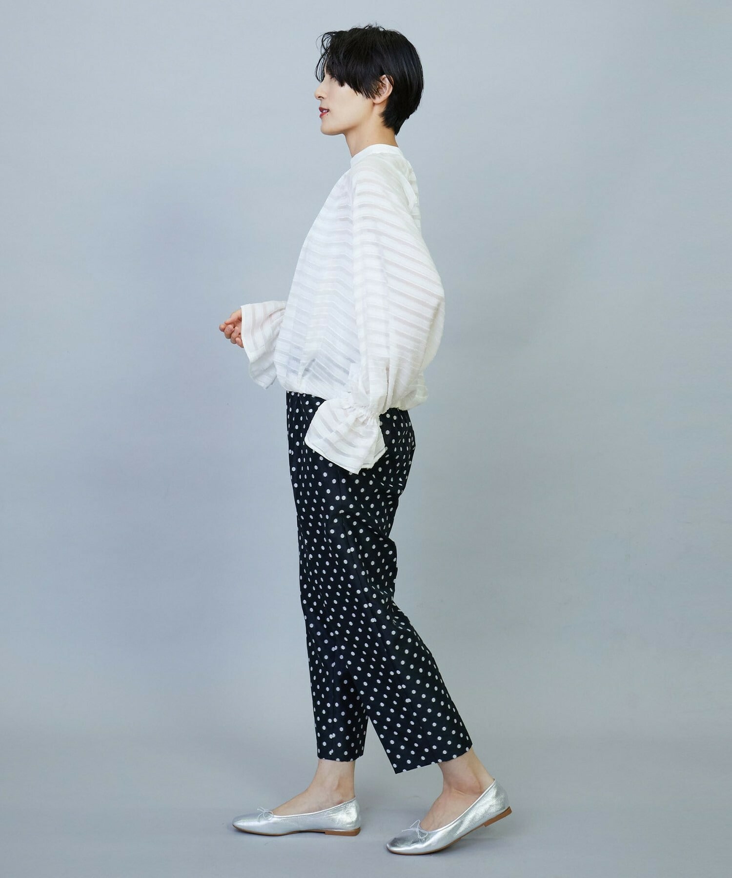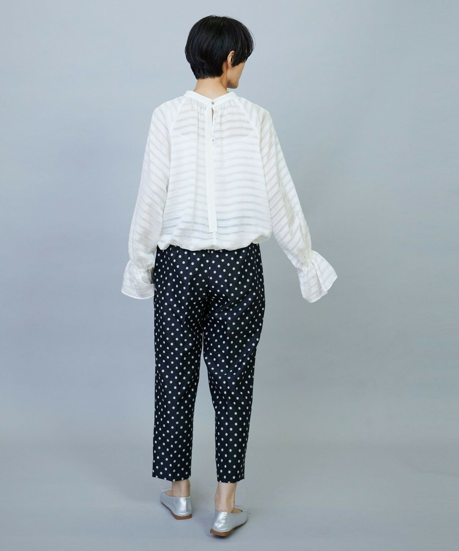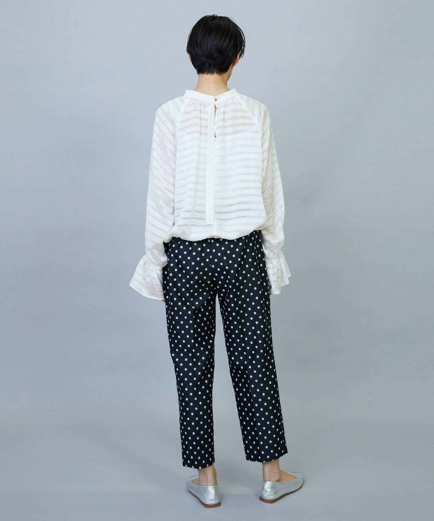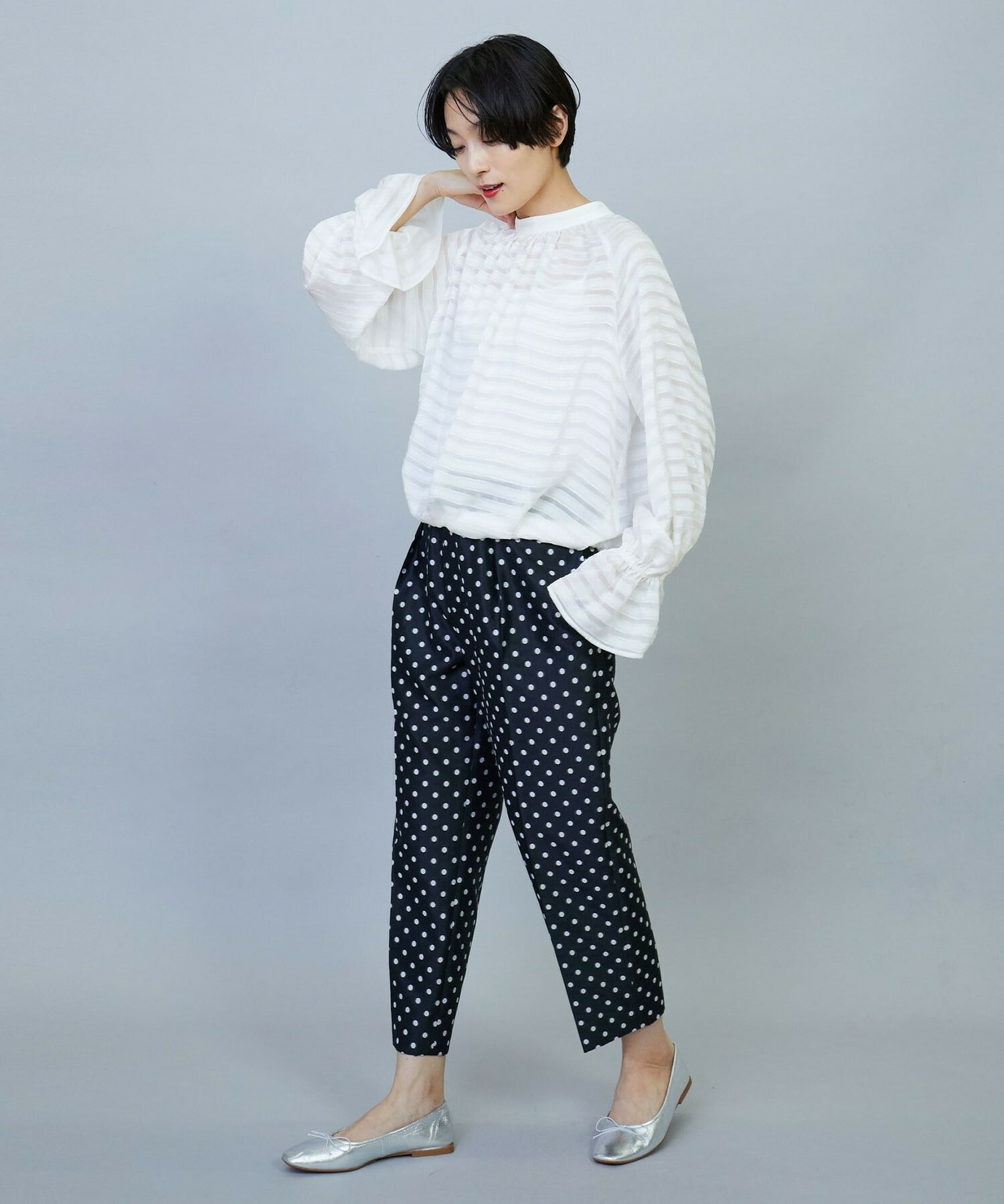 【Lサイズ】トリアセハイテンションショート丈ブラウス