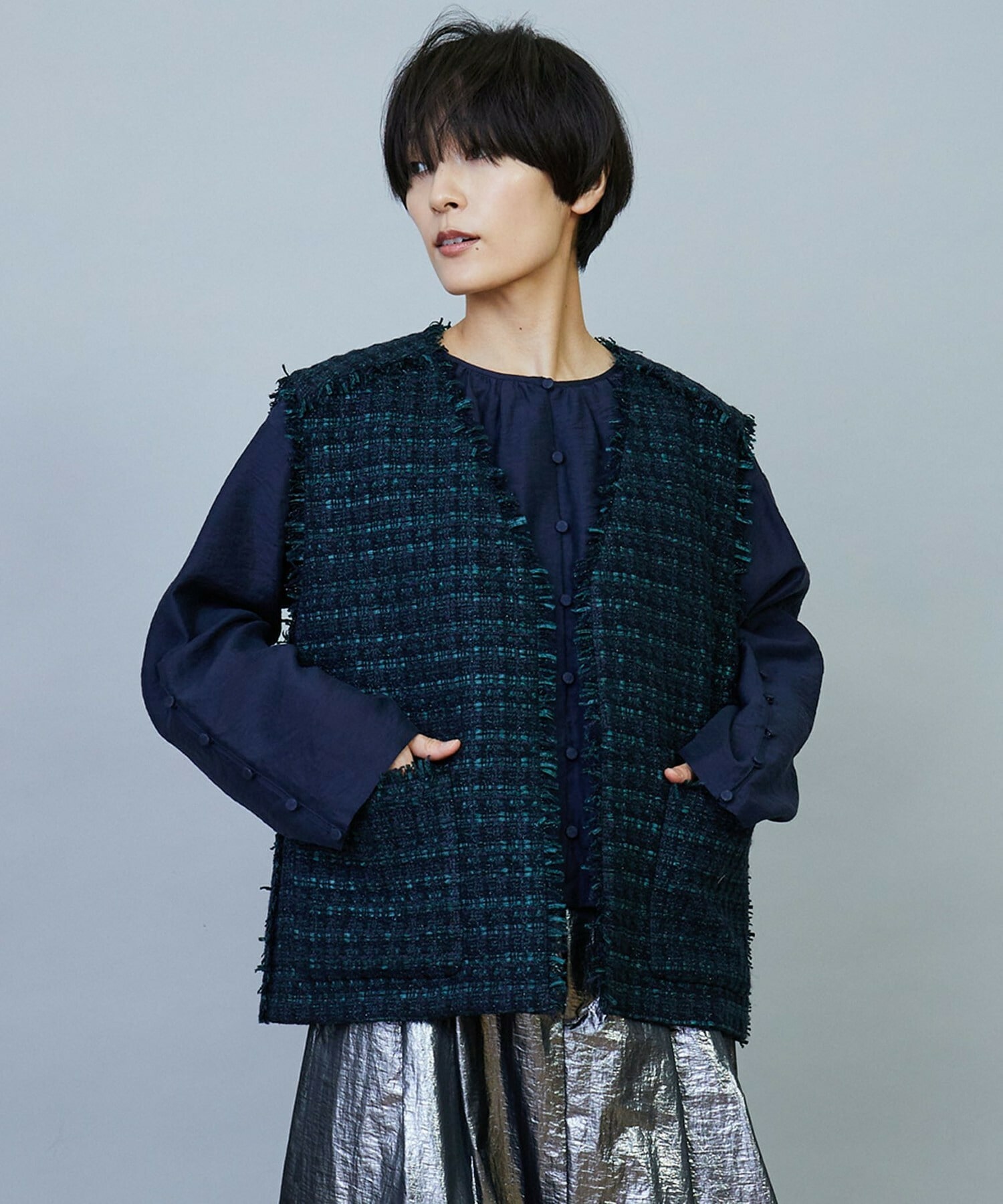 リネンコットン天竺2wayケープベスト