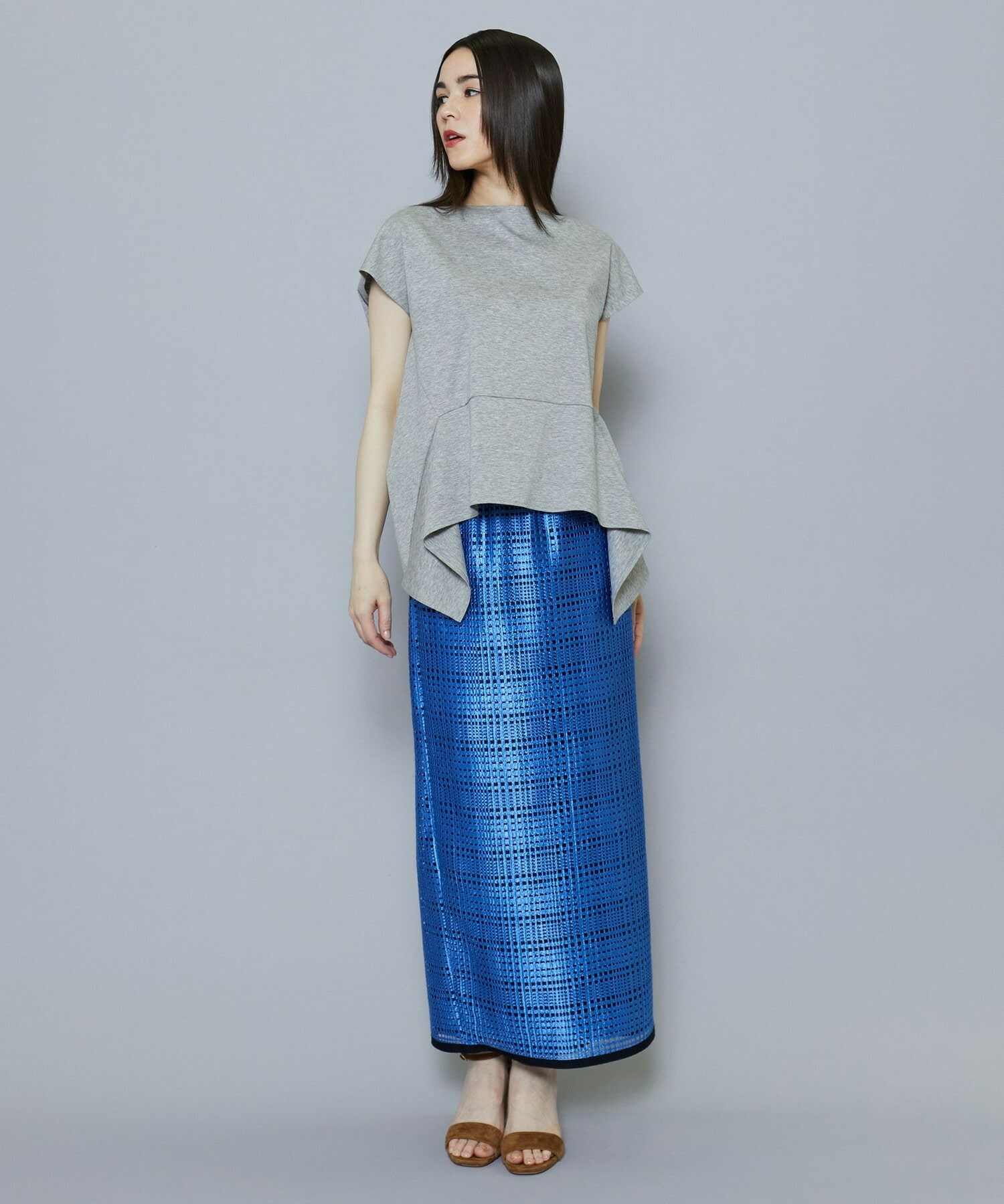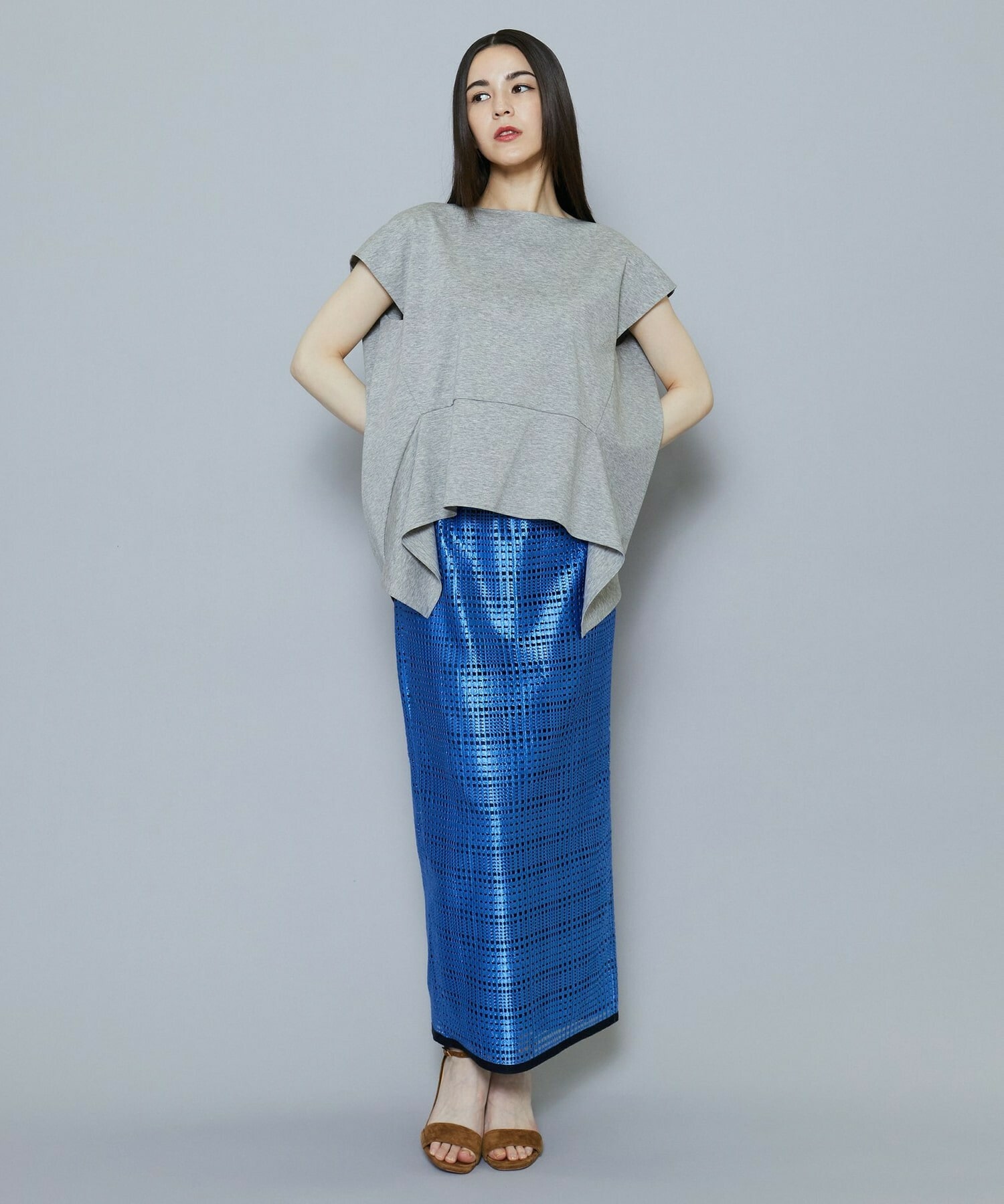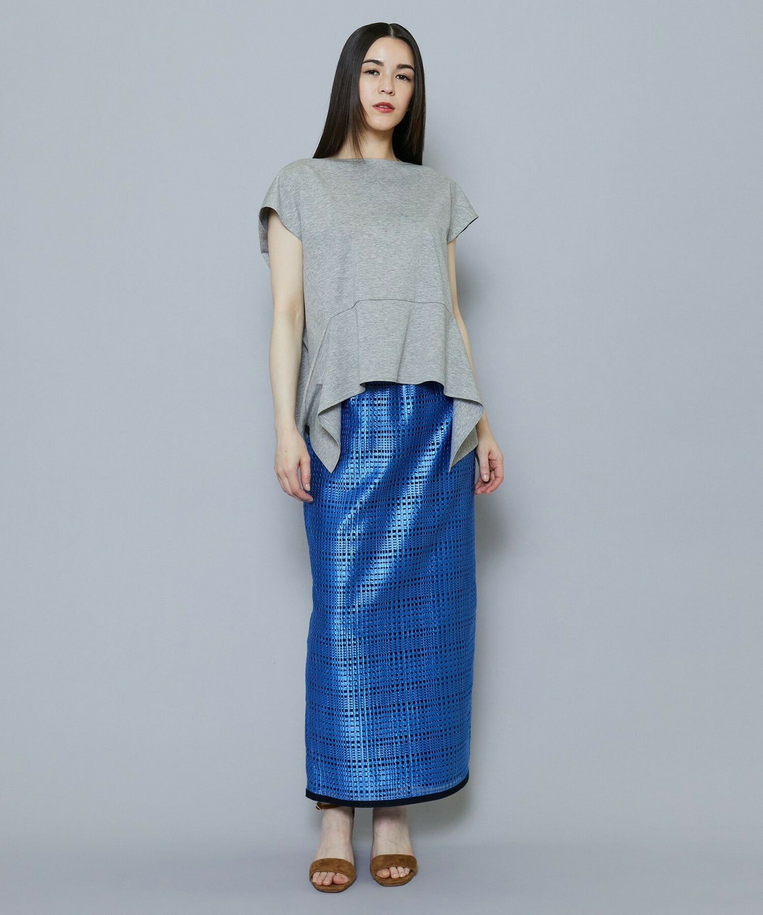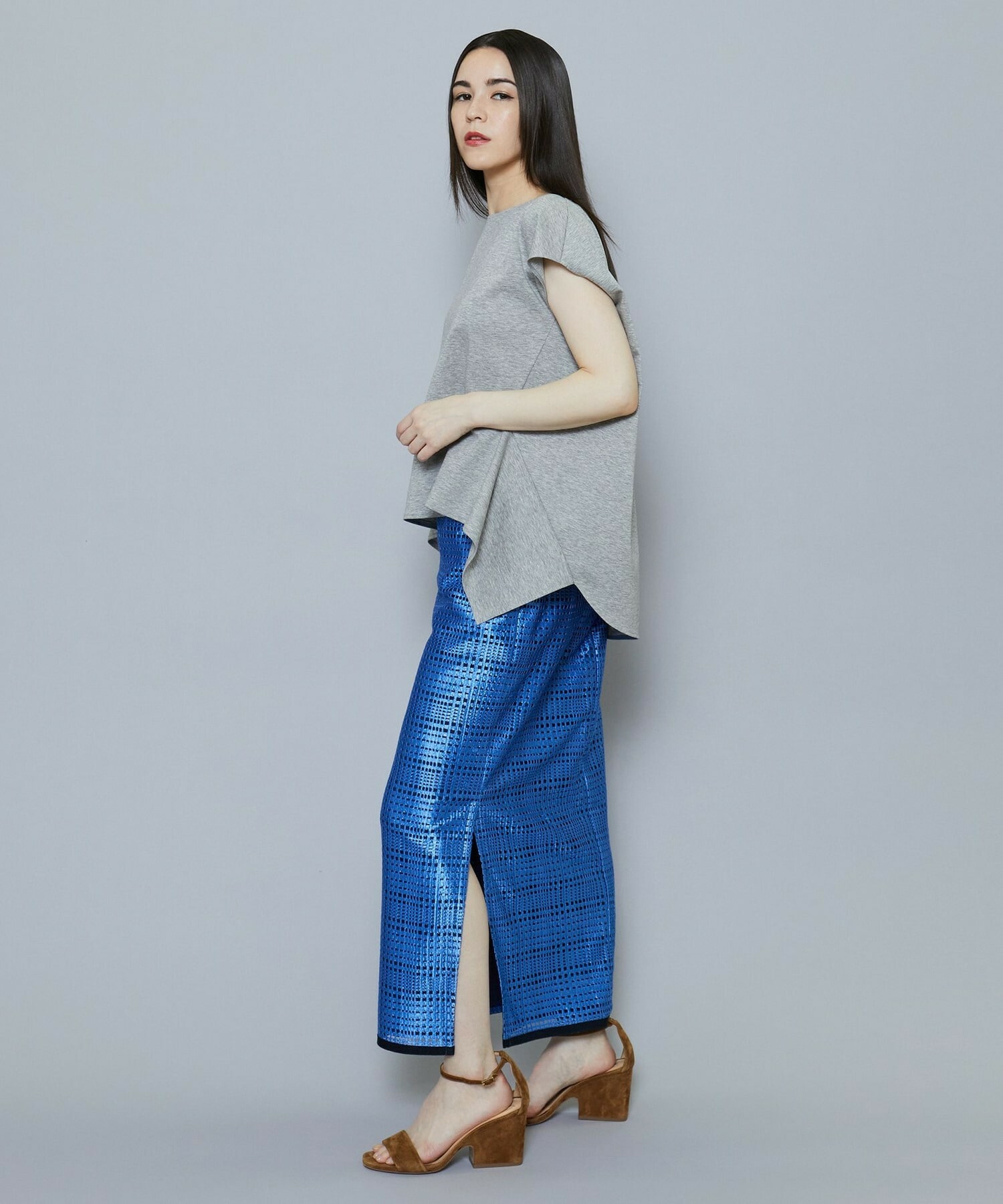 左脇のスリットはアシンメトリーな抜け感で足捌きが良いタイトスカートです。