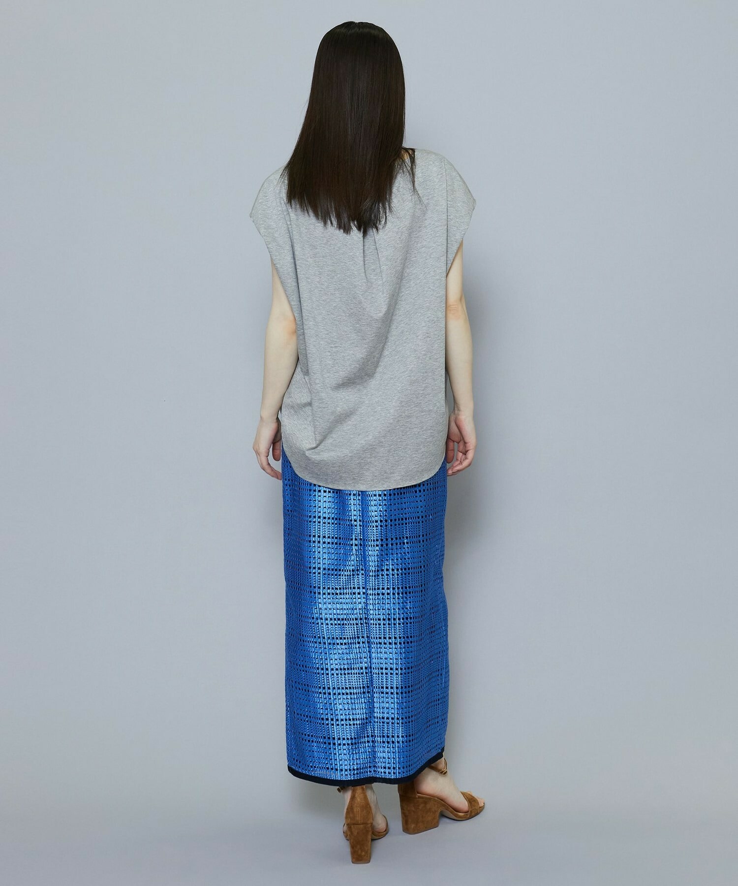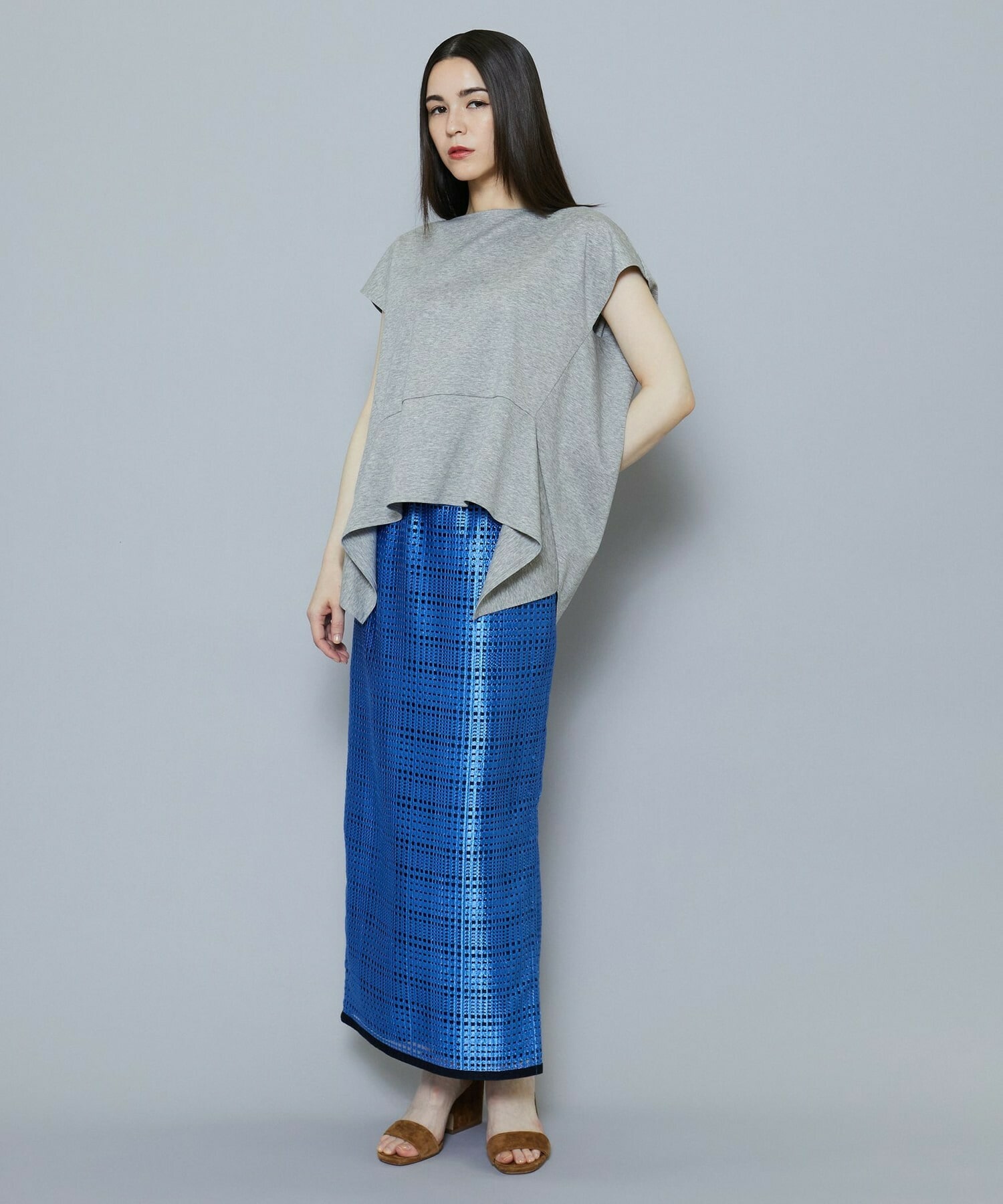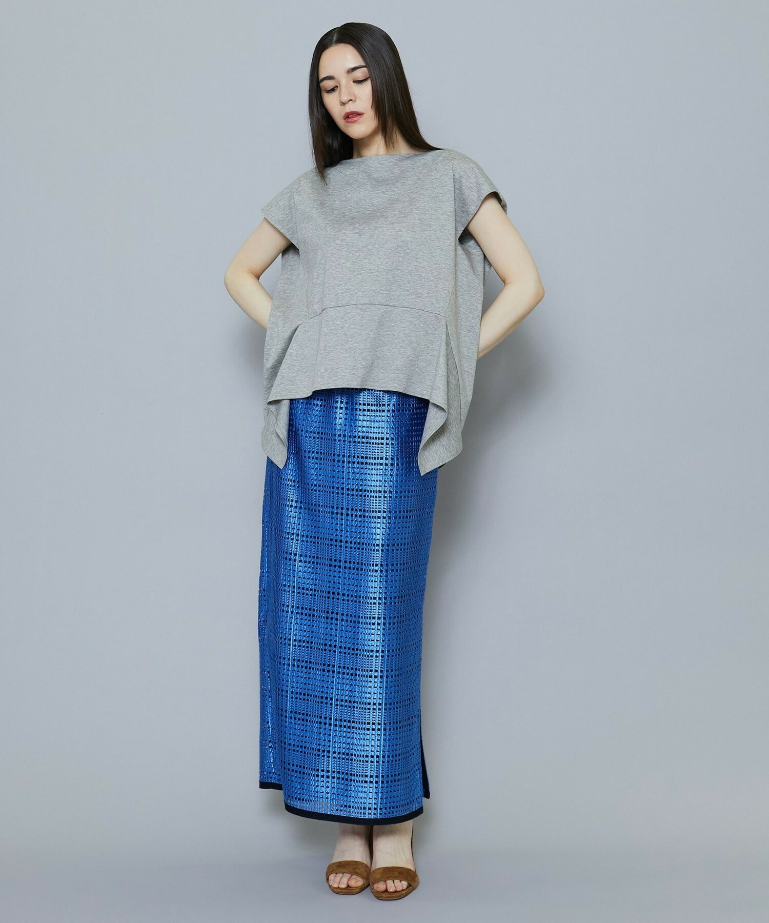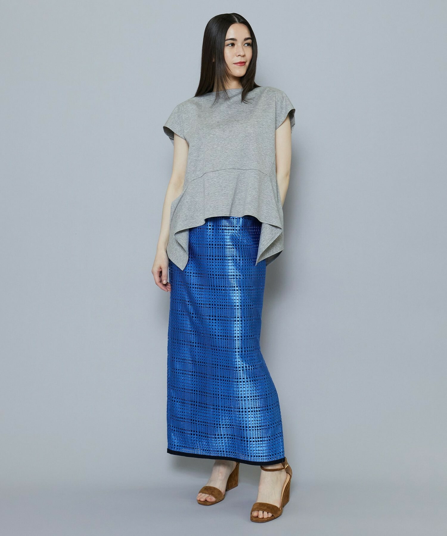 左脇のスリットはアシンメトリーな抜け感で足捌きが良いタイトスカートです。