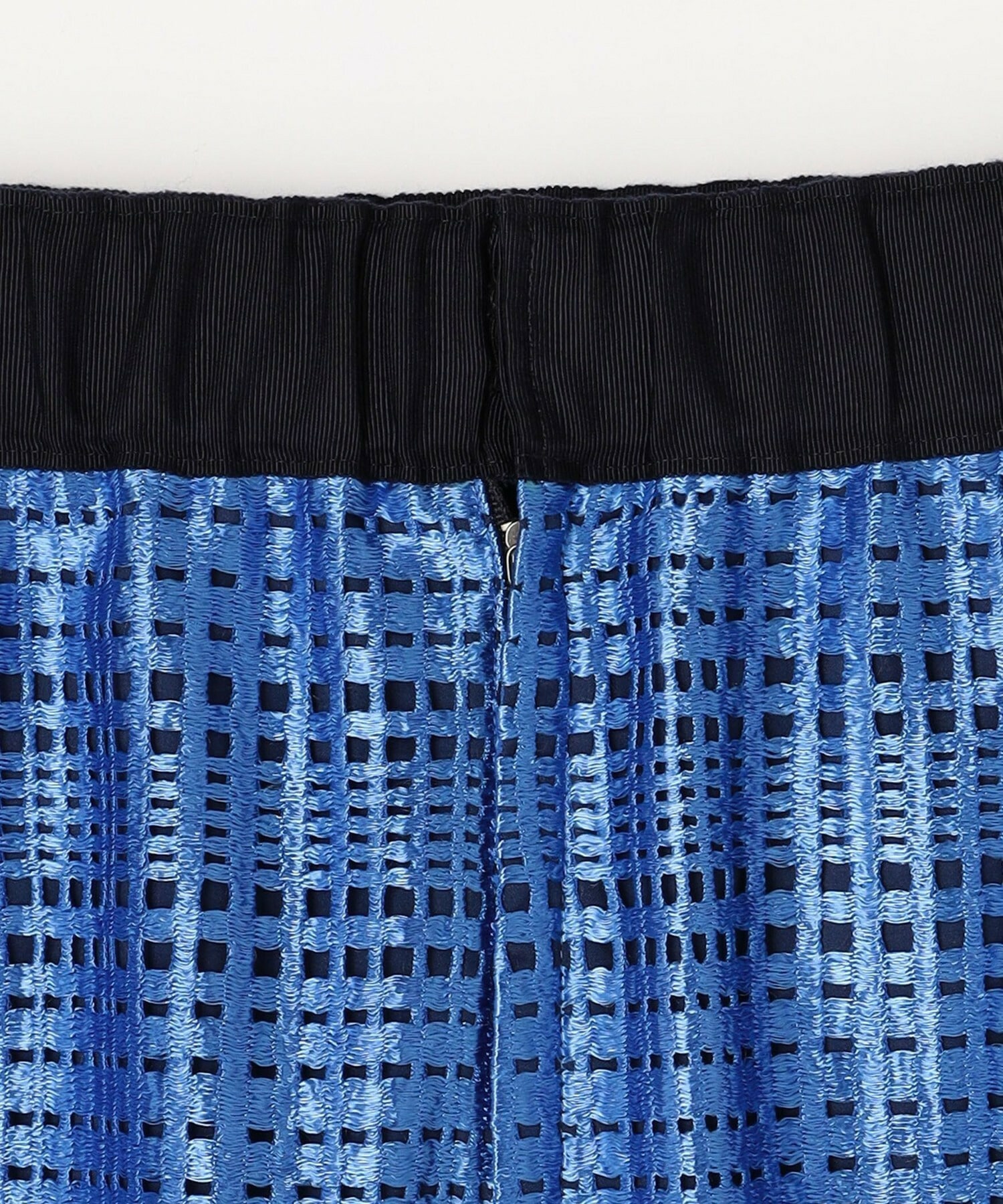 ウエストベルトはグログランテープの端を浮かしてフリルのようにアクセントを付け、実用的な履きやすさも備えたポイントを付けています。