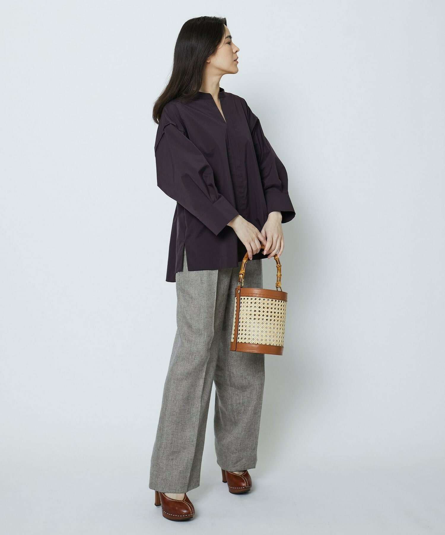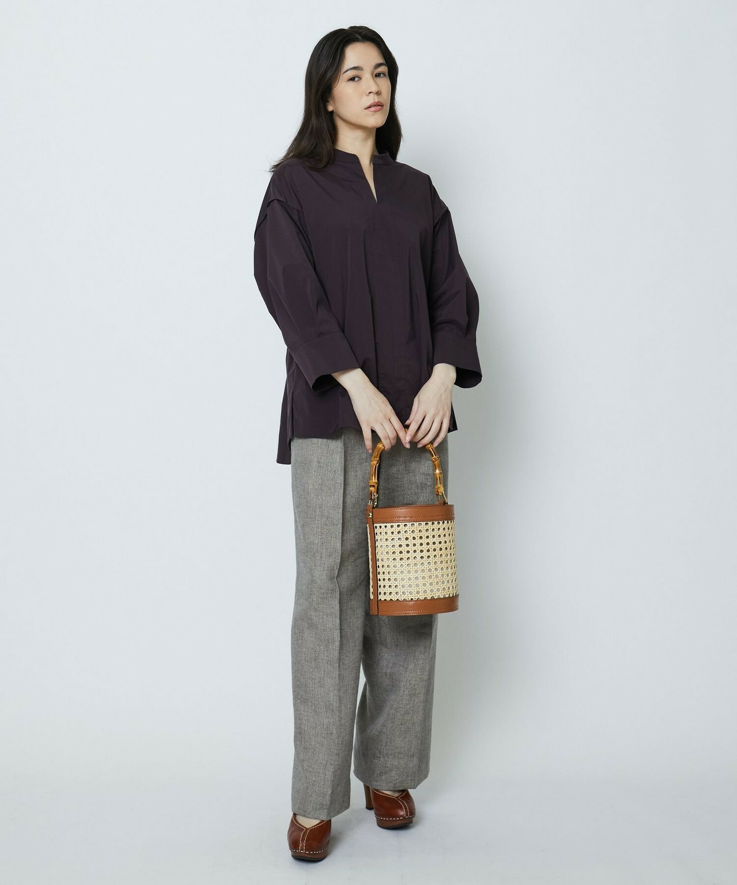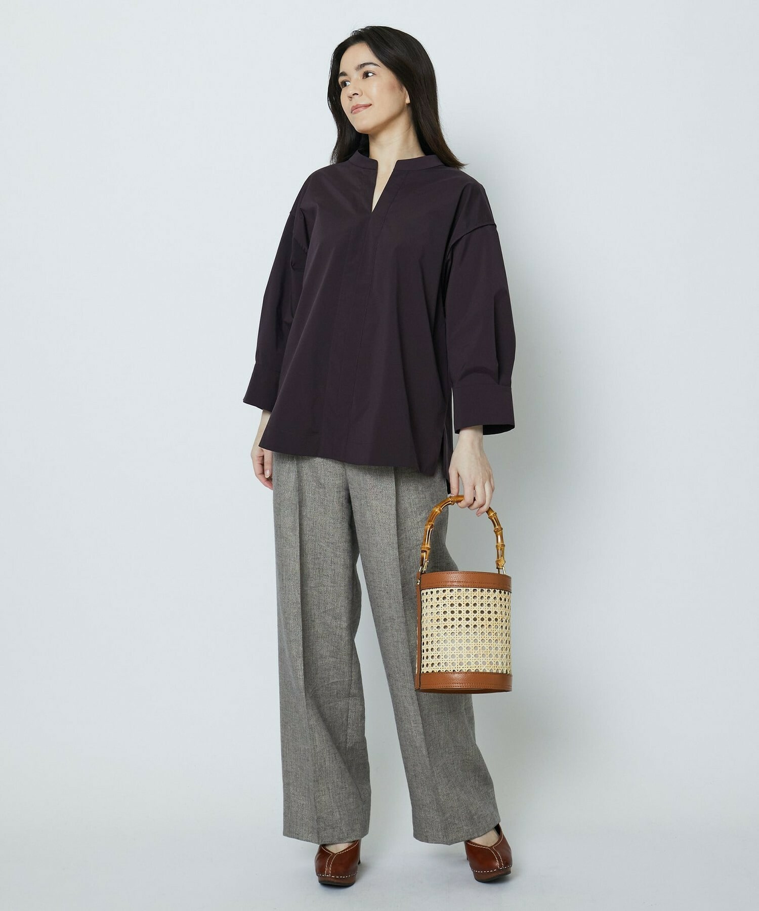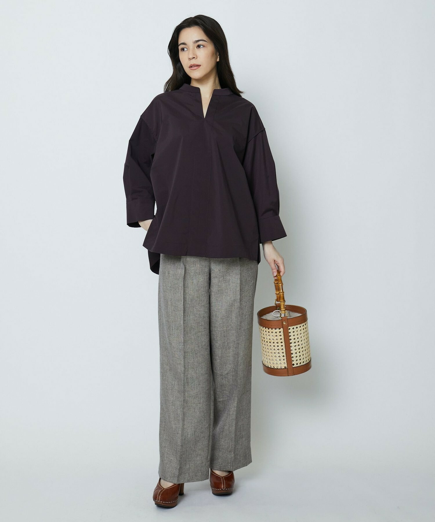 天然ライクな風合いにするタスラン加工により肌触りがよく、ポリエステルなのでシワになりにくいという綿のタッチと合繊の機能性を兼ね備えた素材です。