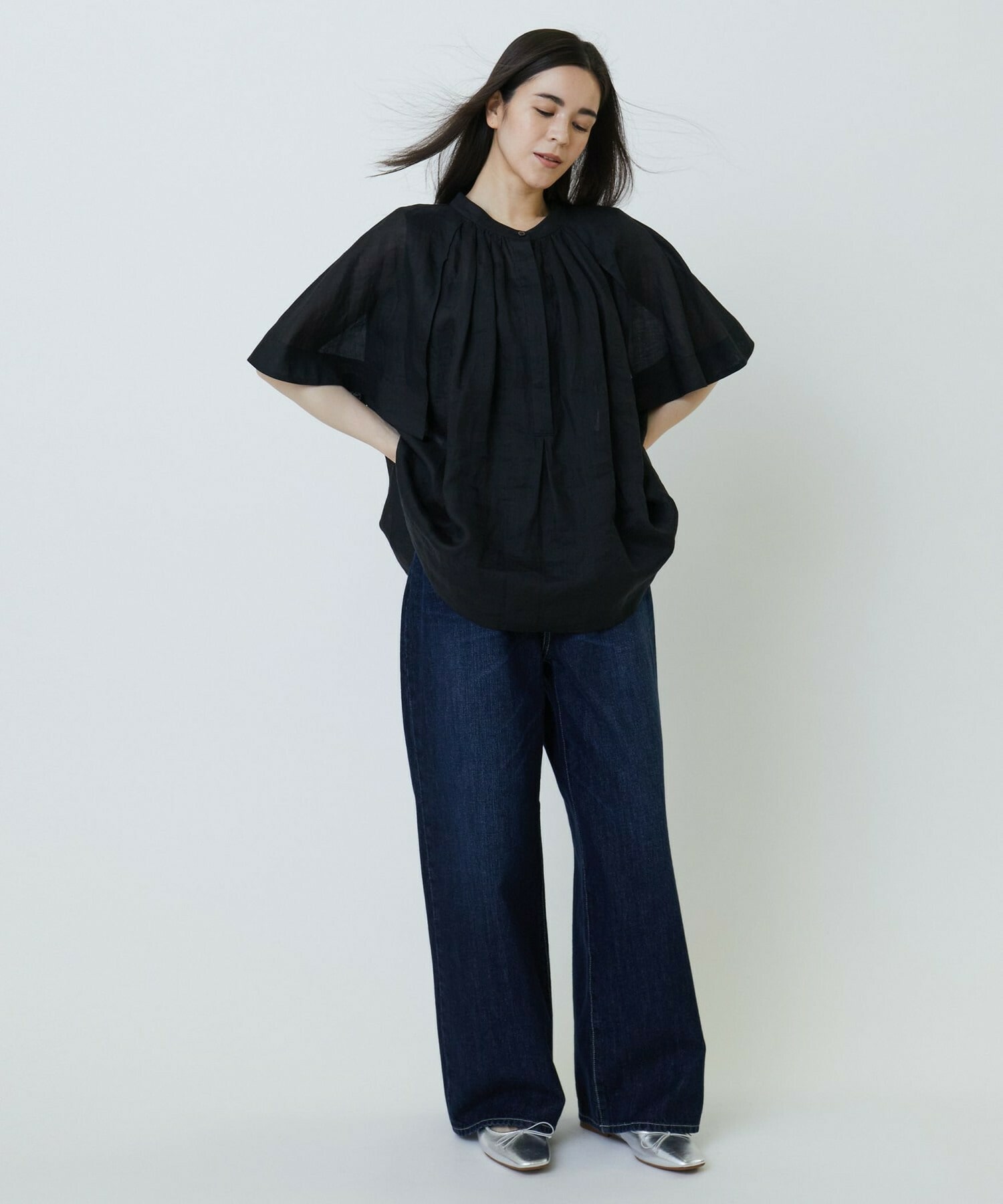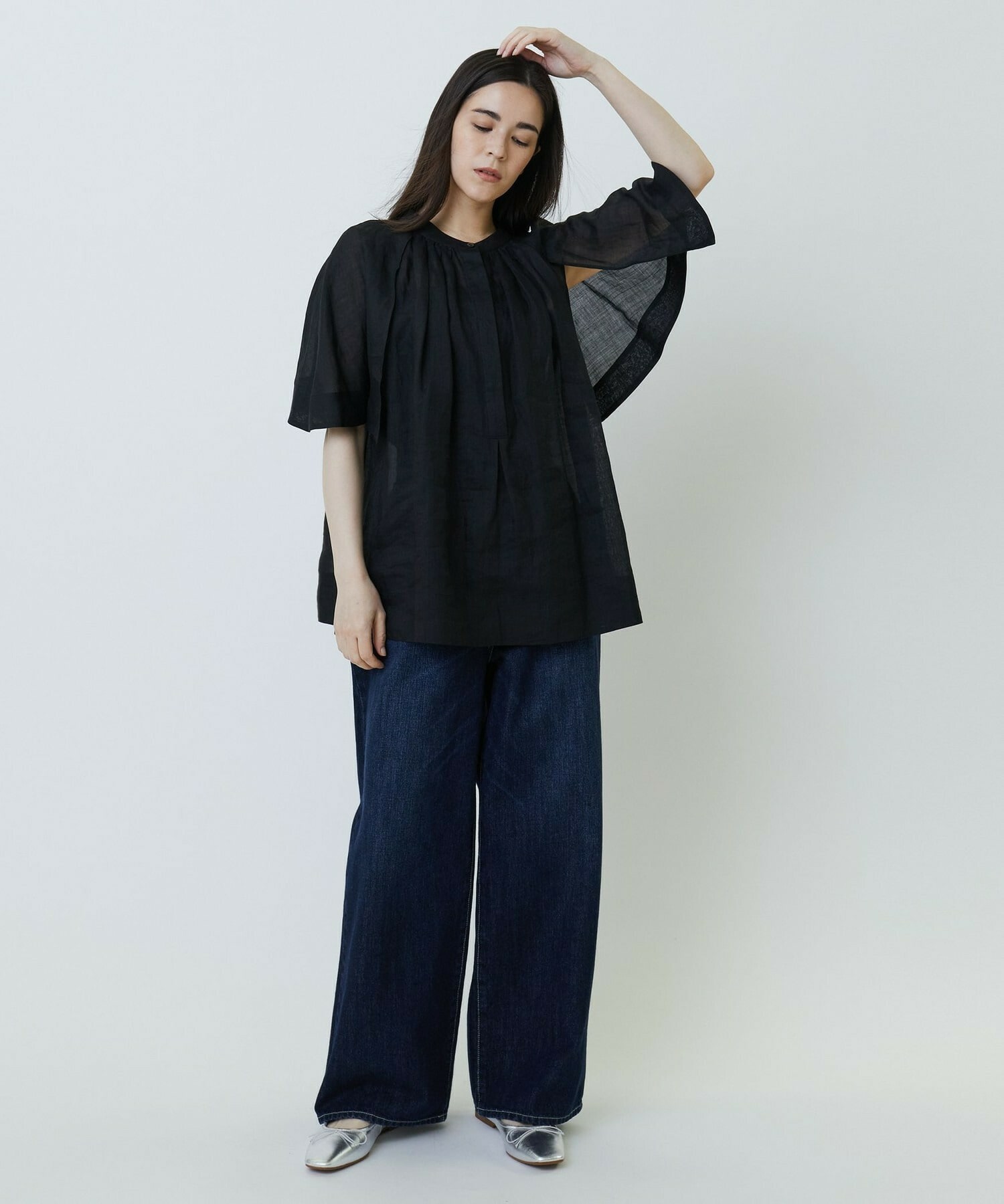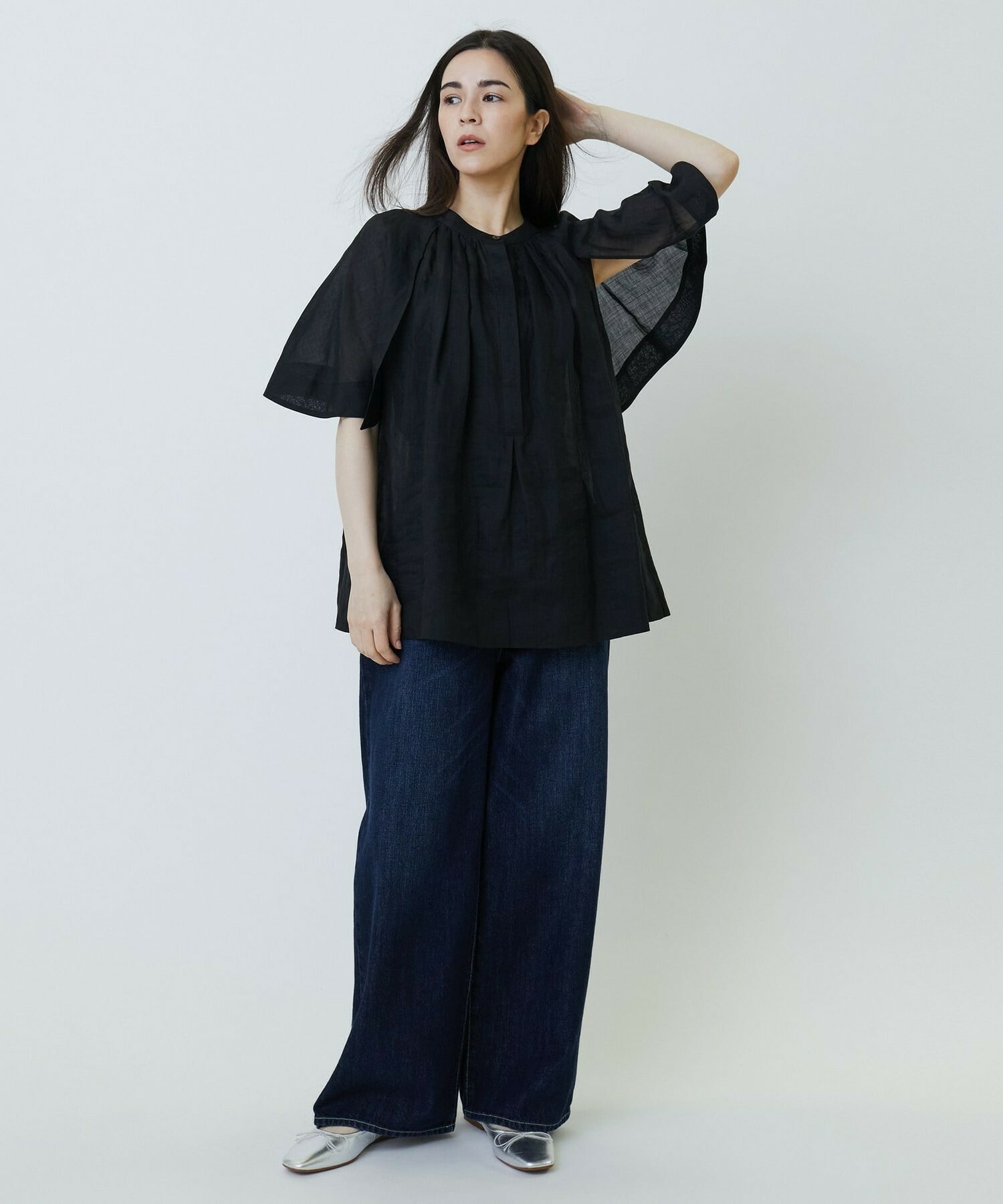 brushプリントミドルトップス/パット付き・水着・ホットヨガ対応・水陸両用・耐塩素・UVカット・吸汗速乾