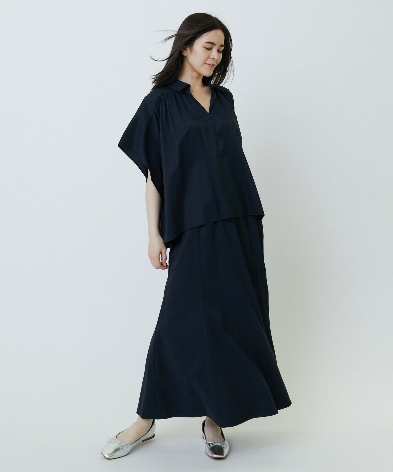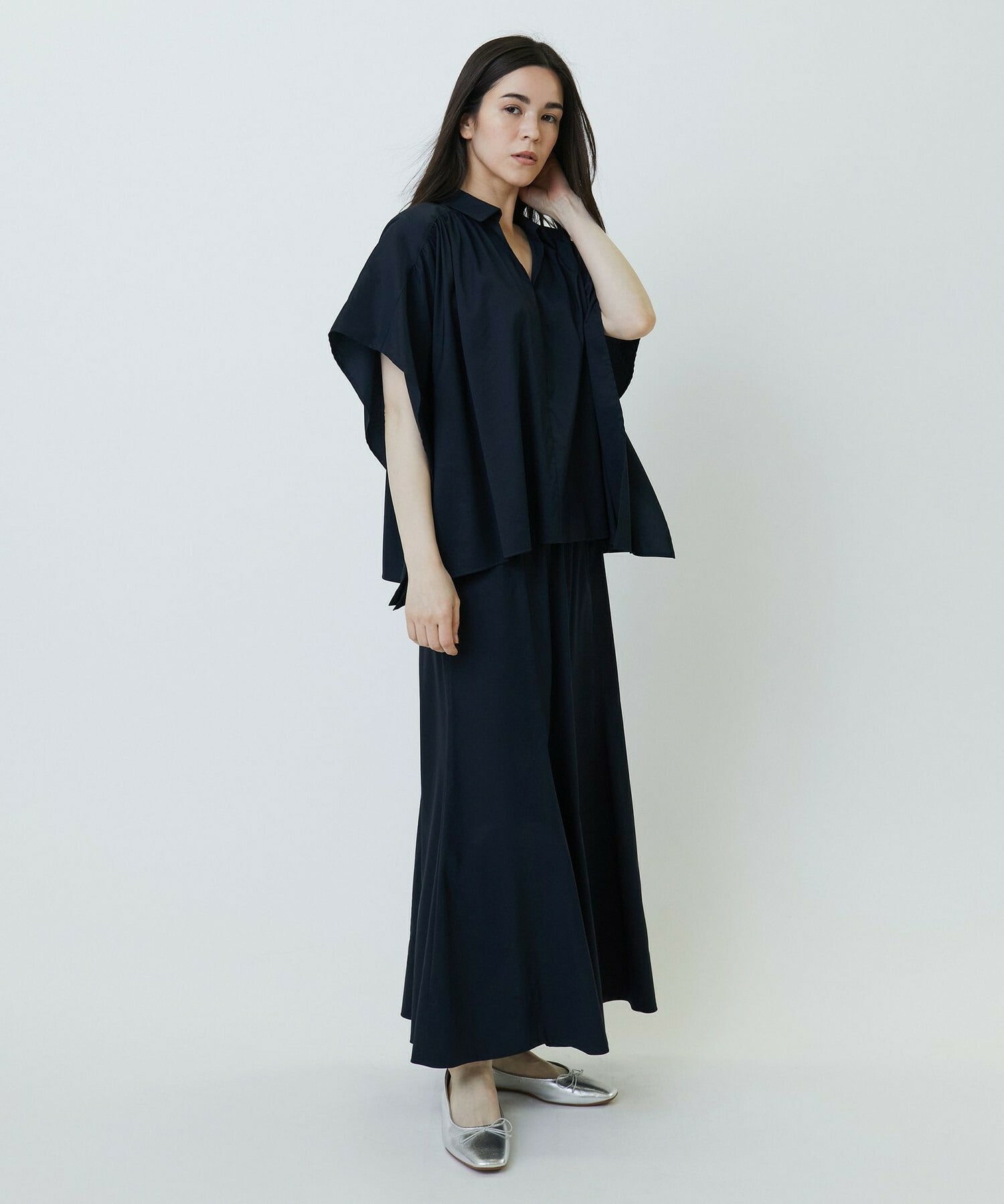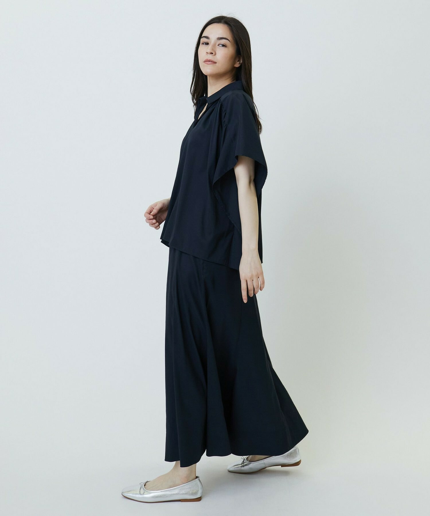 同素材のトップスとのセットアップがオススメですが、Tシャツなどカジュアルなものとの単品合わせにも幅広くお使いいただけます。