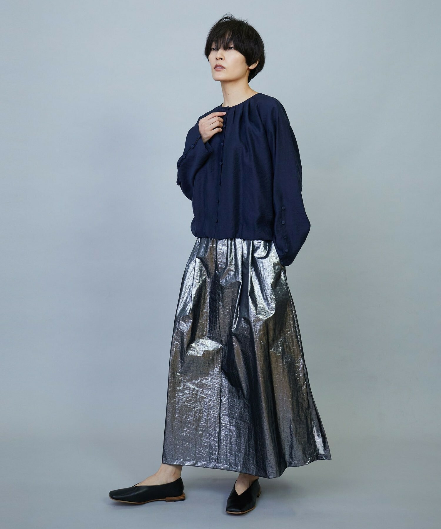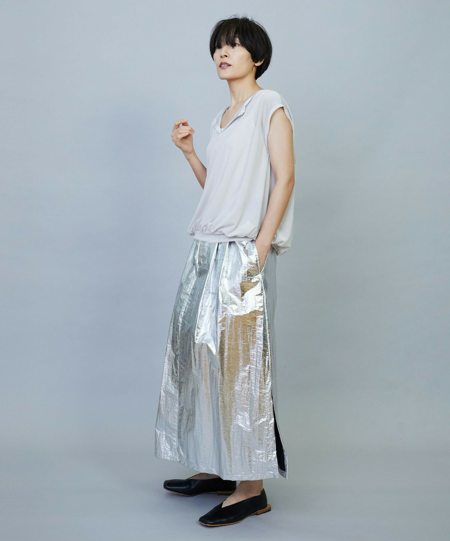 さらっと肌離れが良く存在感のあるスカートです。