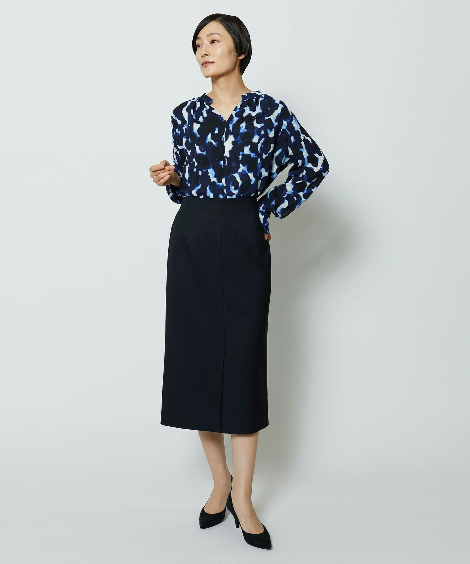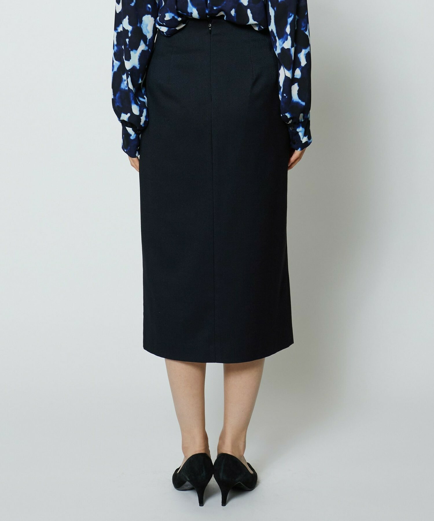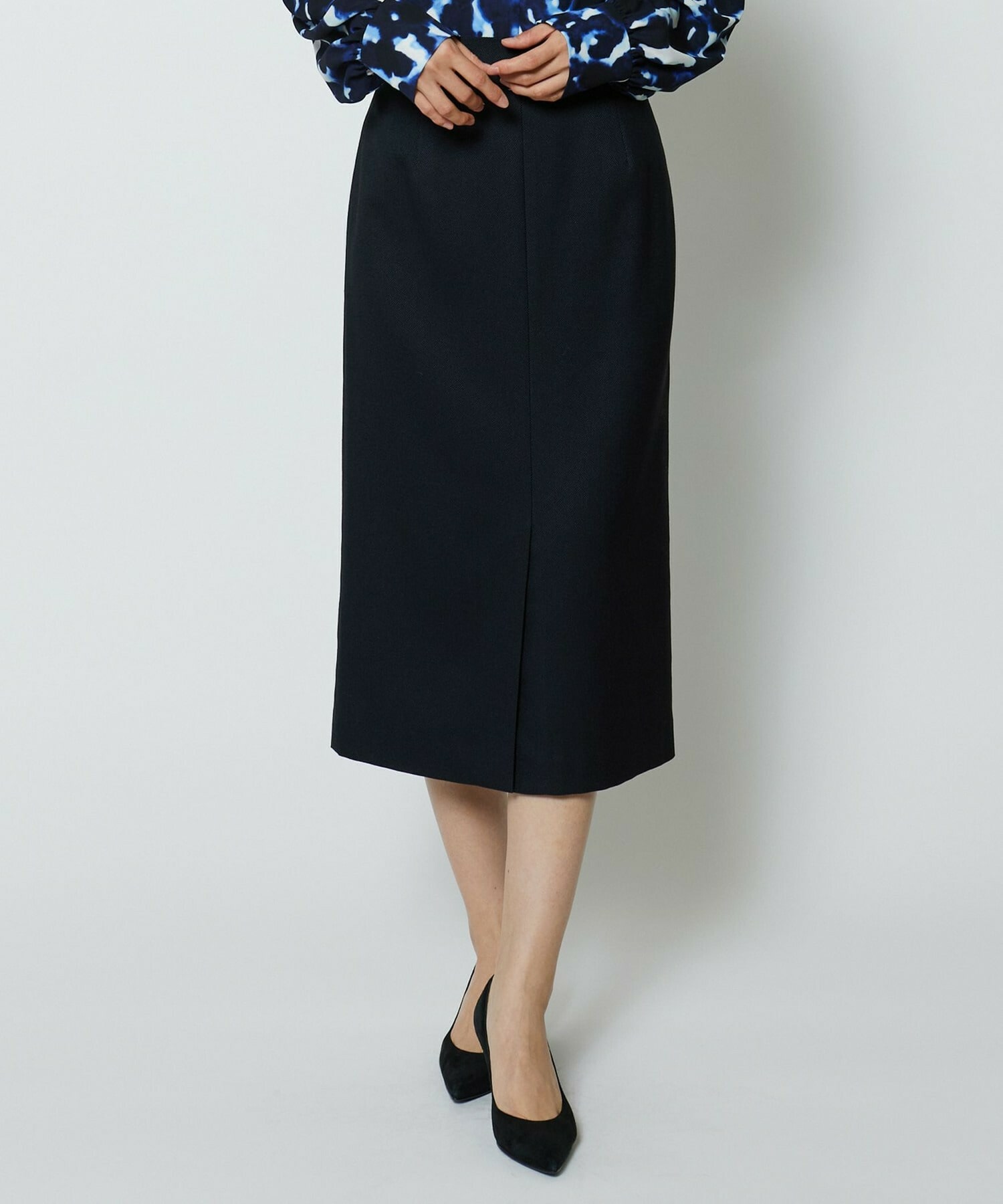 スッキリとしたシルエットのタイトスカートです。通常の定番的なものより長めのスカート丈で、センターベンツにより単品性も高くアップデート。センターベンツは座った際にも広がり過ぎない丈にこだわっています。