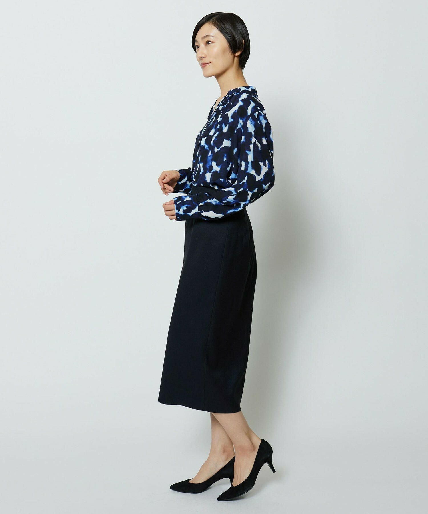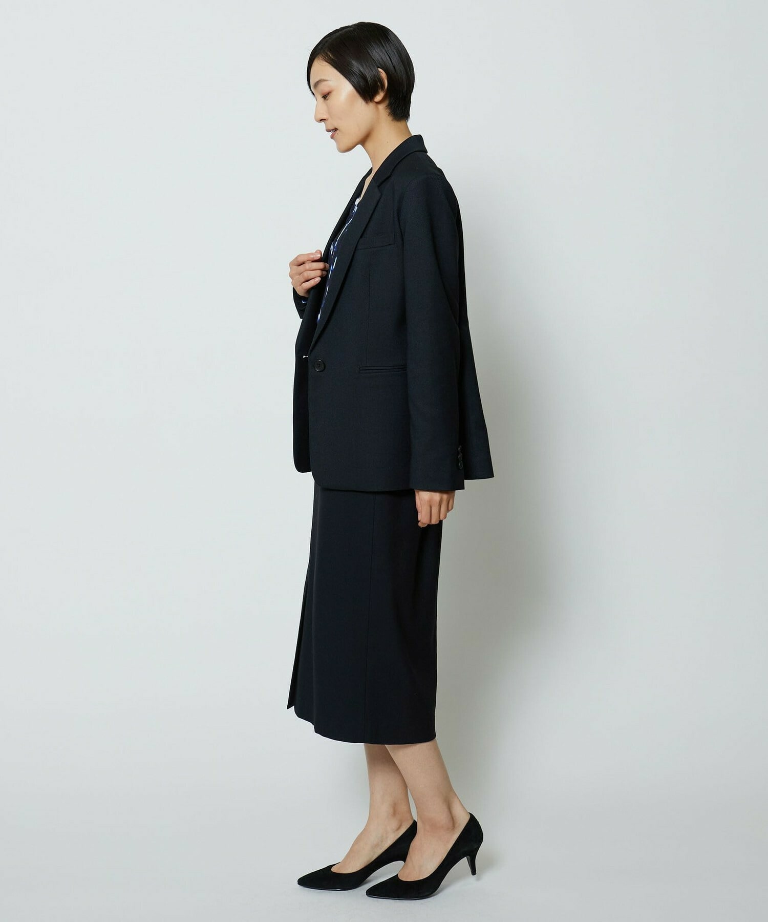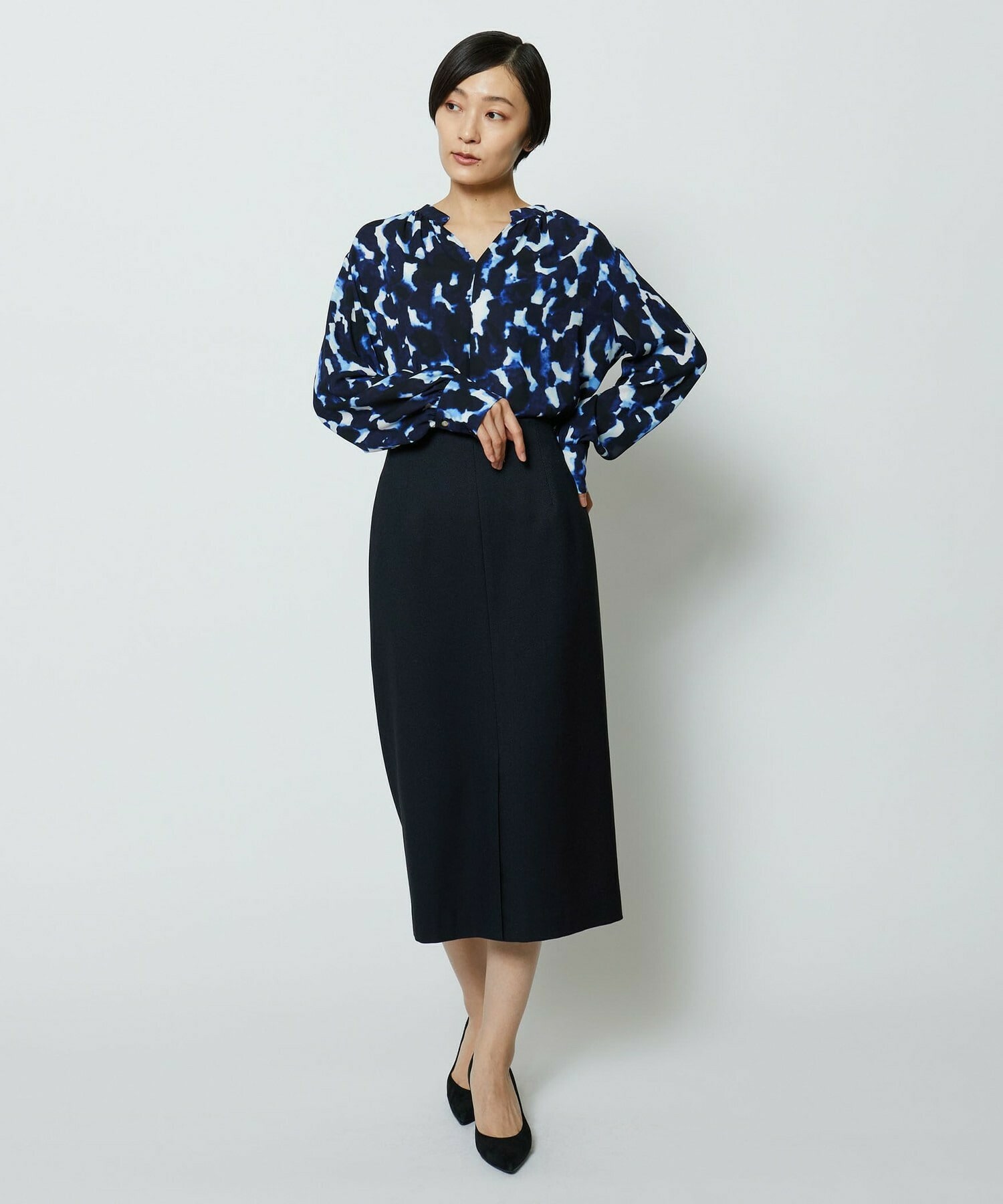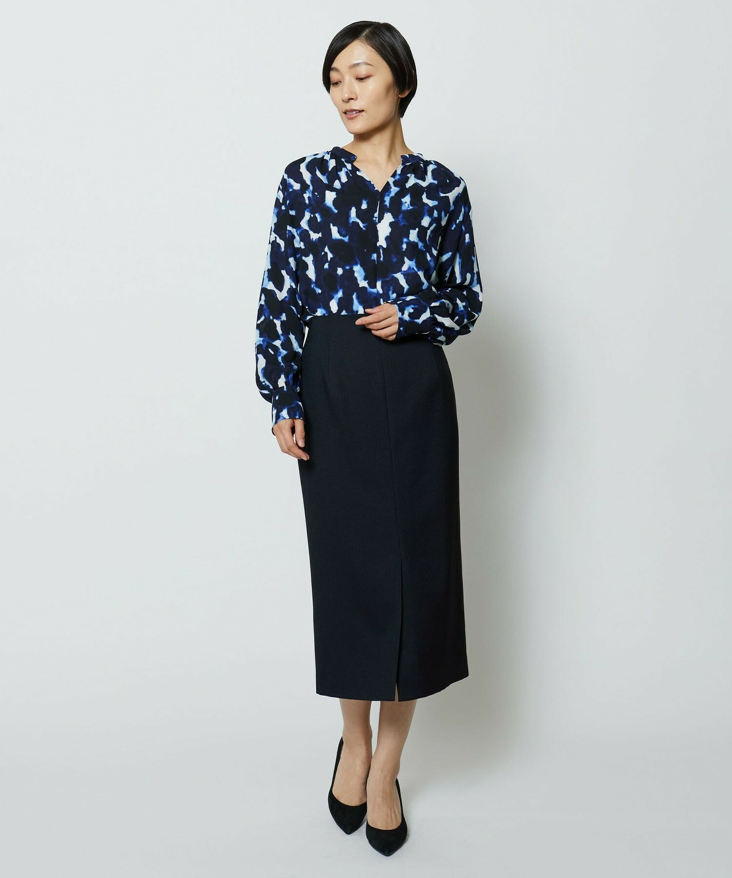 スッキリとしたシルエットのタイトスカートです。通常の定番的なものより長めのスカート丈で、センターベンツにより単品性も高くアップデート。センターベンツは座った際にも広がり過ぎない丈にこだわっています。