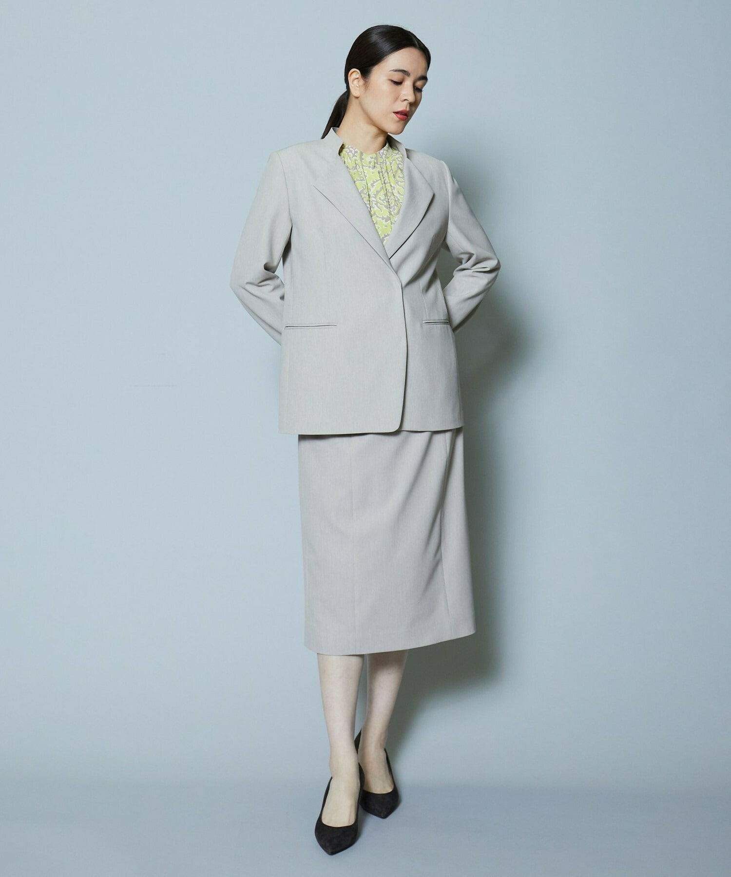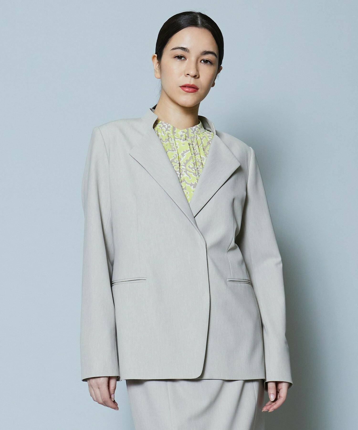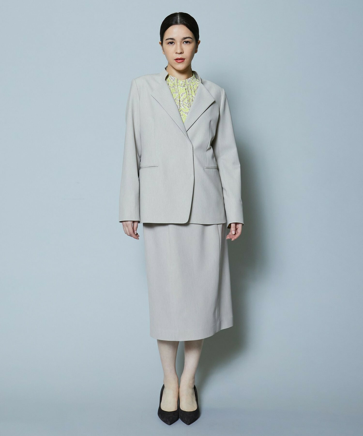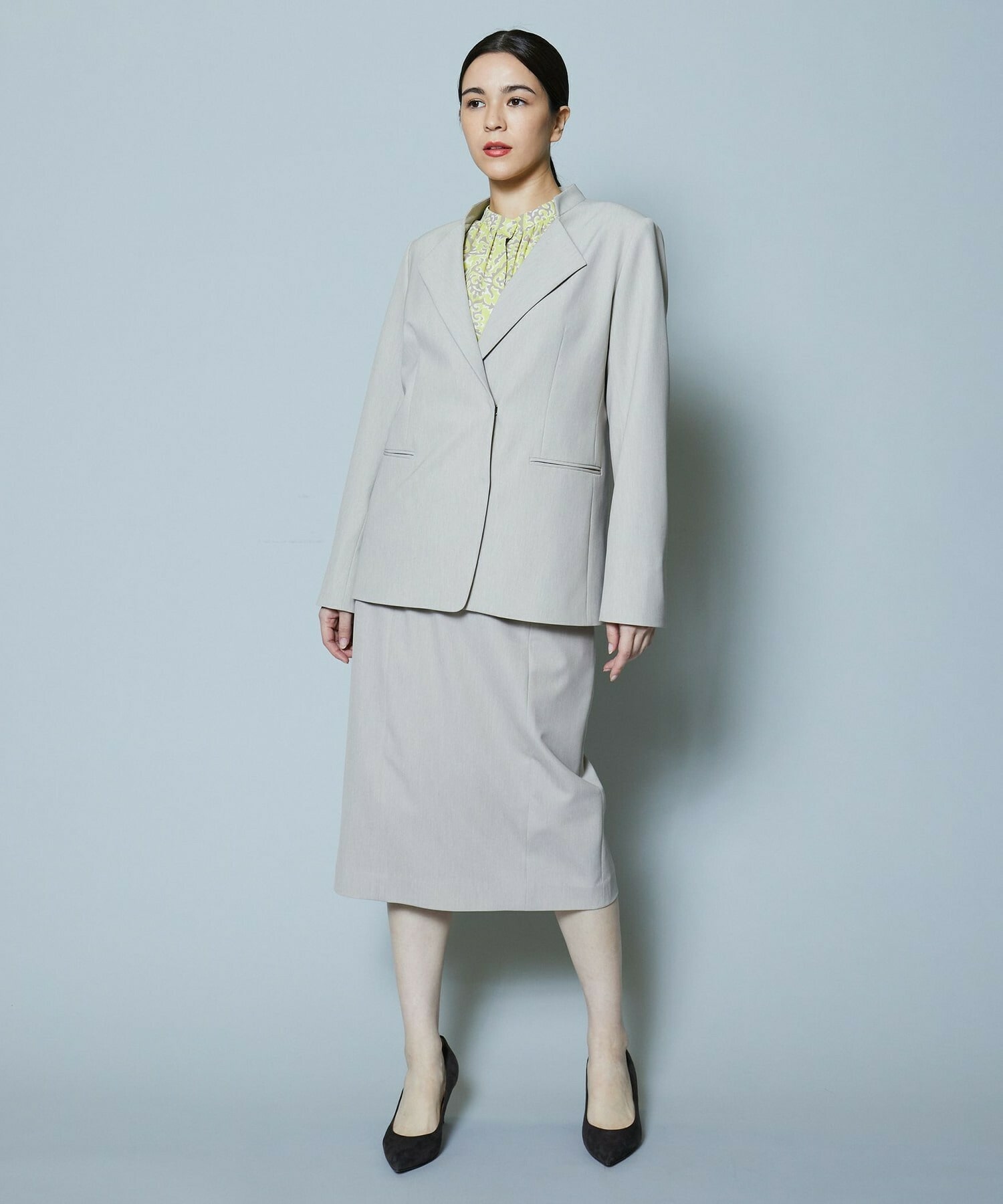 同素材のスカートも展開しているのでセットアップでの着用がオススメです。