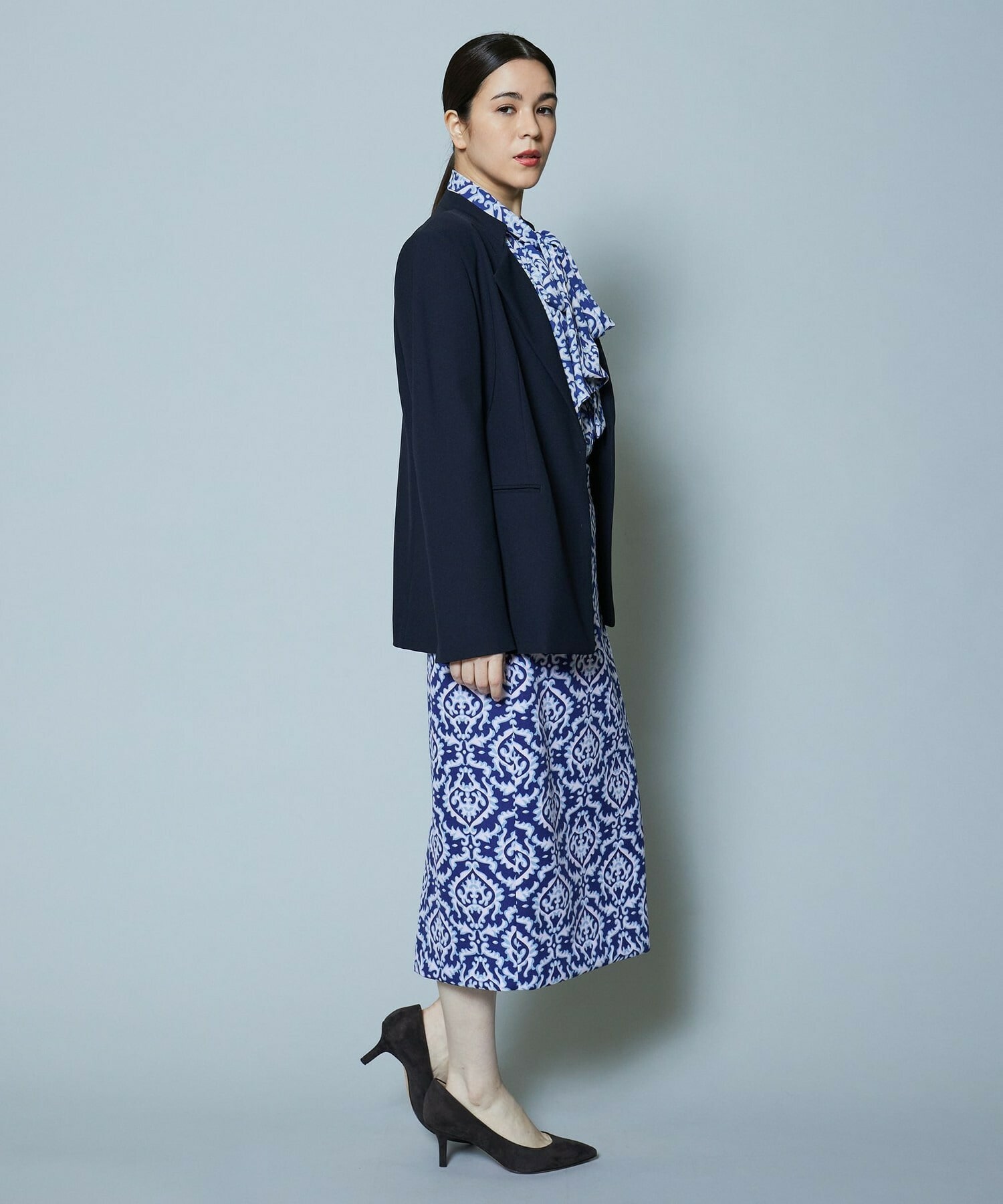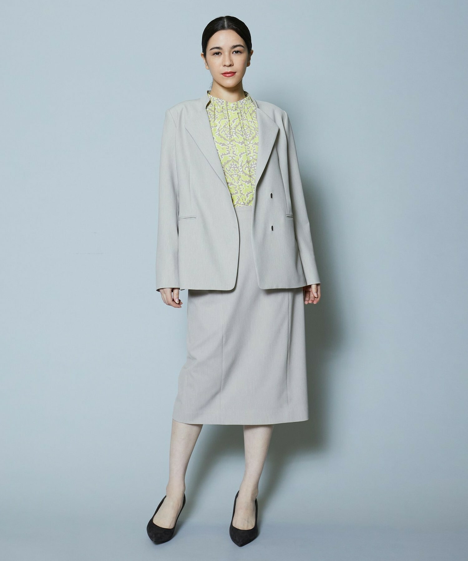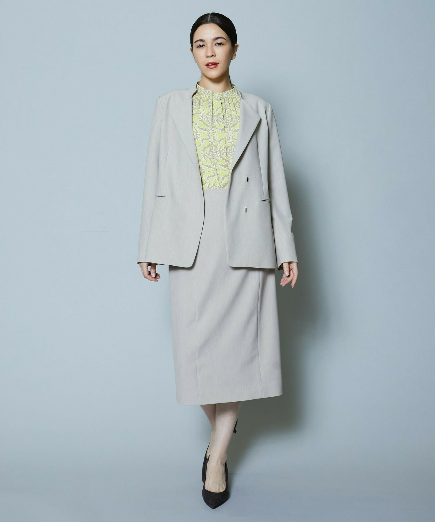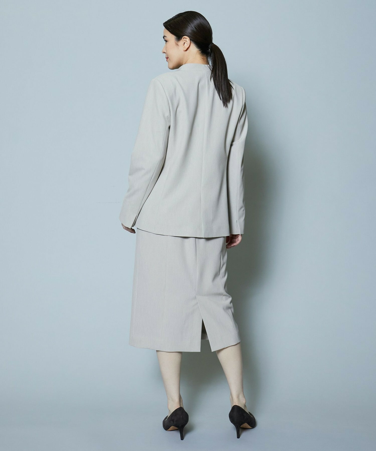 同素材のスカートも展開しているのでセットアップでの着用がオススメです。