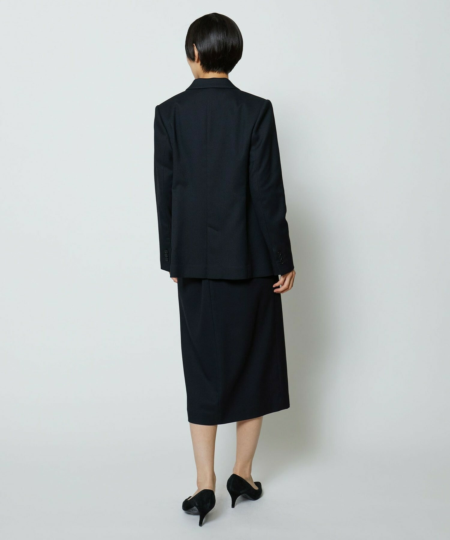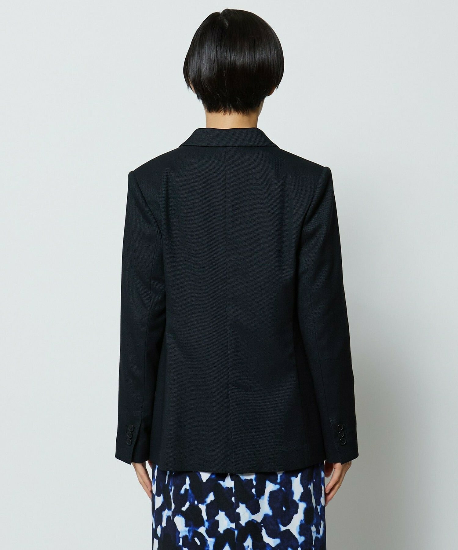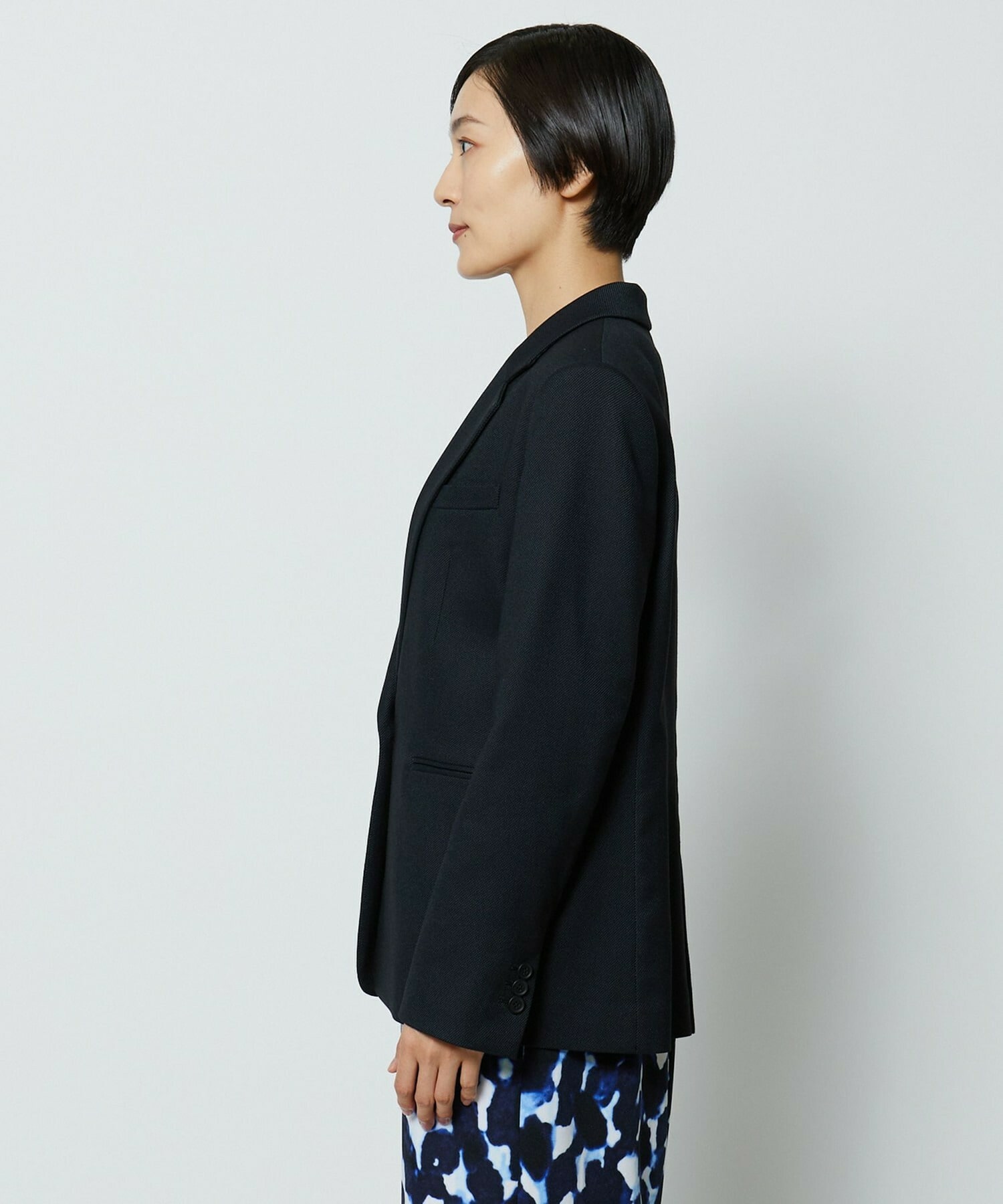 スッキリとコンパクトに見えるサイズ感にこだわったテーラードジャケットです。シャープな衿のラインと胸ポケットがクールな印象を与え、高めのワンボタンがスタイルアップ効果抜群です。